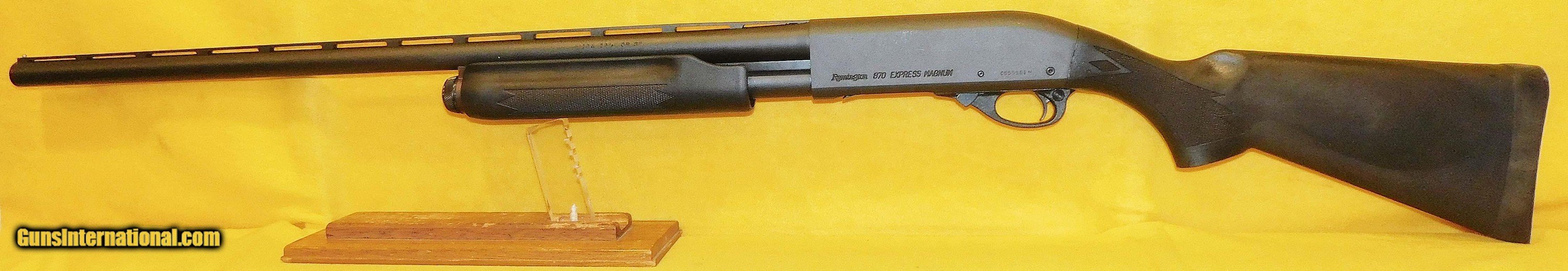 Description: REMINGTON 870 EXPRESS MAGNUM IN 12 GA. CAL., WITH 28" BARREL. COLOR MATTE. CONDITION 98%. SERIAL NUMBER C655181M. REMINGTON MODEL 870 EXPRESS MAGNUM IN 12 GAUGE CALIBER (2 ¾” AND 3” CHAMBER) SINGLE BEAD VENT RIB MIRROR BORE BARREL WITH SCREW IN MODIFIED CHOKE, ALL WEATHER STOCK AND FORE GRIP EXCELLENT, 98% OVERALL CONDITION, OUR STOCK # D4444 SOLD |