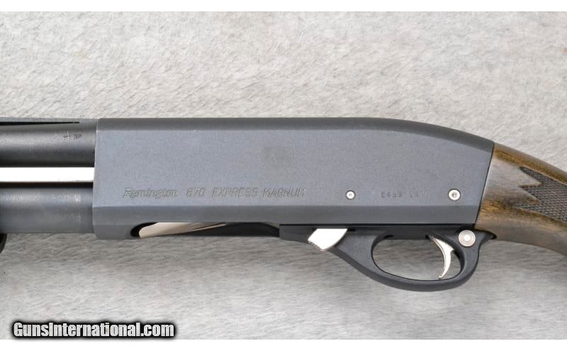 Description: This Remington Model 870 Express Magnum is a right hand pump action shotgun in 12 Ga. It has a 28 inch barrel with a ventilated rib. With a 3 inch chamber it comes with one choke tube. A metal bead front sight. The butt stock is a checkered grip hardwood pistol grip. The forearm is a checkered grip hardwood with finger grooves. 12 Gauge SOLD Chambers: 3 inch. Metal Condition: Very Good. Wood Condition: Excellent. Bore Condition: Shiny. Barrels: 28 inch with a ventilated rib. Stock Dimensions: LOP 13 3/4 inches. Fore End: Checkered grip hardwood with finger grooves. Butt Pad: Black rubber recoil pad. Weight: 7 Lb. 14 Oz. Sights: Metal bead front. Chokes: Comes with one choke tube. Item Location: Richfield, WI |