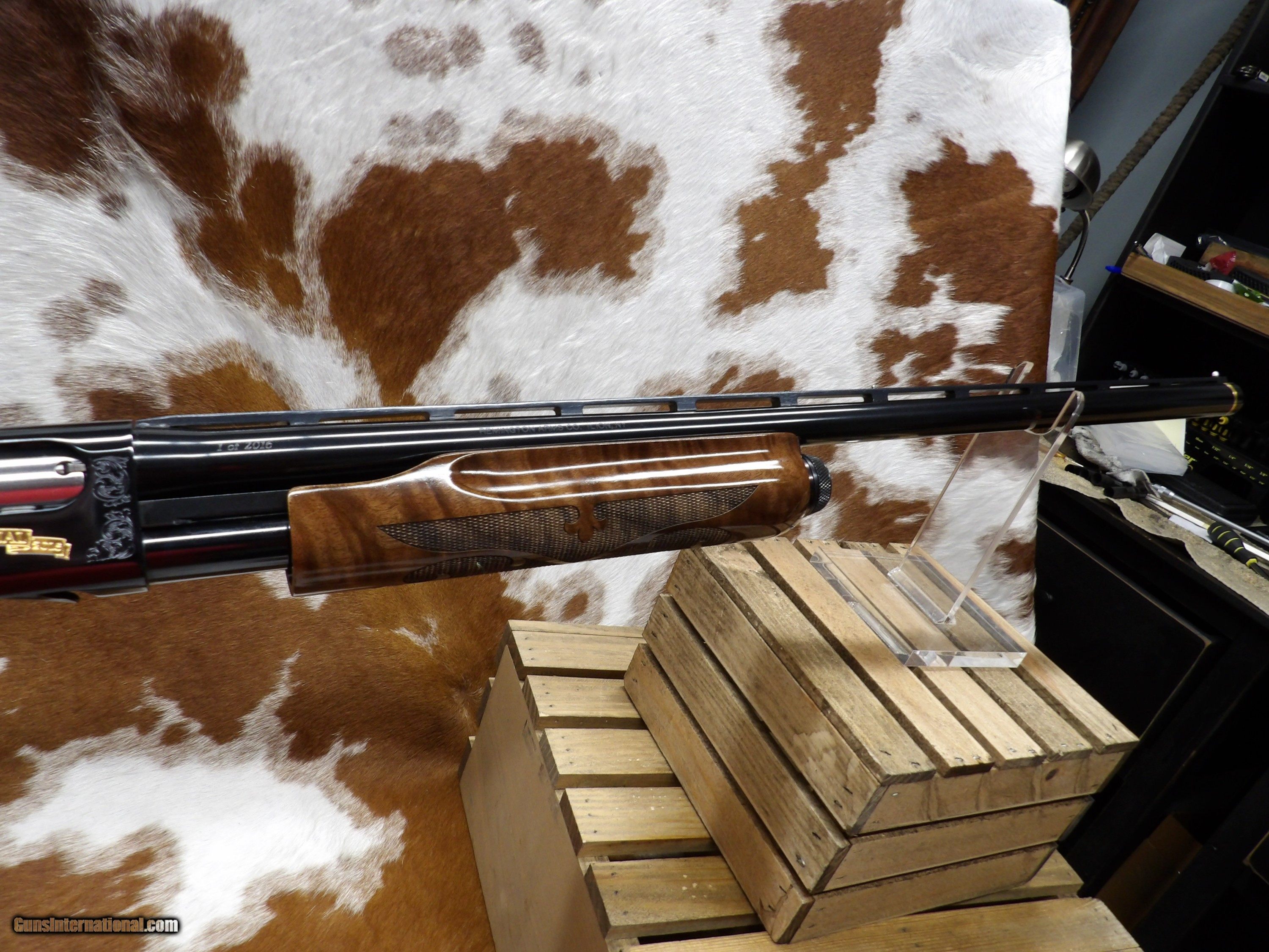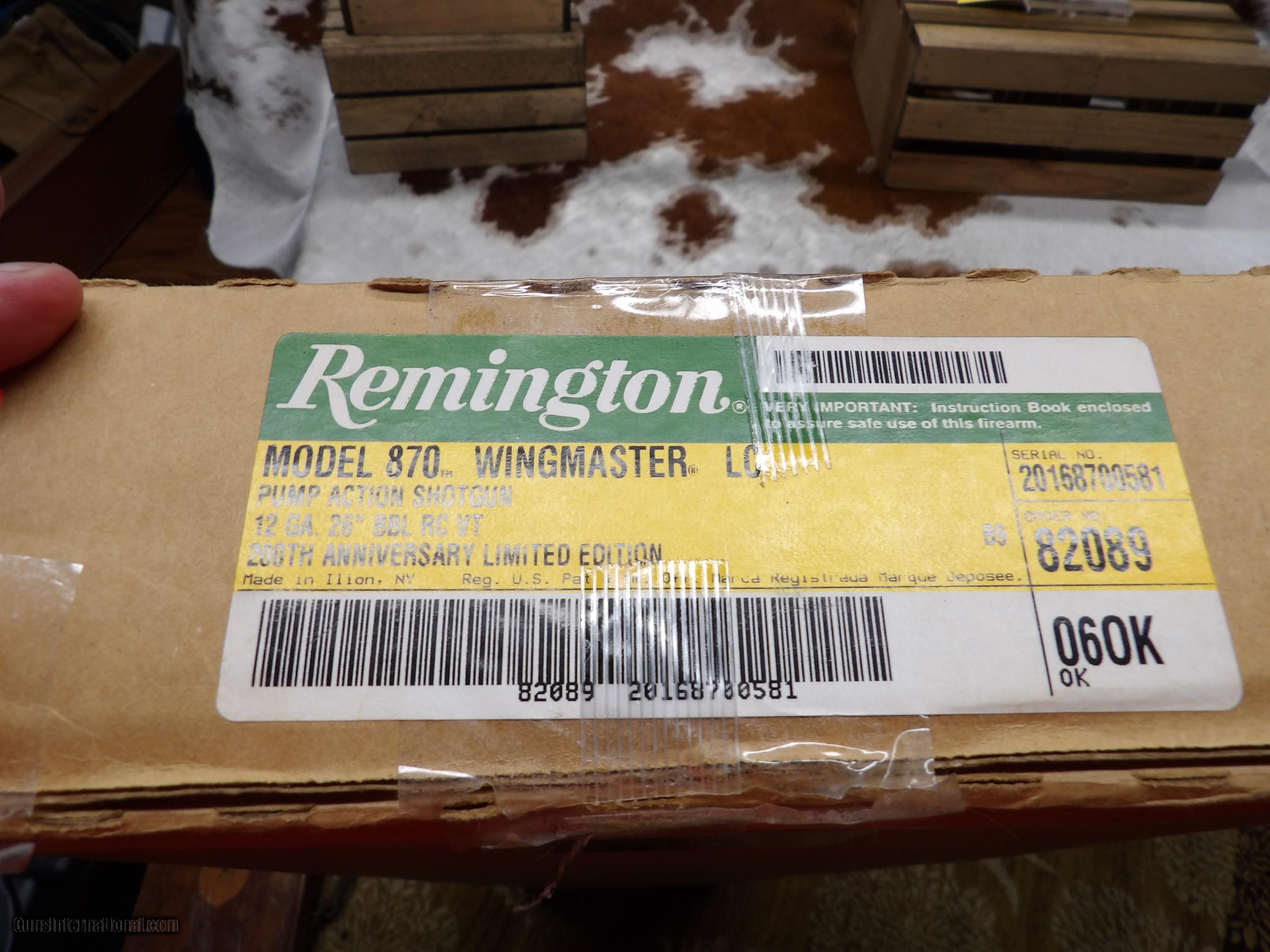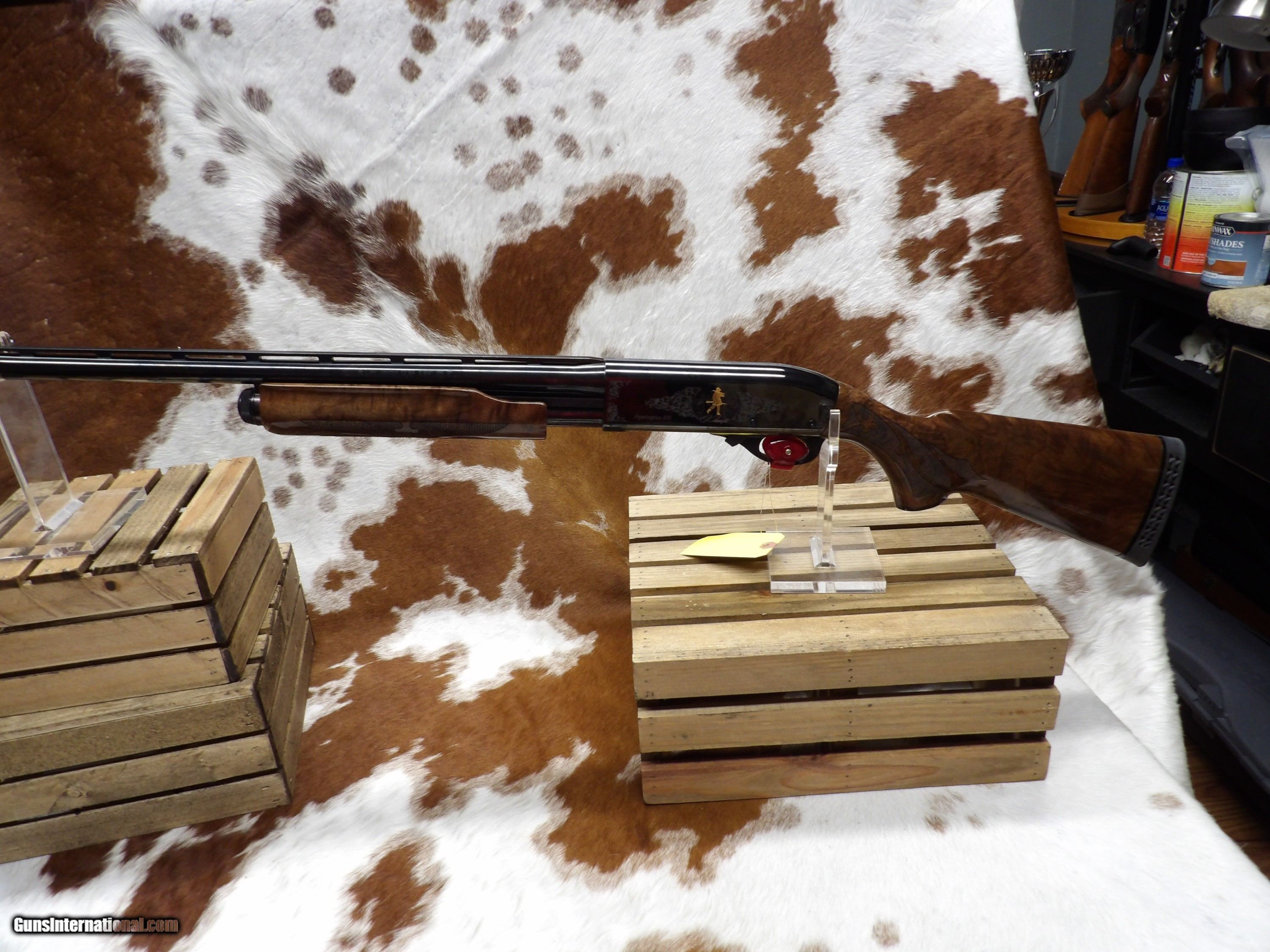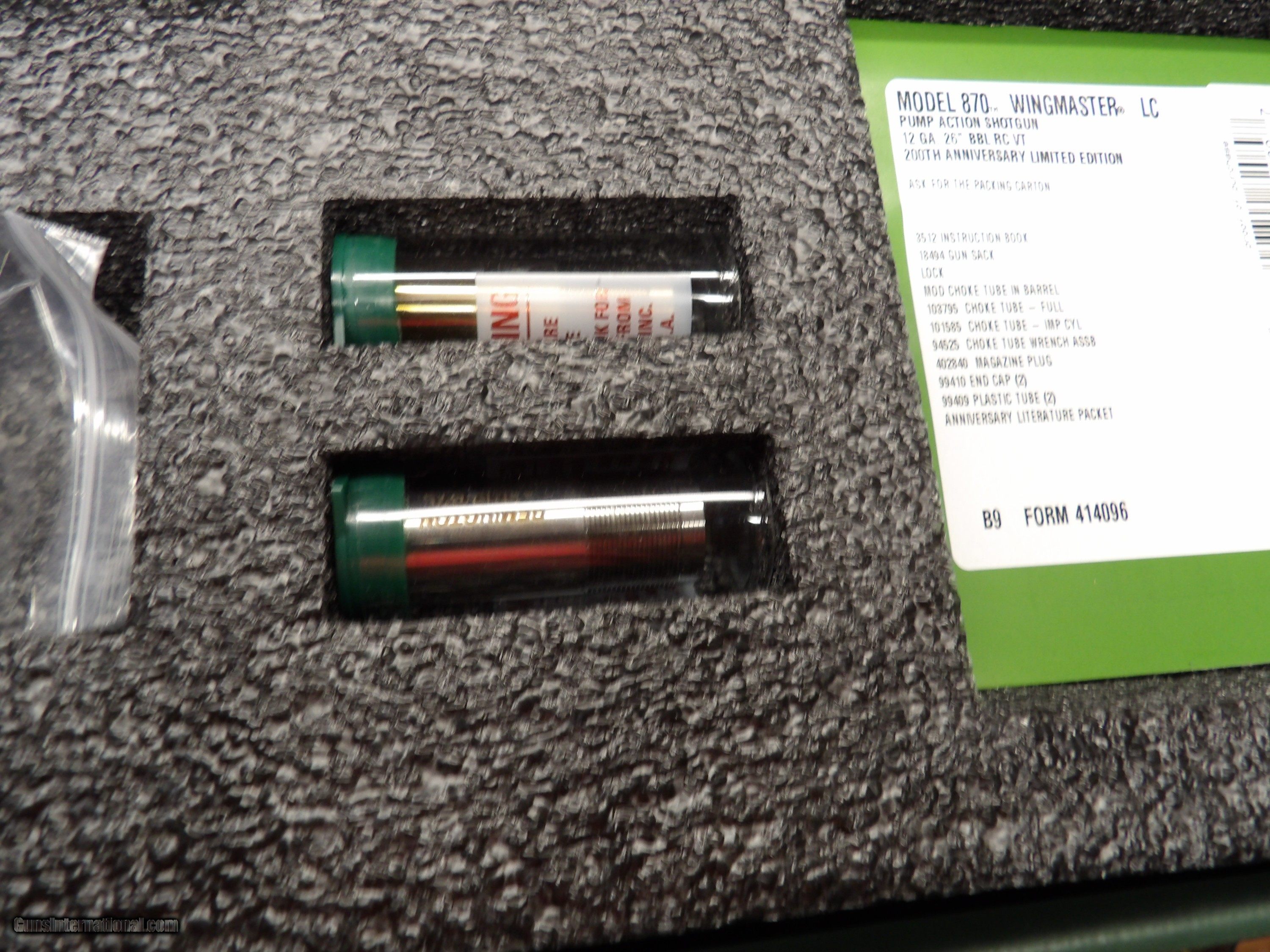 Description: Beautiful Rem 870 Pump, 200th Anniversary Edition. Includes factory box and protective sleeve. Beautiful engraving and lots of gold. Gold Barrel Band. Absolutely new condition never fired. It has choke tubes and beautiful lumber as well. SOLD Shotgun Gauge: 12 Gauge Manufacturer: Remington Model: 870 200th Anniversary Edition Barrel Length: 26 Bore: Perfect Chambers: 3 Condition: AS NEW Metal Condition: 100% Wood Condition: 100% Bore Condition: Perfect |