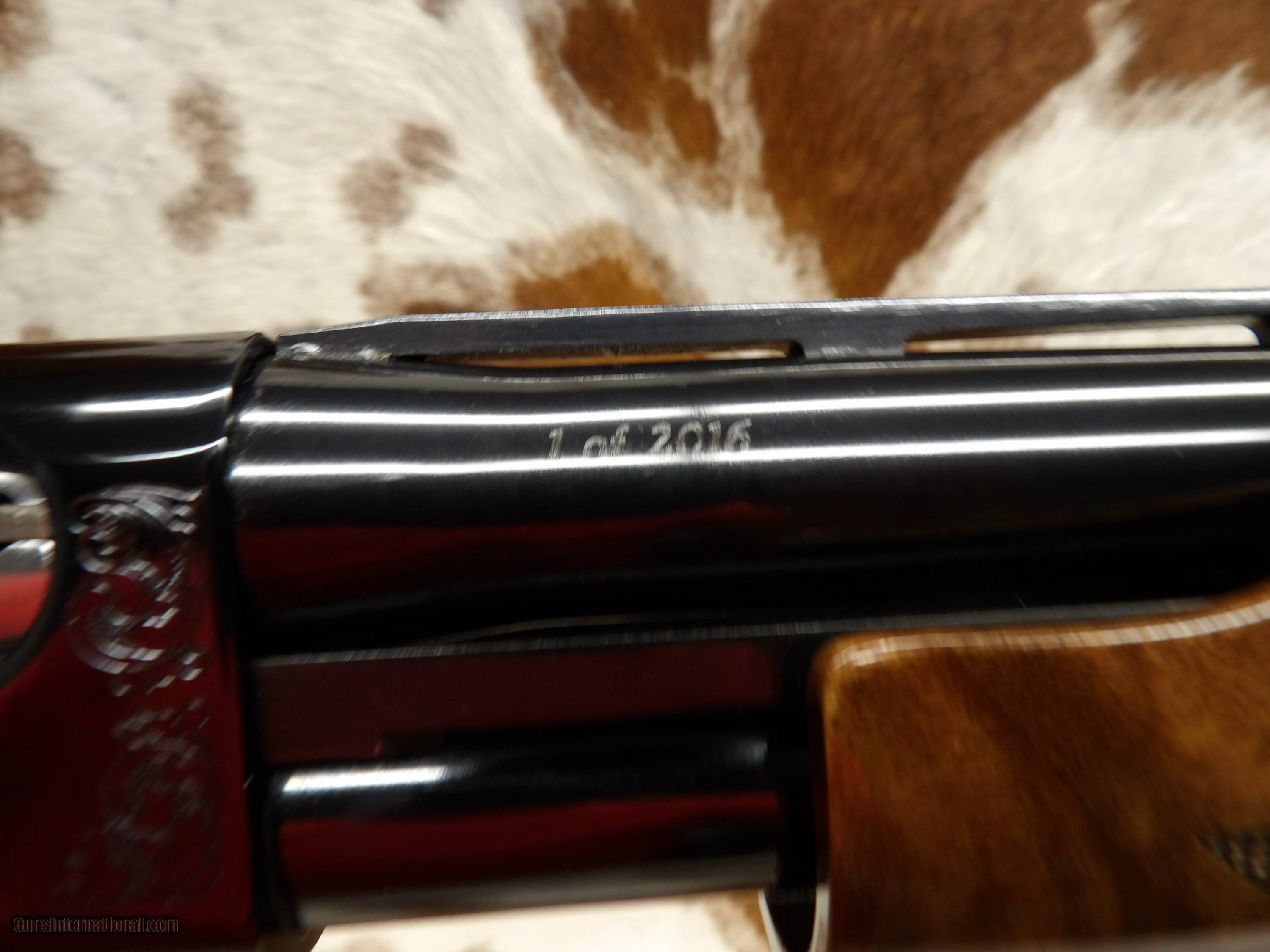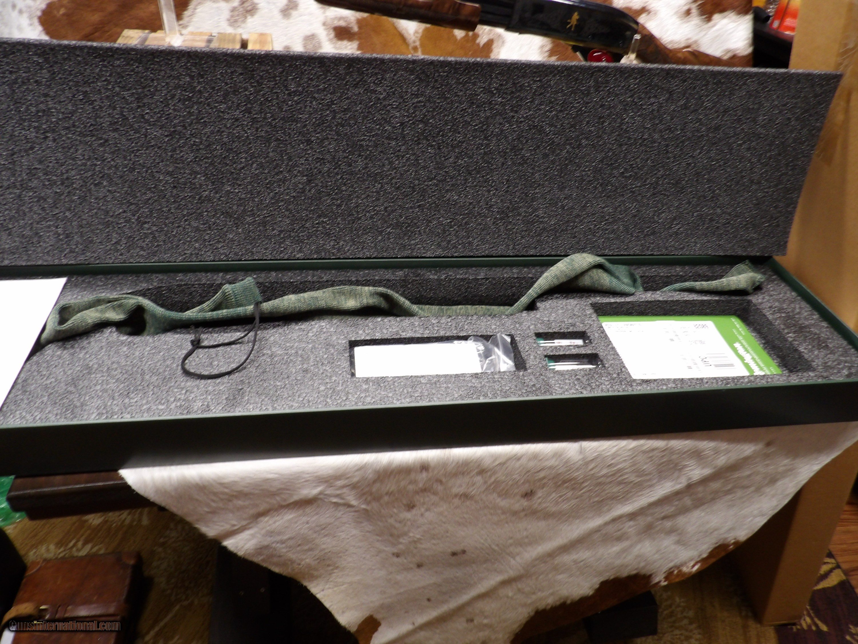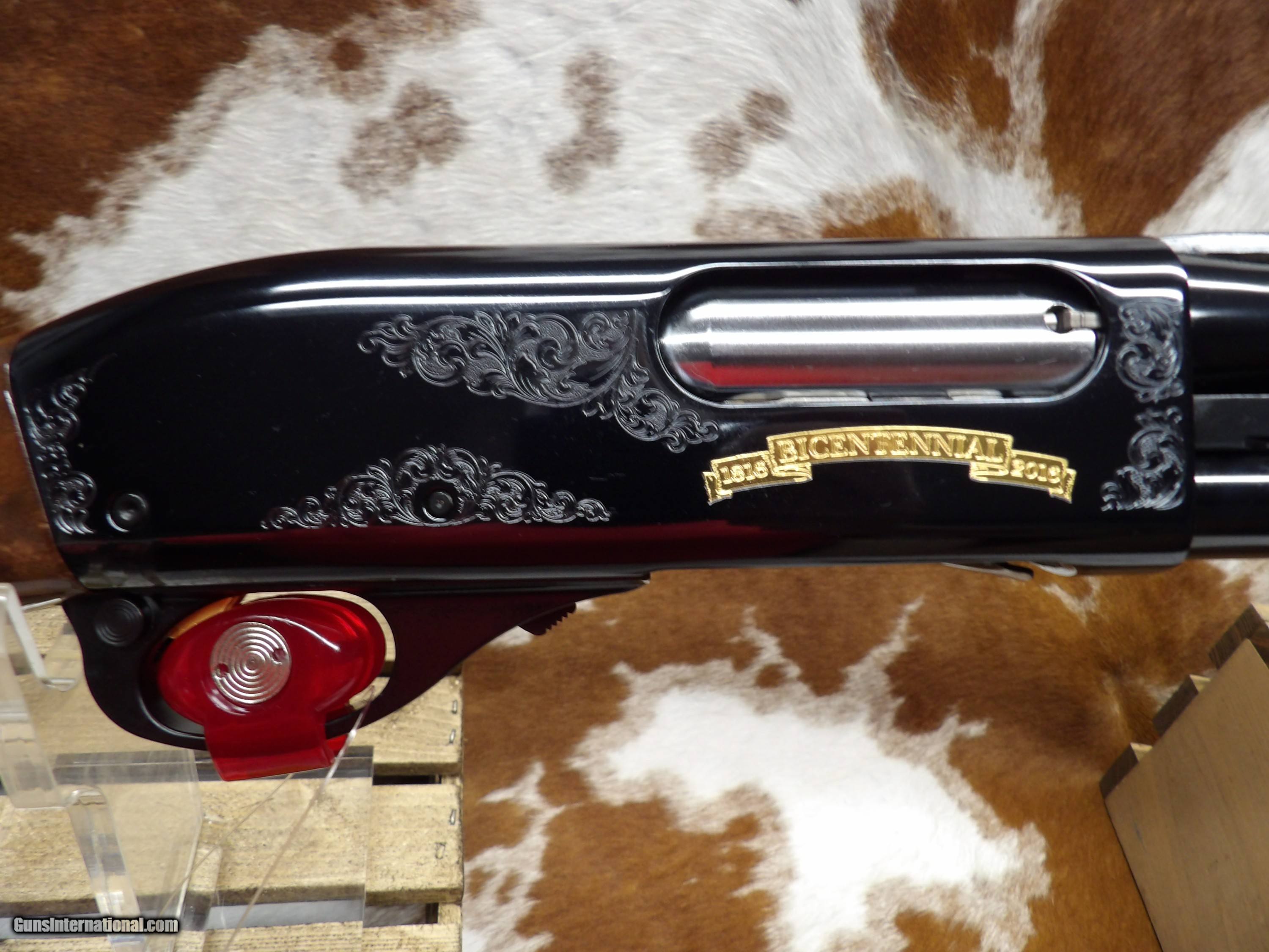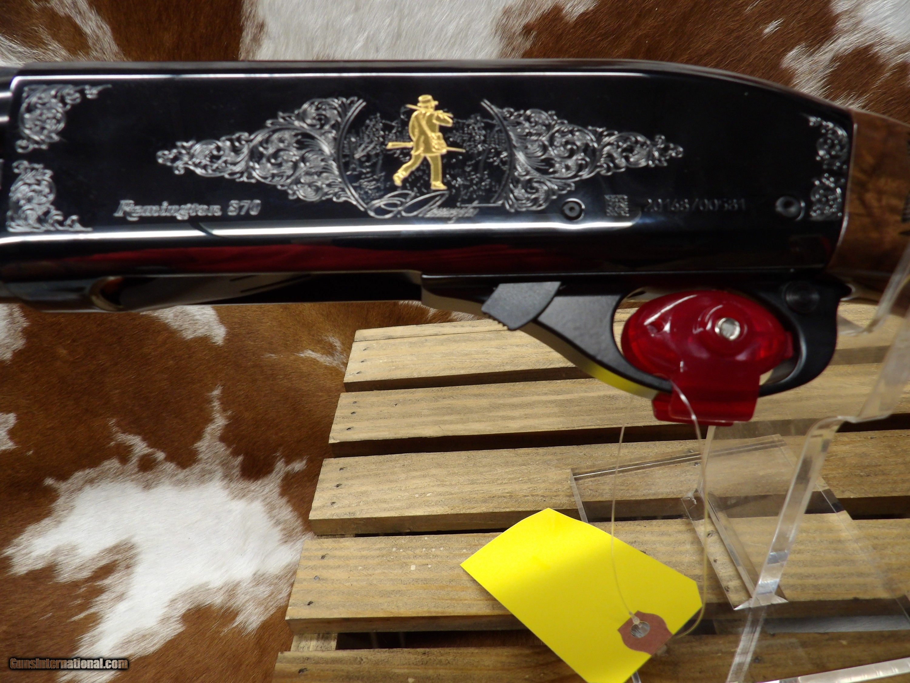 Description: Beautiful Rem 870 Pump, 200th Anniversary Edition. Includes factory box and protective sleeve. Beautiful engraving and lots of gold. Gold Barrel Band. Absolutely new condition never fired. It has choke tubes and beautiful lumber as well. SOLD Shotgun Gauge: 12 Gauge Manufacturer: Remington Model: 870 200th Anniversary Edition Barrel Length: 26 Bore: Perfect Chambers: 3 Condition: AS NEW Metal Condition: 100% Wood Condition: 100% Bore Condition: Perfect |