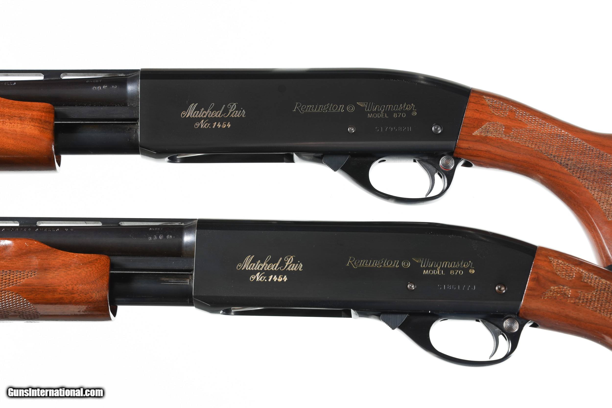 Description: Matched Pair No. 1454. Near excellent overall condition with light handling marks. Choked skeet, LOP 14". • Free Shipping, No Credit Card Fees. • Lay-a-way available for this firearm. • 1/3 Down, a 1/3 in 30 Days 1/3 in 60 Days. SOLD Manufacturer: Remington Model: 870 Matched Pair Serial Number: S179582H/S186177J Barrel Length: 25" Both |