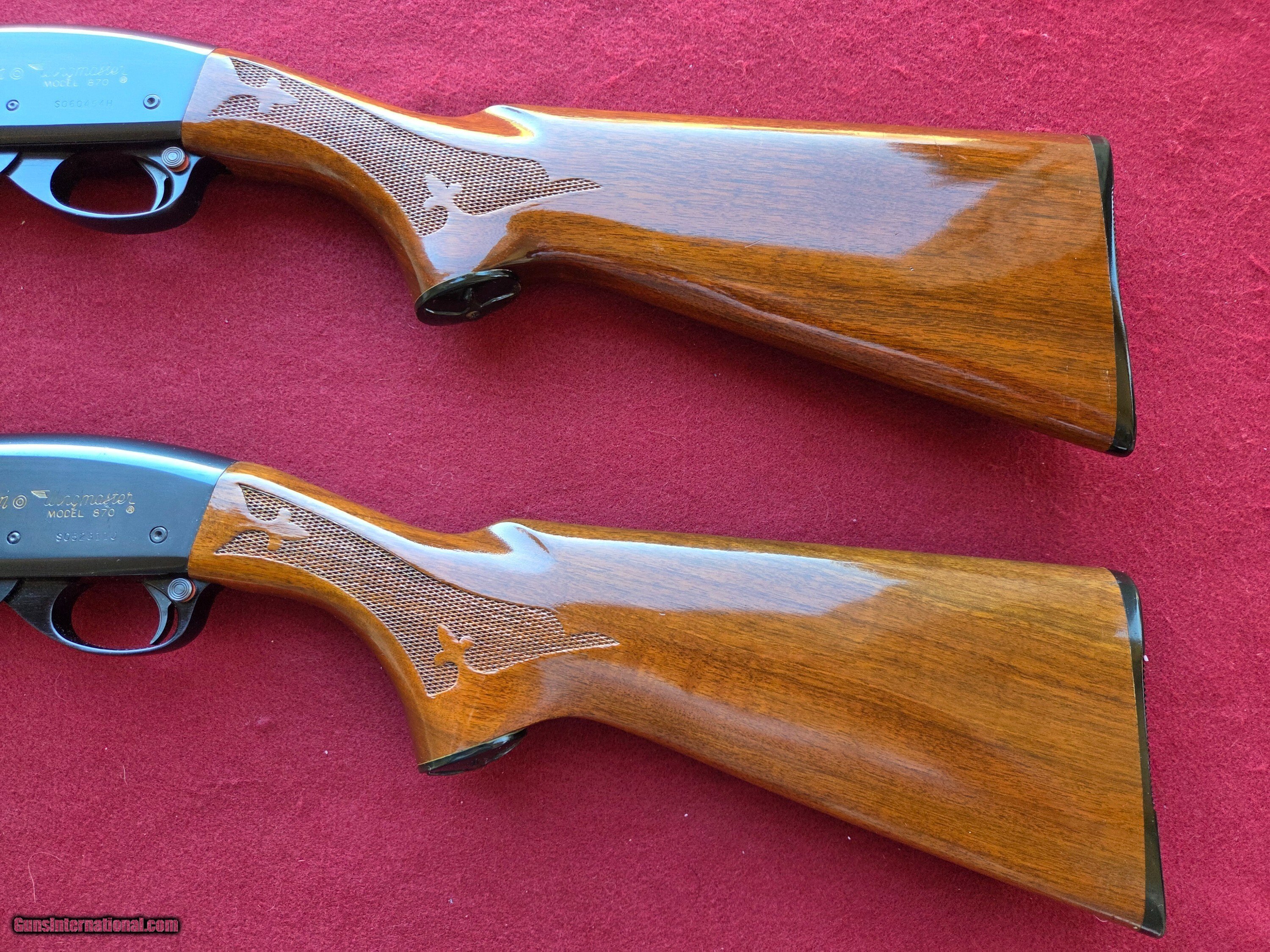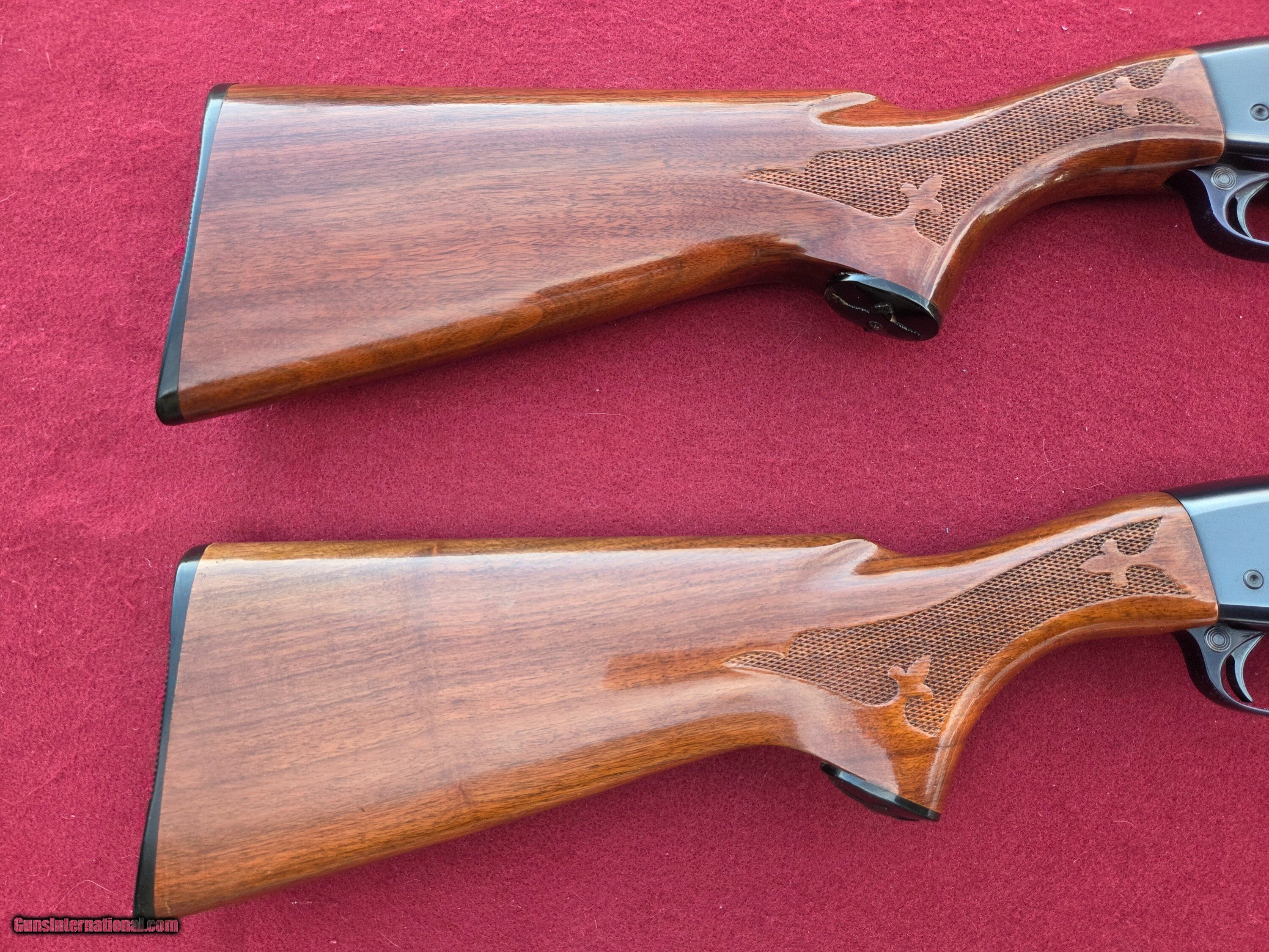 Description: Incredible Wingmaster matched pair No. 455, part of a special run by Remington in 1969. Both guns are in excellent factory original condition and complete with correct weights/round count extenders. Fabulous Remington fit and finish from a bygone era. Both nicely cared for and absolutely beautiful with the 28 Ga showing a few small nearly imperceptible flecks on left side of receiver. Both guns pristine clean inside and out. Actions are butter smooth. Will ship insured for the purchase price, individually zipper cased and in a hard double case overwrapped with cardboard. Shipping fee is $145. Please add $15 for shipment east of the Mississippi. Feel free to call or e-mail me with questions or reasonable offers! Price: $4,375.00 Contact Seller |