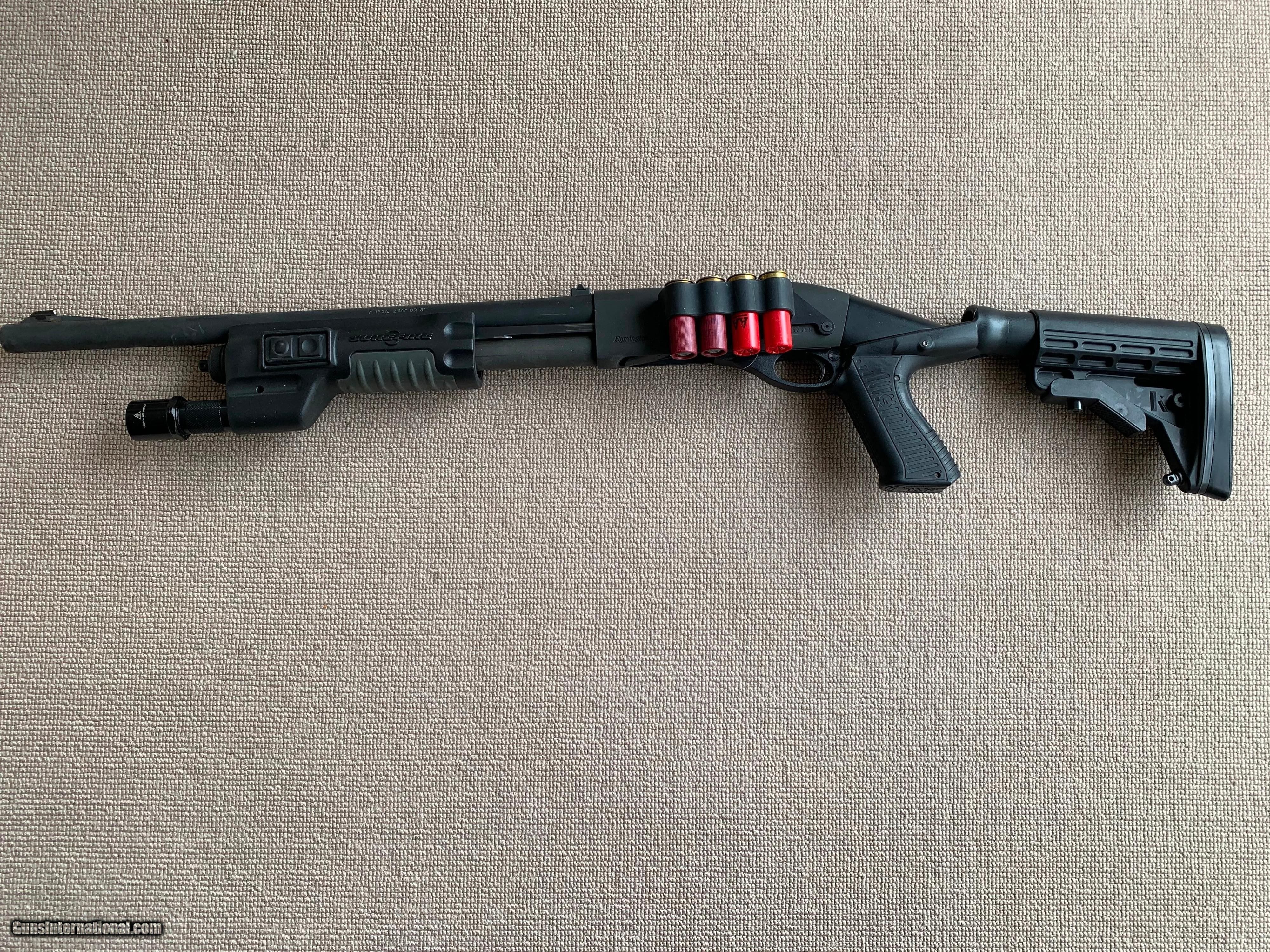 Description: Reminington 870 P adapted to Los Angeles Sheriff's Dept Specifications Rem 870P (24443)12/18 Low Profile Rifle Sights Knoxx Stock Mesa Tactical 4-Shell Carrier Surefire 618LF Slightly used - less than 10 rounds. Buyer pays shipping and PPT fees. SOLD Shotgun Gauge: 12 Gauge Manufacturer: Remington Model: 870P Condition: Excelllent Metal Condition: Excellent Wood Condition: Excellent Bore Condition: Excellent |