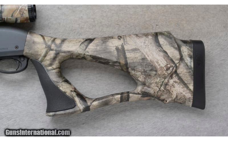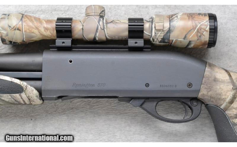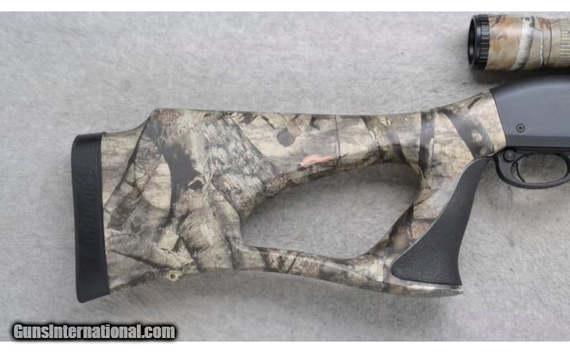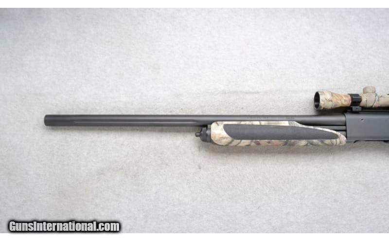 Description: This Remington Model 870 Super Slug is a right hand pump action shotgun in 12 Ga. It has a 25.5 inch heavy half fluted fully rifled barrel. It is outfitted with a Bushnell Scope. It has a 3 inch chamber. The butt stock is a textured black rubber grip in a polymer thumbhole pistol grip with a raised cheekpiece. The forearm has a textured black rubber grip in polymer with finger grip. Comes in Mossy Oak Treestand Camo. 12 Gauge SOLD Chambers: 3 inch. Metal Condition: Good. Minor freckling and handling mark on the receiver right side. Bore Condition: Shiny. Barrels: 25.5 inch heavy half fluted. Stock Dimensions: LOP 13 1/2 inches. Fore End: Textured black rubber grip in polymer with finger grooves. Butt Pad: Remington SuperCell black rubber recoil pad. Weight: 9 lb. 0 oz. Sights: Bushnell Trophy XLT Scope. Chokes: Fully Rifled. Item Location: Richfield, WI |