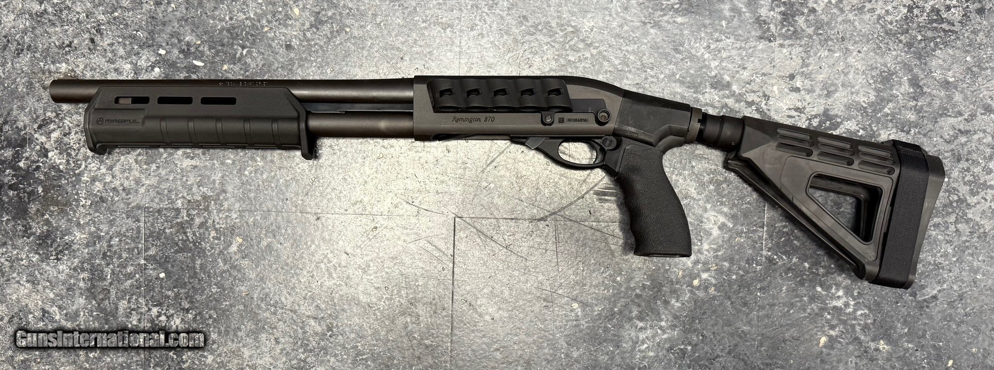 Description: Guns Listing ID: 533677 Pre-Owned Remington 870 Tac 14 14\" 12Ga Pistol Grip Firearm with SB Tactical Stabilizing Brace and GG&G Side saddle. Condition: Excellent, This firearm is in like new condition. It appears as if it was never fired however we do not have the original grip, box, or manual. SOLD Manufacturer: REMINGTON Model: 870 TAC-14 Condition: Used - Non-Certified Barrels: 14 BARREL Action: PUMP ACTION Gauge Info: 12 GA Finish: BLACK OXIDE Weight: 5.6 LBS. |