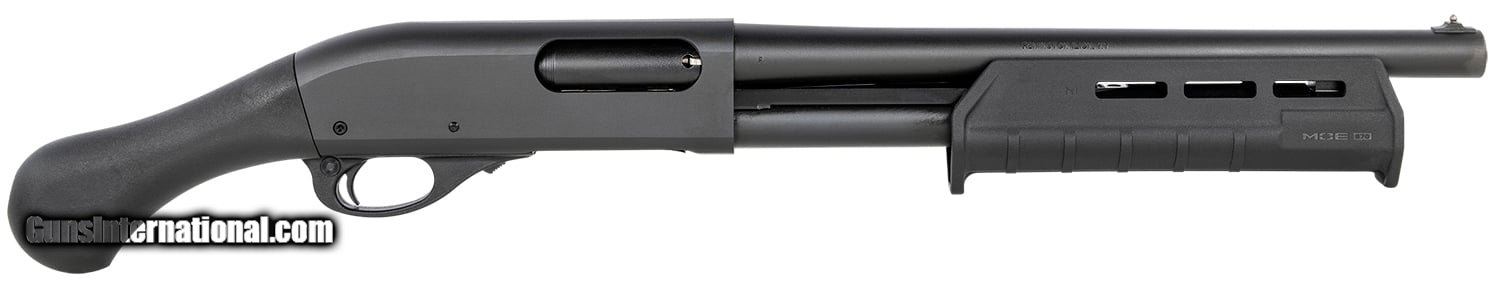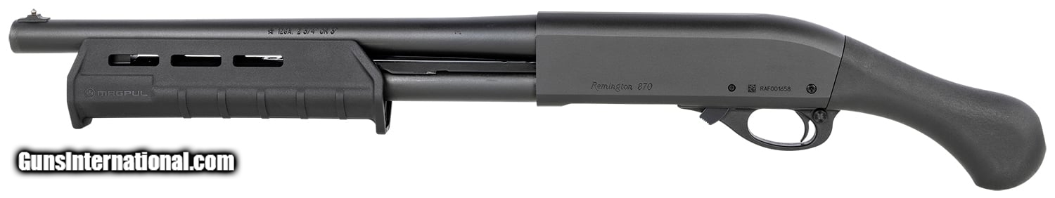 Description: Guns Listing ID: 166362 The Model 870 pump-action shotgun is ultimate in strength, durability, silky-smooth bind-free action, and sleek classical lines. It is the heart of the Model 870‚‚s landmark dependability and durability a receiver machined from a single block of solid steel. From this foundation of impeccable strength is a smooth-shooting, rock-solid action that would still be hailed as an advancement. Small in size but huge on home defense capability, the Model 870 TAC-14 delivers devastating, threat-stopping power to protect your home and family. Featuring legendary Model 870 reliability, a Raptor pistol grip and Magpul M-Lock forend, its powerful personal protection at its absolute shortest-- and finest SOLD Manufacturer: REMINGTON Model: 870 TAC-14 Condition: new Barrels: 14 BARREL Action: PUMP ACTION Gauge Info: 12 GA Finish: BLACK OXIDE Weight: 5.6 LBS. |