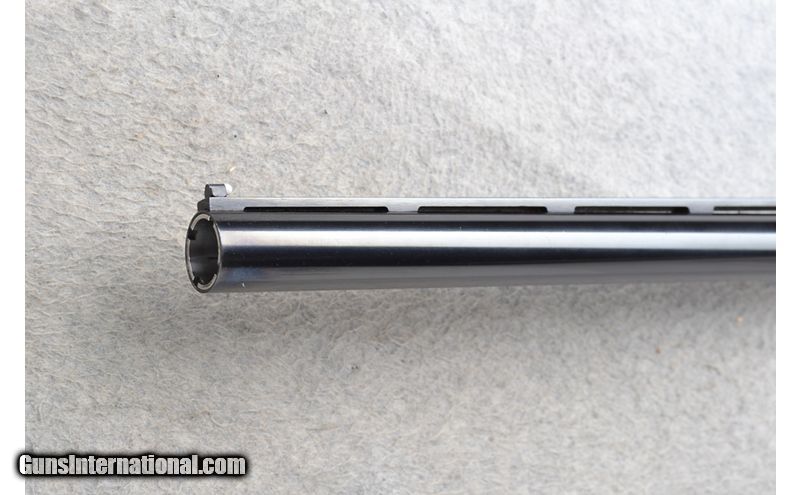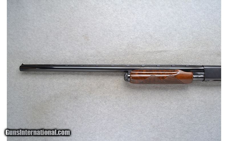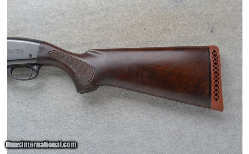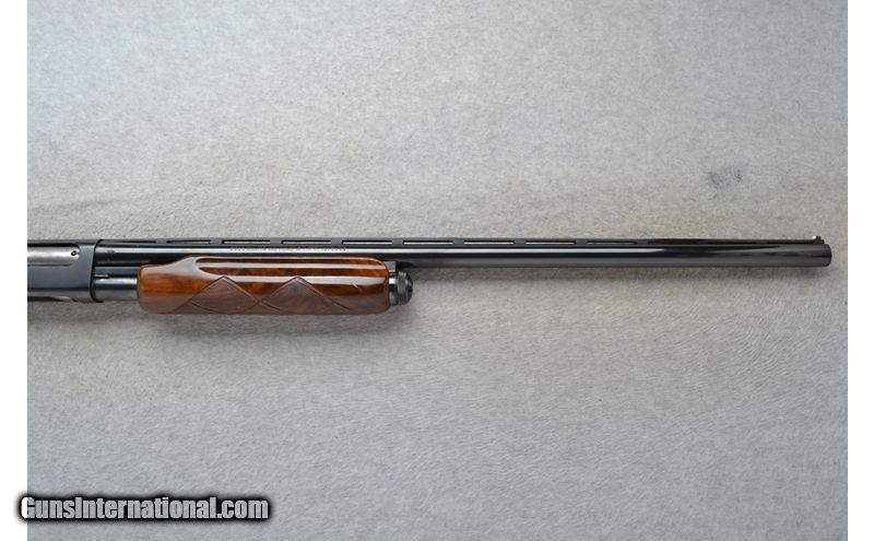 Description: This Remington Model 870 TB Wingmaster is a right hand pump action shotgun in 12 Ga. It comes with a 28 inch barrel and a 30 inch barrel. Both have ventilated ribs. Both are in 2 3/4 inch chamber. The 28 inch has a Modified choke tube. The 30 inch has a fixed Full choke. The butt stock is a checkered grip walnut pistol grip with a Remington black cap. The forearm is a checkered grip walnut with finger grooves. 12 Gauge SOLD Chambers: 2 3/4 inch both barrels. Metal Condition: Barrels are excellent. Receiver has minor freckling. Wood Condition: Good. Butt stock has some light surface wear and minor handling marks. Bore Condition: "Clean, bright and shiny. Barrels: 28 inch and 30 inch both with ventilated ribs. Stock Dimensions: LOP 14 1/4 inches. Fore End: Checkered grip walnut with finger grooves. Butt Pad: Pachmayr red rubber recoil pad. Weight: 8 Lb. 0 Oz. Sights: 28 inch has a white bead front and metal middle bead. 30 inch has a metal front bead. Chokes: 28 inch has a Modified choke tube. 30 inch is fixed Full choke. Item Location: Richfield, WI |