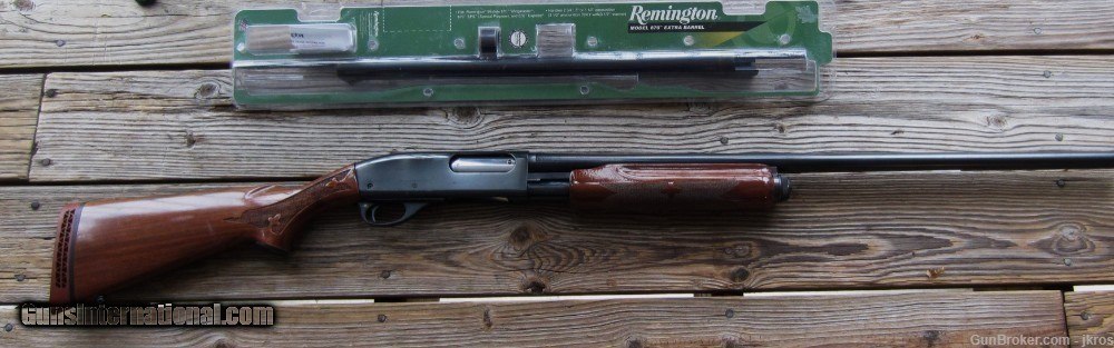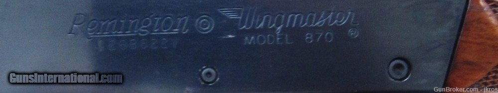 Description: REMINGTON 870 WINGMASTER - 12 GA. FULL CHOKE - W/NEW 18" POLICE BARREL EXCELLENT CONDITION VERY LIGHTLY USED SHOTGUN WITH PRISTEEN WOOD AND A COUPLE OF TINY DINGS ON THE RECEIVER. BOTH 30" FULL AND NEW IN CLAMSHELL 18" POLICE BARREL INCLUDED. $45 INSURED SHIPPING SOLD Shotgun Gauge: 12 Gauge Manufacturer: REMINGTON Model: WINGMASTER Metal Condition: VERY GOOD Wood Condition: EXCELLENT Bore Condition: EXCELLENT |