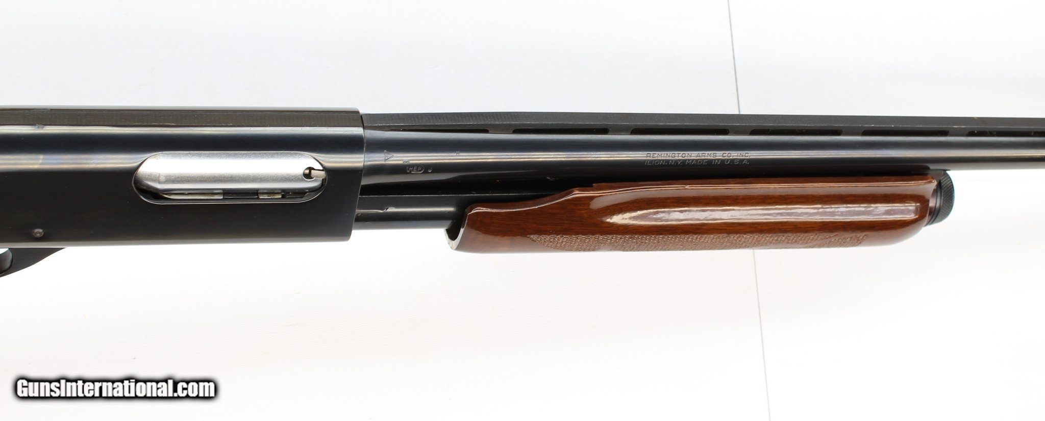 Description: Guns Listing ID: 481390 SER#V988290M 12 ga., 30” ventilated rib barrel choked FULL with a bright excellent bore. The metal surfaces retain about 97% original blue with overall spots of light oxidation, and the bolt is bright. The fleur-de-lis checkered walnut capped pistolgrip buttstock and forend rate perhaps very good with a factory buttplate, a few dings along the edges of the forend, and overall light handling marks. The shotgun is sighted with one mid bead white a silver bead and has a 14in LOP. One fabulous vintage wingmaster for collectors or field sports. SOLD Manufacturer: REMINGTON Model: 870 WINGMASTER Caliber Info: 12 GA Condition: Used - Non-Certified Barrels: 30 Finish: blue |