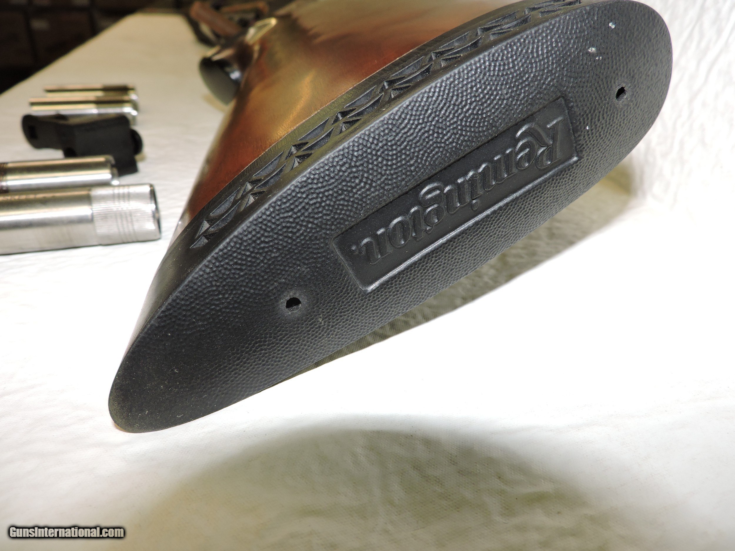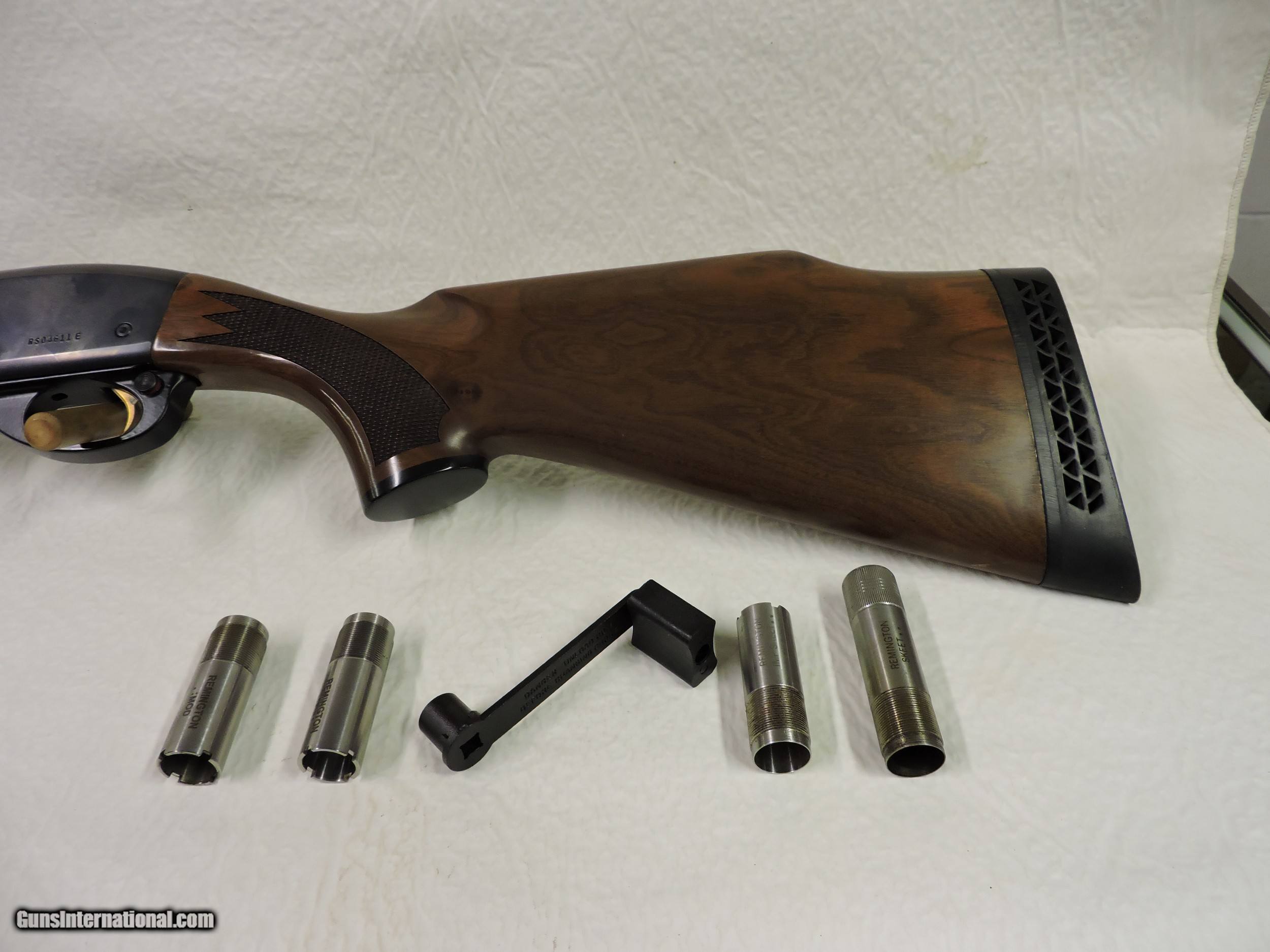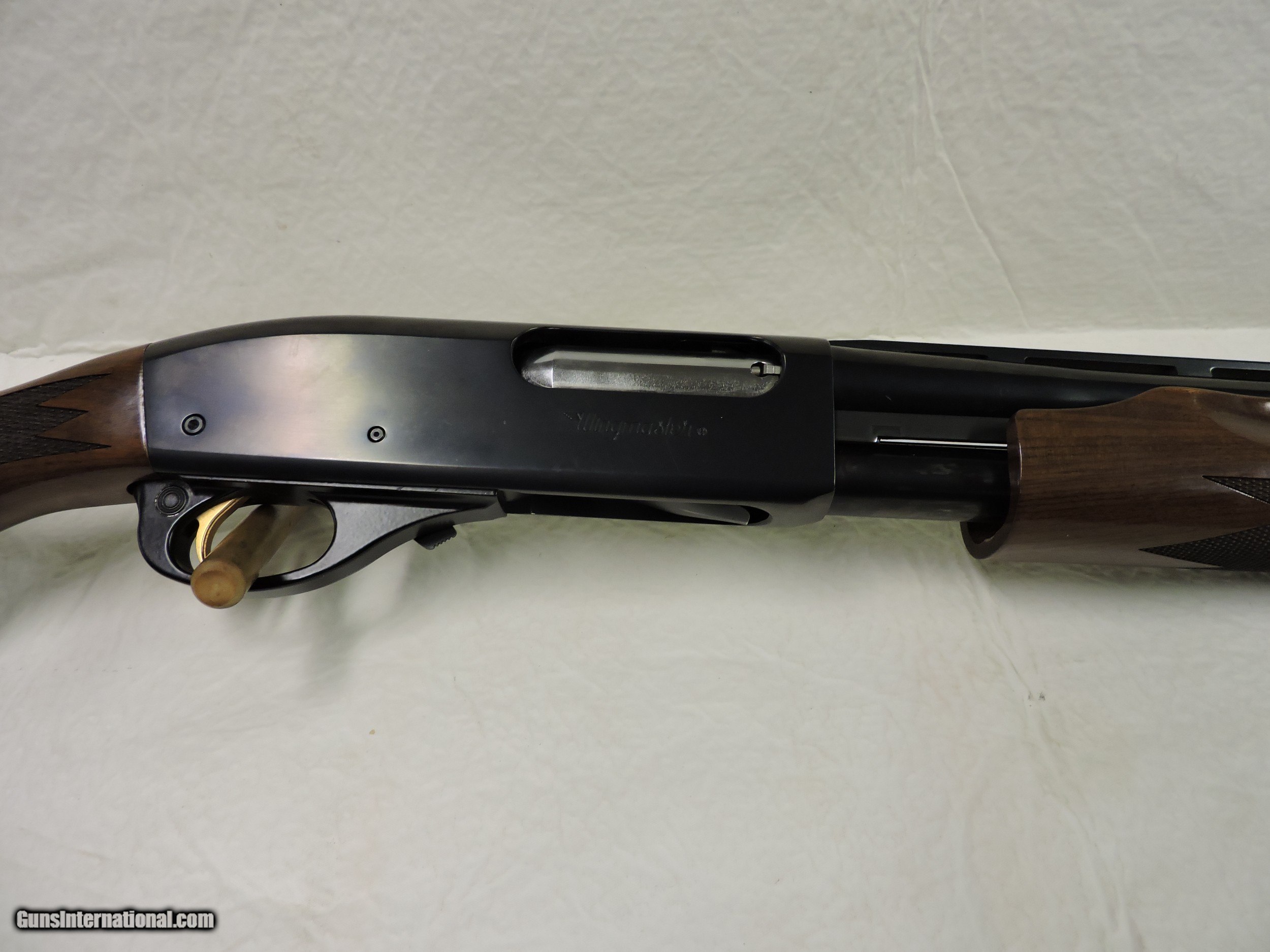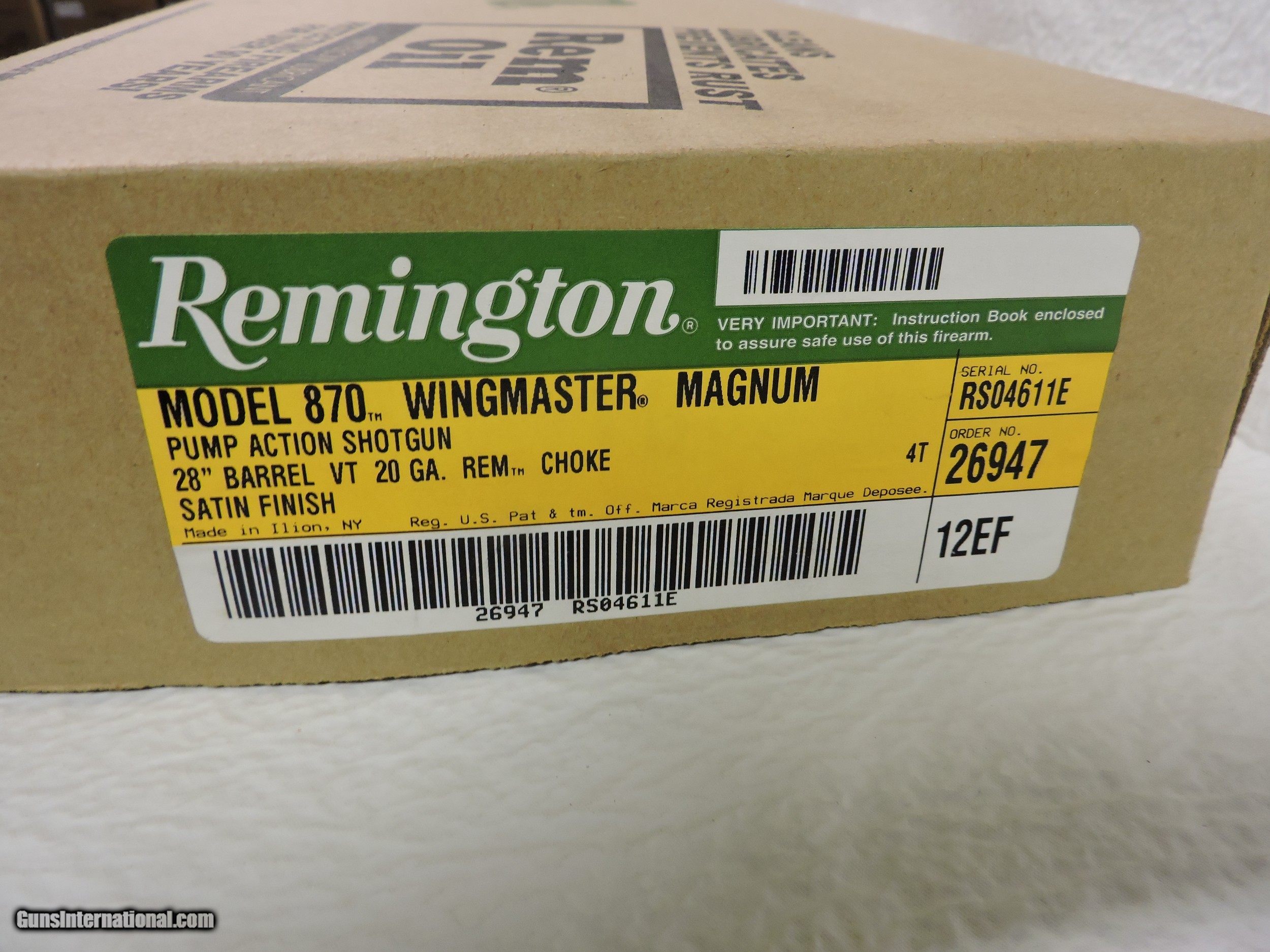 Description: Remington Model 870 Wingmaster Magnum 20 ga.. 2 3/4& 3 " chamber. 28" VR . Rem choke Im/Cly, Mod, Full, skeet, extended skeet with wrench. White front bead and medal middle bead. The stock is a remington Monte Carlo with pad. Semi-Gloss and cut checkering, LOP 14". The orginal box and papers included. The bluing and wood condition is 97%. Real nice.. Ths gun would be excellant for a woman or youngster to learn to shoot trap. $ 1,495.00 plus shippping. No 3 day inspection or return. Phone # 330 534-3707 email CMommaday2345aol SOLD Shotgun Gauge: 20 Gauge |
