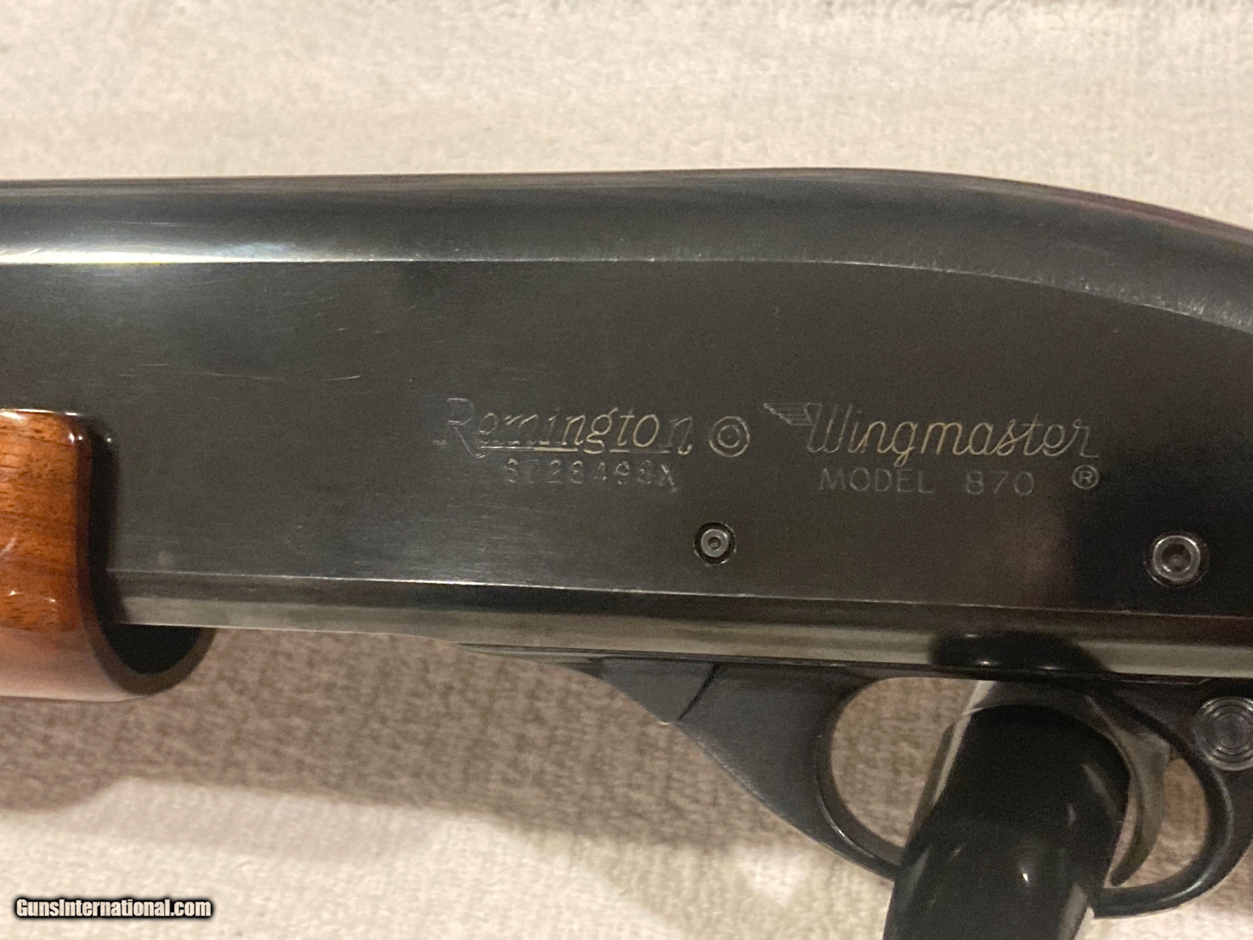 Description: Up For sale Remington 870 Wingmaster 20 ga , mod choke , 2 3/4" chamber , 28" barrel lop 14" this gun is really clean 90% or better $800 sale pending thanks for Looking Mike 816-616-5942 SOLD Shotgun Gauge: 20 Gauge Manufacturer: Remington Model: 870 Wingmaster Barrel Length: 28” Condition: Very good Metal Condition: Excellent Wood Condition: Excellent Bore Condition: Excellent LOP: 14” Chokes: Mod |