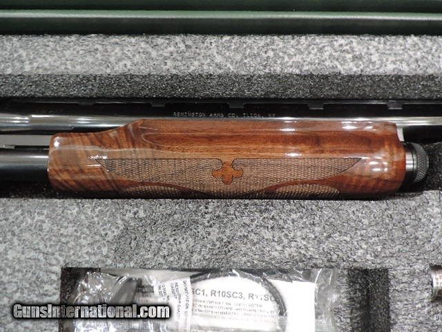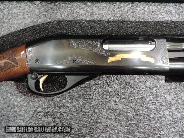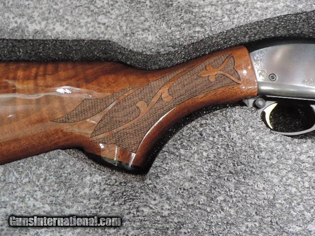 Description: REMINGTON 870 WINGMASTER 200TH ANNIVERSARY LIMITED EDITION 12 GA 26 INCH SHOTGUN. BLUE FINISH - HIGH GLOSS GRADE C WALNUT STOCK WITH 24 KARAT GOLD INLAY - GOLD PLATED TRIGGER VENTED RIB WITH TWIN BEAD SIGHTS - 3 INCH CHAMBER - CAPACITY 4+1. NEW IN COMMEMORATIVE BOX WITH PROTECTIVE GUN SOCK, CHOKES & 200 YEAR COMMEMORATIVE BOOK. RARE SHOTGUN! SUBJECT TO PRIOR STORE SALE. SHIP TO FFL ONLY. BUYER RESPONSIBLE TO DETERMINE IF FIREARM IS LEGAL IN HIS/HER STATE. BUYER PAYS $60.00 SHIPPING TO LOWER 48 STATES. BUYER PAYS 3% FOR CREDIT CARD. ARIZONA RESIDENTS PAY 6.712% SALES TAX. SOLD Shotgun Gauge: 12 Gauge Manufacturer: REMINGTON Model: 870 WINGMASTER Serial Number: 20168700048 Barrel Length: 26 INCH Condition: NEW IN BOX |