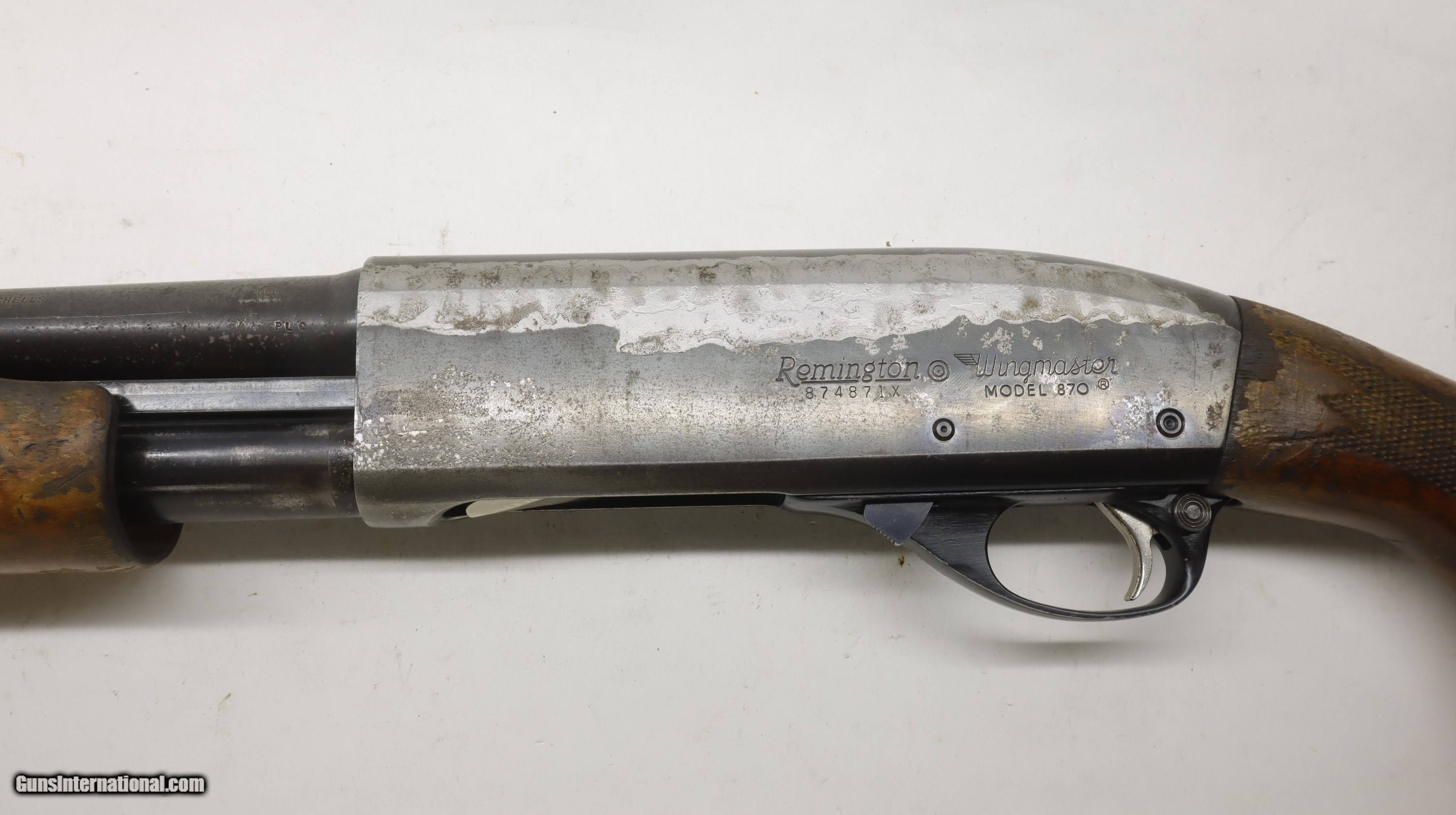 Description: Remington 870 Wingmaster, 20ga with 24" barrel including the Lyman choke. 2.75" chamber. Looks to be in great working order but not stored well. Will make a great classic shooter, truck gun or a restoration gun. SN is 8748xxX, built on the standard receiver. We will trade for silver and gold. All my guns (except Layaway) come with a non-firing, 3 day unconditional return privilege, from the day UPS delivers to your dealer. Buyer pays shipping both ways if the gun comes back. Please make sure to make it to your FFL to inspect within the 3 days. We accept personal check, any certified funds. We can also take your credit card, +3%. Email me if you would like these pictures sent to you, they will come through bigger and better than on the listing page here. We do offer Layaway. Our standard terms are 25% down, 90 days. Initial deposit is not refundable. Layaway guns do not have an inspection or return policy. Email me with any questions. Please check your local laws to confirm it is legal to own in your state! Buyer pays $60 shipping and insurance in a brand new PLANO hard case to your FFL in the lower 48. AK, HI or PR is extra. I will ship to California, as long as it is legal, NO PROBLEM! I am a licensed FFL, and will include a copy of my FFL with the gun for your dealer’s records. I will ship to a C&R if the gun is eligible. I will ship to California, but you need to confirm the gun is legal where you are, California or other. WE BUY AND CONSIGN GUNS AND GUN COLLECTIONS! We will travel to pick up collections! I am always looking for good clean, old original Winchesters to buy, consign, or trade, especially Pre '64's model 70's and model 54's. WE ALSO TRADE FOR CLASSIC CARS AND TRUCKS! We also trade for gold and silver. SOLD Shotgun Gauge: 20 Gauge Manufacturer: Remington Model: 870 Barrel Length: 24 Condition: used |