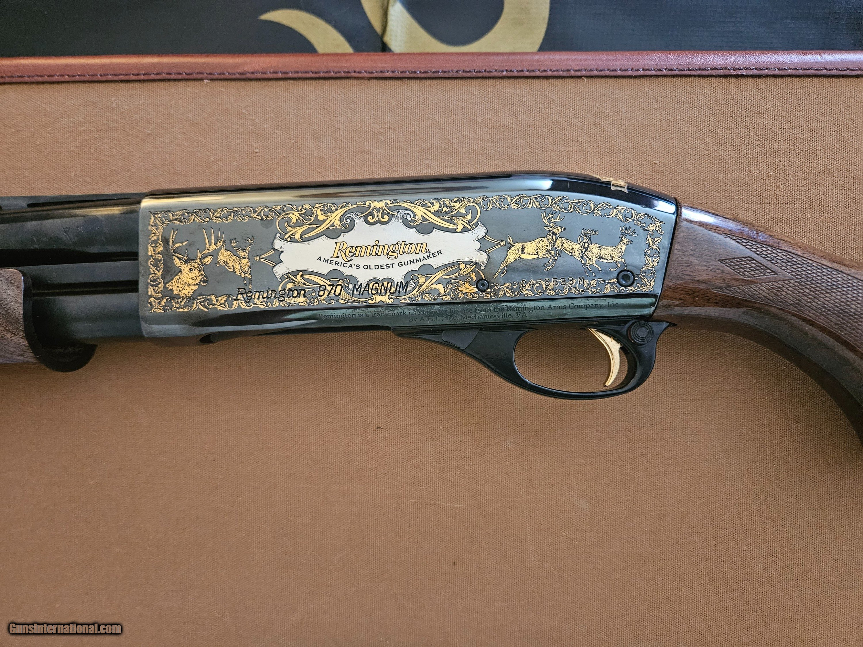 Description: Remington 870 Wingmaster Deer Hunter Tribute 12GA /Case. Only 300 produced. Nice Gold Engraving. Credit Cards add 3%. Shipping and Insurance is 75.00. SOLD Shotgun Gauge: 12 Gauge |