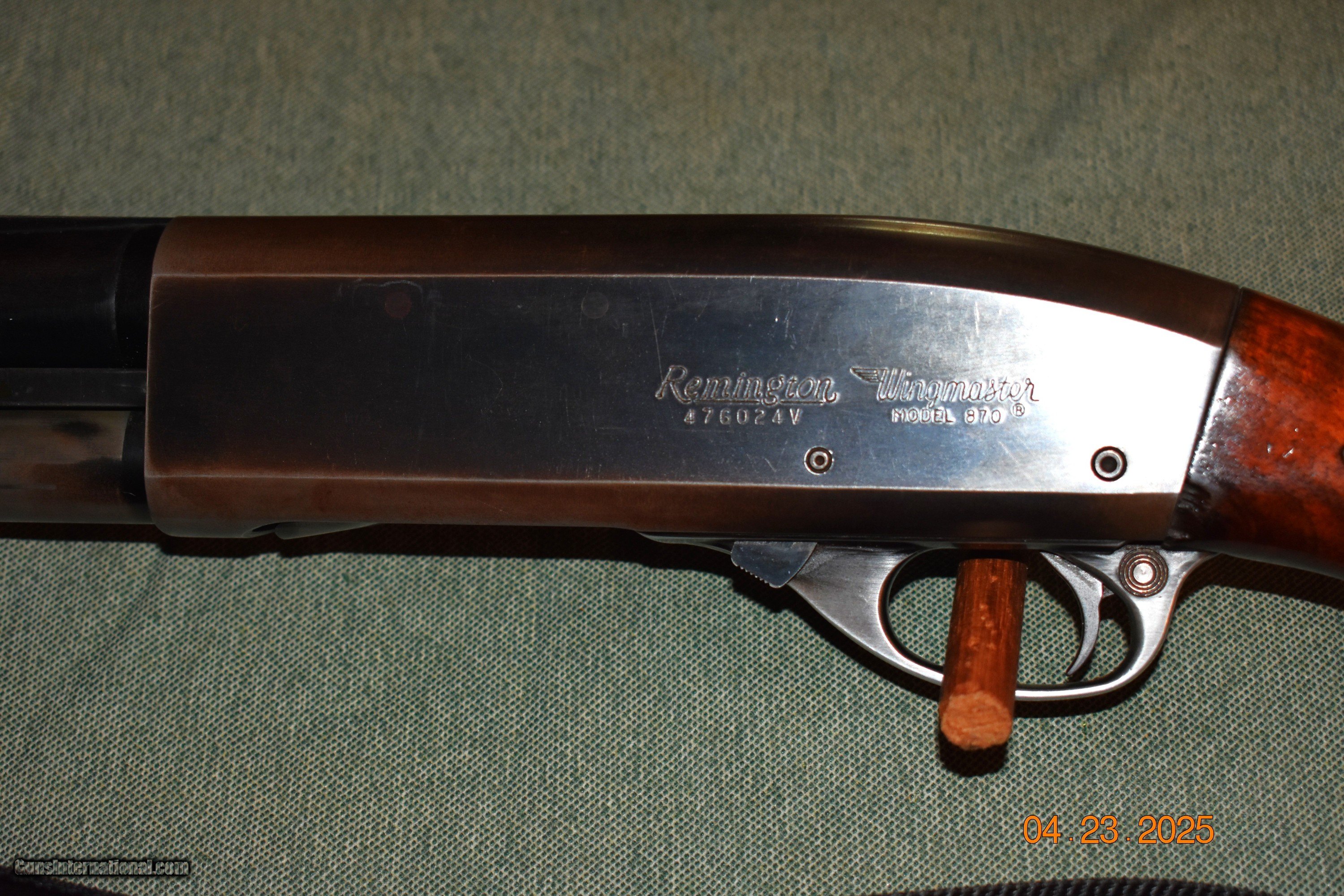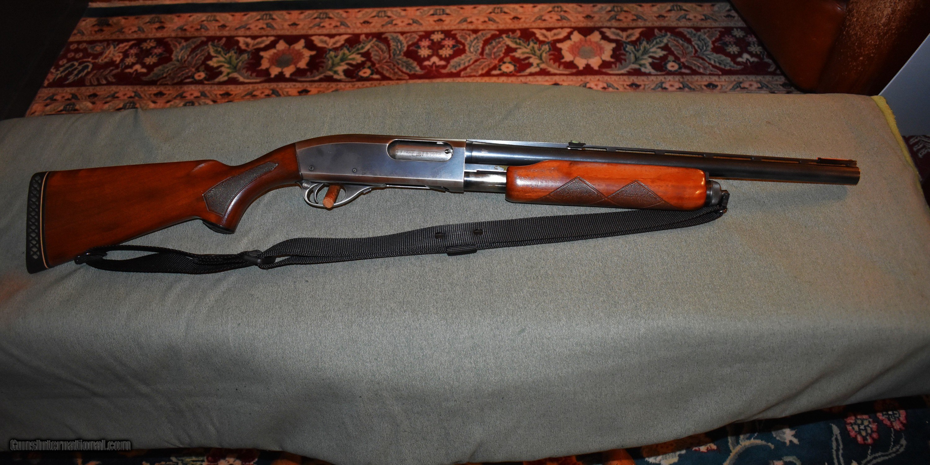 Description: Remington model 870 Wingmaster 12 gauge. This gun has a vent rib 23/4" barrel cut down to 18" with raybar sights and cylinder bore choke. The gun is in excellent mechanical condition. It retains 70% of the blue and 90% of the wood finish. This would make a great home defense or camp gun. Price iscludes shipping to your FFL. SOLD Shotgun Gauge: 12 Gauge Manufacturer: Remington Model: 870 Wingmaster Serial Number: 476024V Barrel Length: 18 Chambers: 23/4 Condition: Very Good Metal Condition: Very good Wood Condition: very good Bore Condition: mint Action: Pump Butt Pad: recoil pad Chokes: cylinder |