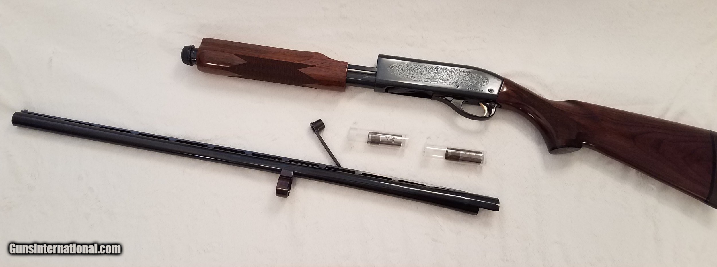 Description: This is a very good condition Remington 870 LC 12 gauge with a 28" vent rib RemChoke barrel. And comes with 3 RemChoke tubes, Improved, Modified and Full. This shotgun is for 2 3/4 shells only and has the Light Contour barrel. It has enhanced receiver engraving and very nice wood. It also has the original box and documentation with it. Barrel code indicates this shotgun was made in 1999. SOLD SOLD Shotgun Gauge: 12 Gauge |