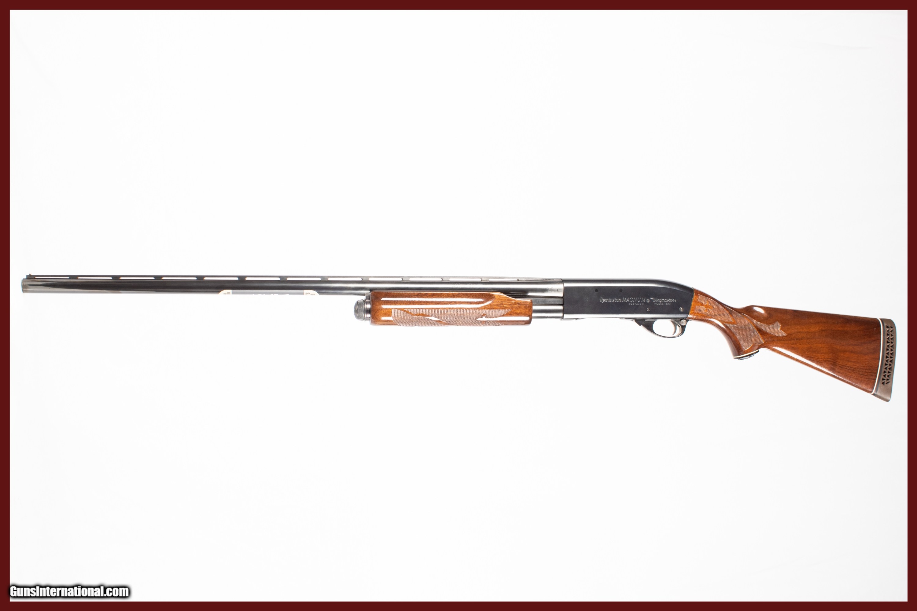Remington 870 Wingmaster Magnum with a 30 inch 12 gauge barrel bright & shiny bore 3 inch chamber fixed full choke a 14 inch LOP and an extra 26 inch 12 gauge barrel with a bright & shiny bore 3 inch chamber vent rib and screw in chokes (Imp Cyl Mod & full). This firearm is in excellent condition and is covered by Dury's Lifetime Warranty.