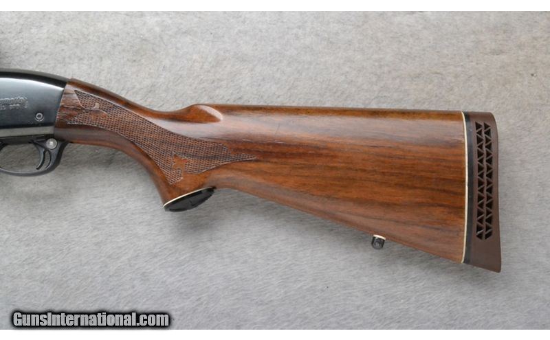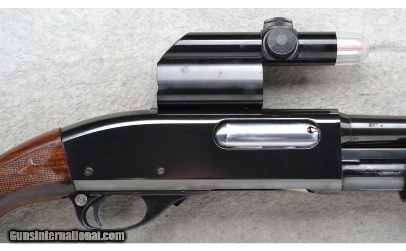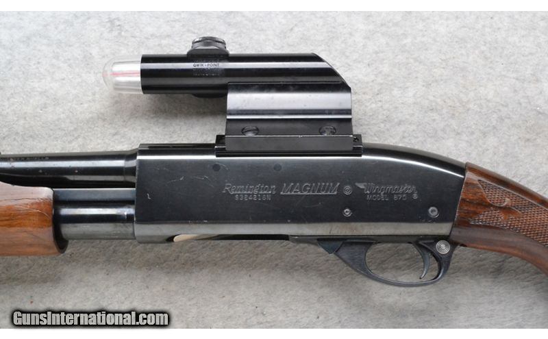 Description: This Remington Model 870 Wingmaster Magnum is a right hand pump action shotgun in 20 Ga. It has a 20 inch barrel. A blade front sight and an adjustable notch middle sight. It is outfitted with a Weaver Quick-Point sight. With a 2 3/4 inch chamber it has a fixed CYL choke. The butt stock is a checkered grip walnut pistol grip with a black cap. The forearm is a checkered grip walnut with finger grooves. 20 Gauge SOLD Chambers: 2 3/4 inch. Metal Condition: Good. Some minor freckling and handling/use marks. Wood Condition: Good. Minor handling marks. Wood swell at the recoil pad. Bore Condition: Shiny. Barrels: 20 inch. Stock Dimensions: LOP 13 7/8 inches. Fore End: Checkered grip walnut with finger grooves. Butt Pad: Remington brown rubber recoil pad. Weight: 7 Lb. 6 Oz. Sights: Raised blade front. Adjustable notch middle. Weaver Quick Point Model S-1 sight. Chokes: Fixed CYL. Item Location: Richfield, WI |