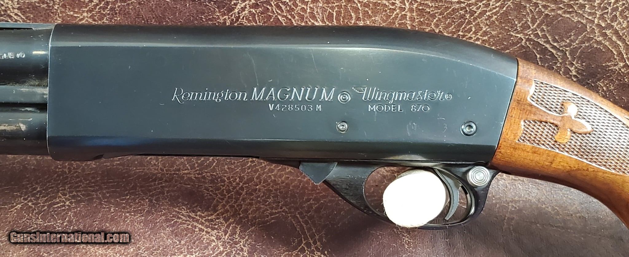 Description: Guns Listing ID: 522685 ***REMINGTON - 870 - WINGMASTER - MAGNUM*** 12 GAUGE MAGNUM 3\" CHAMBER 28\" VENTILATED RIB BARREL MODIFIED CHOKE FIGURED WALNUT STOCKS WITH CUT CHECKERING DEEP HIGH GLOASS BLUE FINISH EXCELLENT CONDITION MADE 1980 SOLD Manufacturer: REMINGTON Model: 870 WINGMASTER MAGNUM Condition: Used - Non-Certified Barrels: 28 BARREL Gauge Info: 12 Finish: BLUE |