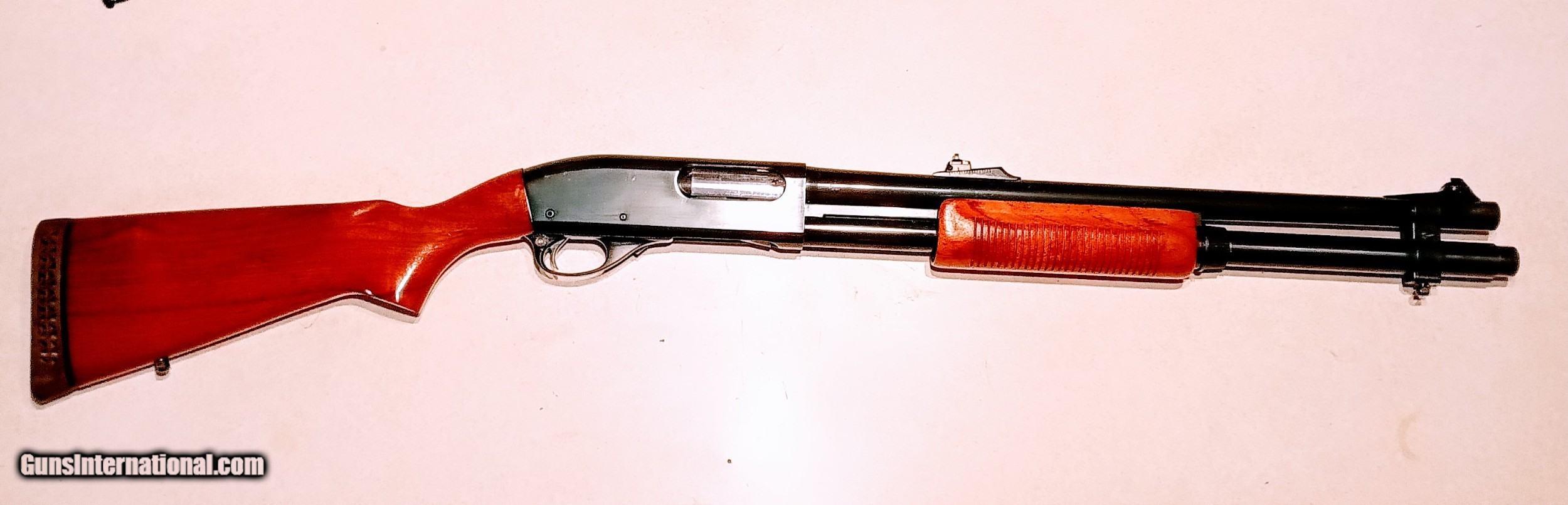 Description: Remington 870 Wingmaster Police / Riot Gun , 20" Barrel , 12 Guage , 2 3/4": Chamber , Adjustable Rifle Sights , Serial number V195147V , This is one of the better quality models by far , 100 % Original in very good condition with minor storage wear only , appears to be unfired .. SOLD |