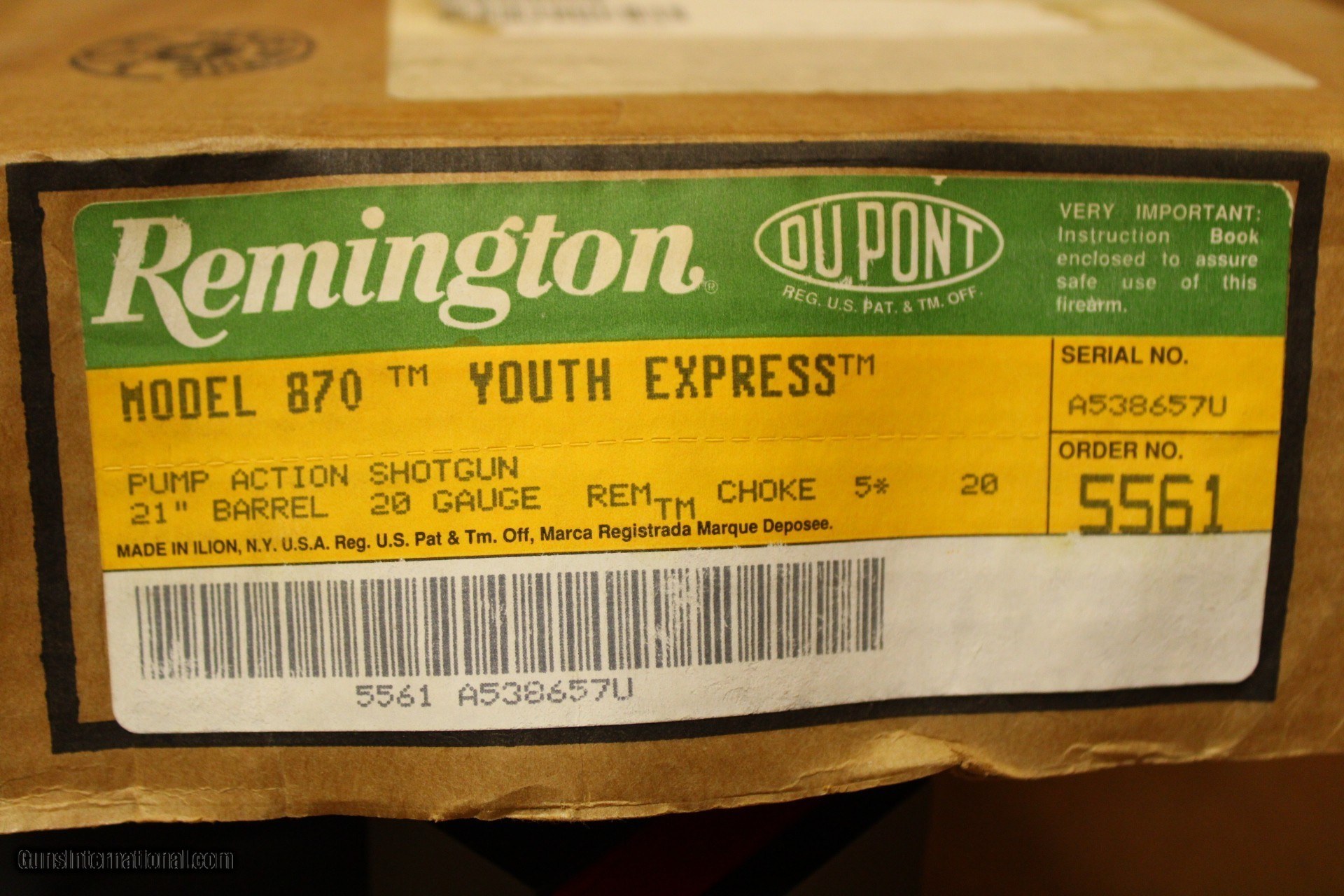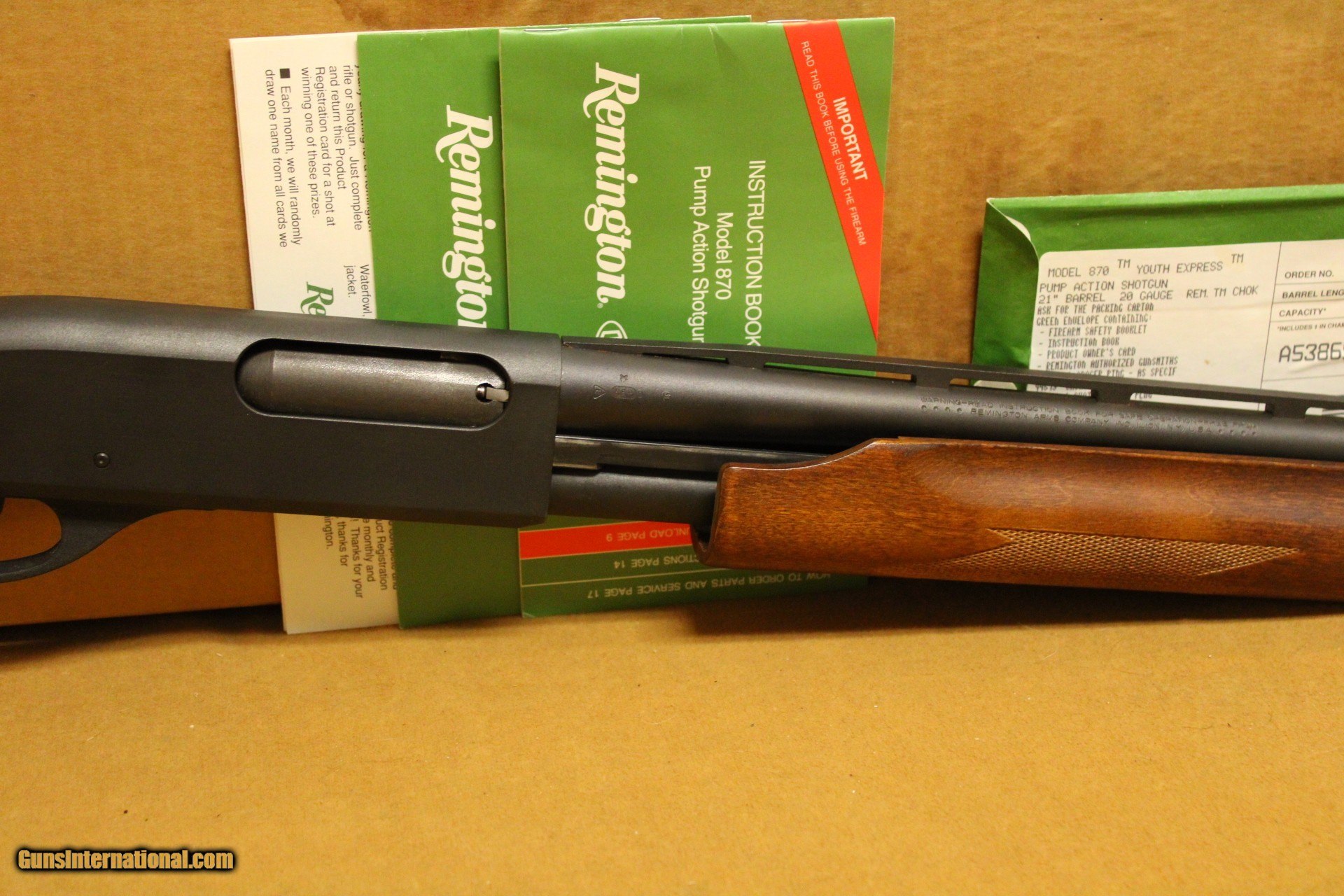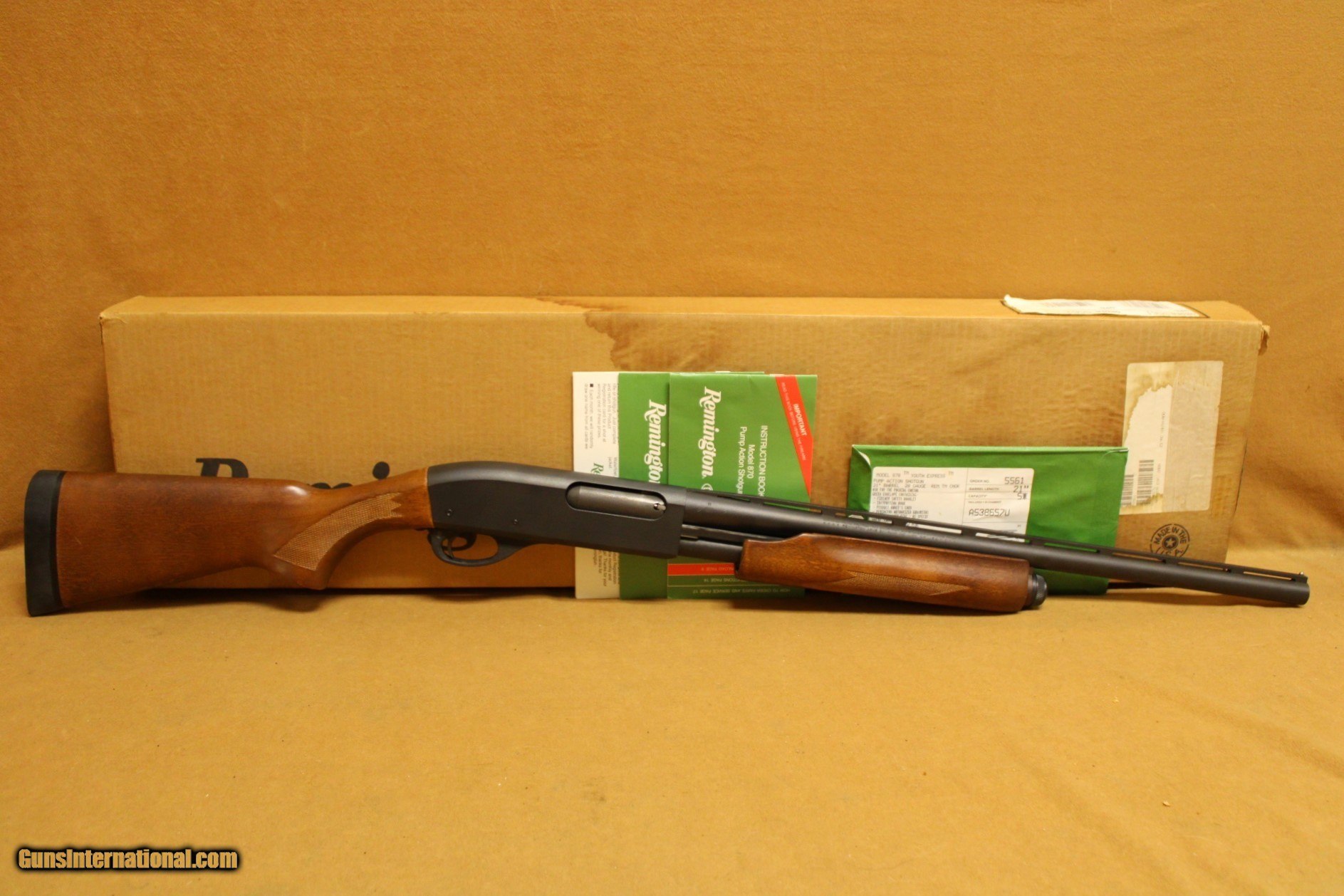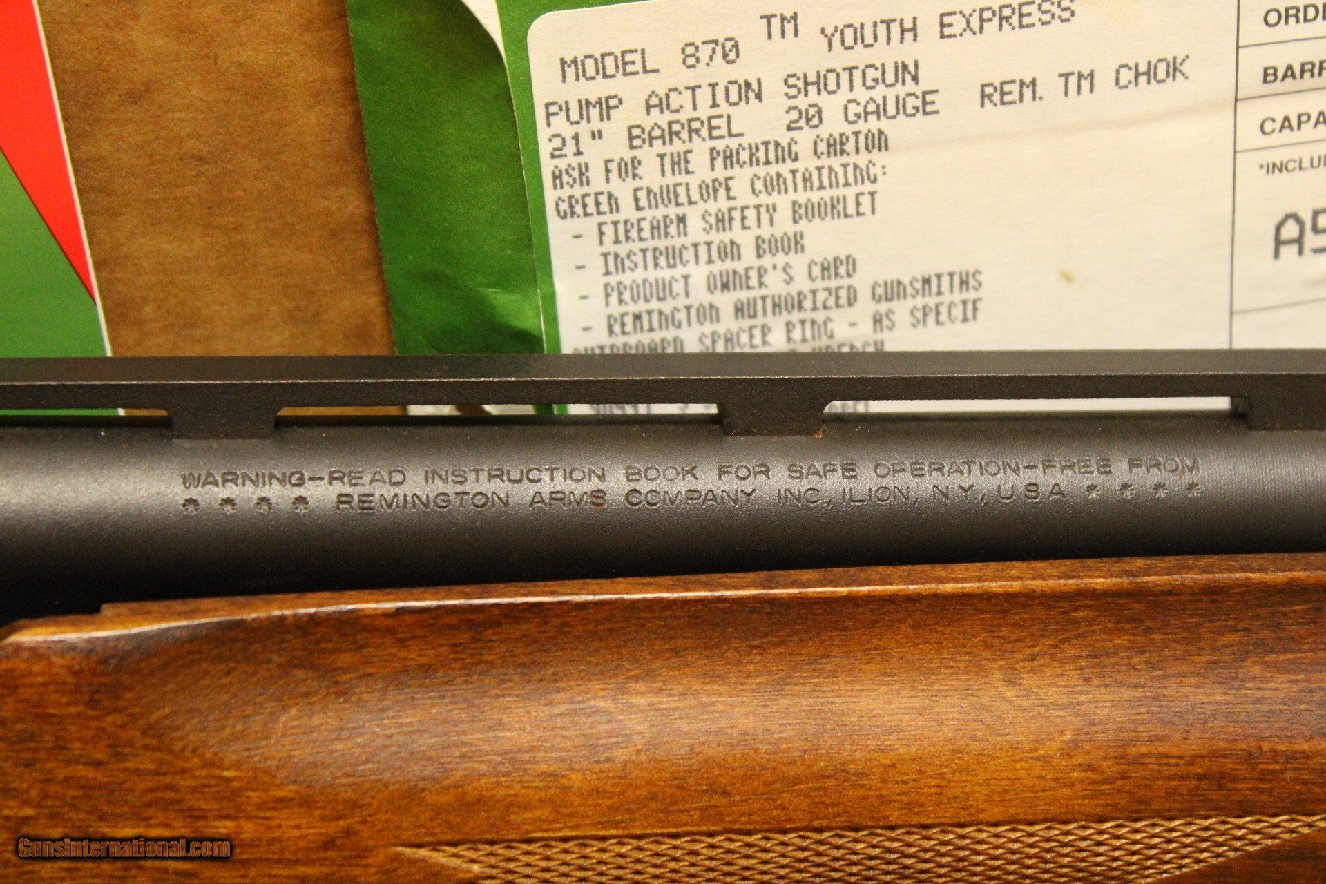 Description: The Lightweight Model 870 Express Youth 20 gauge makes an excellent, fast handling field gun for the smaller shooter. The 21 inch vent rib barrel with Modified Rem Choke balances perfectly with the 13 inch length of pull stock(1 inch shorter than standard). Both the forend and stock are crafted from durable hardwood and feature a low luster finish and checkering. This gun is pre-owned, but like-new. It has its original box, but the box has clear signs of water damage. This does not seem to have affected the gun at all. It is possible that the gun itself was stored in a different location from the box when it got wet. SPECIFICATIONS: