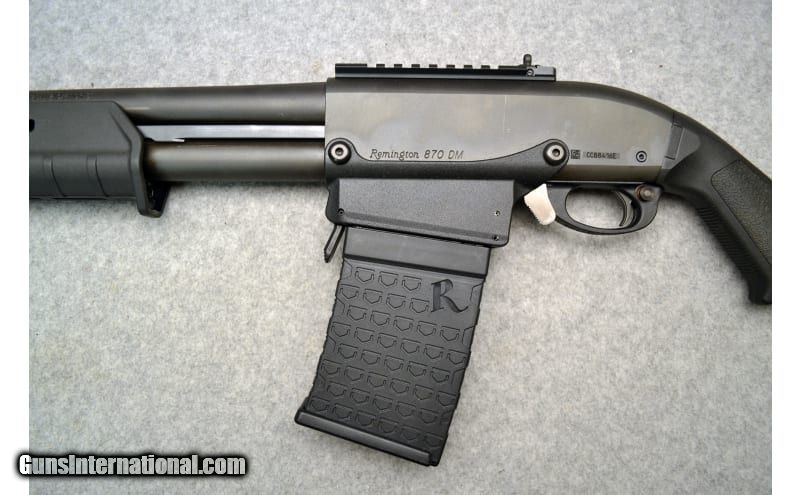 Description: The Remington® 870 Tactical Pump-Action Shotgun with Magpul® Stock and Fore-End is a great shotgun with an incredible record of success. This scatter gun features a Magpul stock set, further improving modern looks on this classic design. An 18.5" barrel with XS Ghost-Ring rear sight and white bead front gives you a solid barrel length for use in protection. A steel, milled receiver gives you extra durability and peace of mind knowing this shotgun can handle it all. The barrel's muzzle is threaded for choke tubes and the 870 DM arrived with a tactical extended Cylinder choke. The "extended" Cylinder tube allows the choke tube to host a muzzle brake and gives the muzzle some standoff should you want to use this shotgun for doing things like breaching doors. Includes one box magazine. 12 Gauge SOLD Barrels: 18.5 Weight: 8 LB Item Location: christiana |