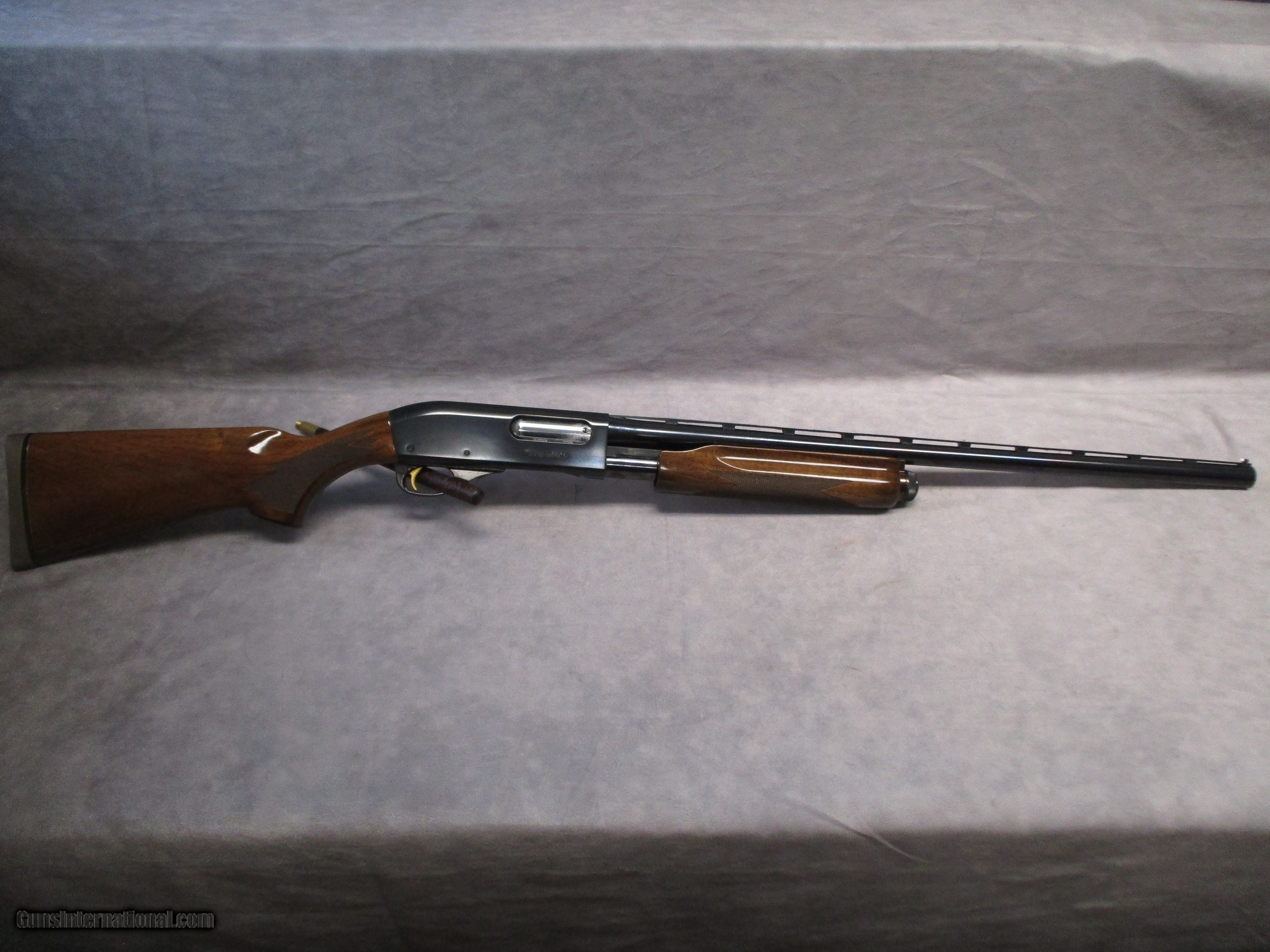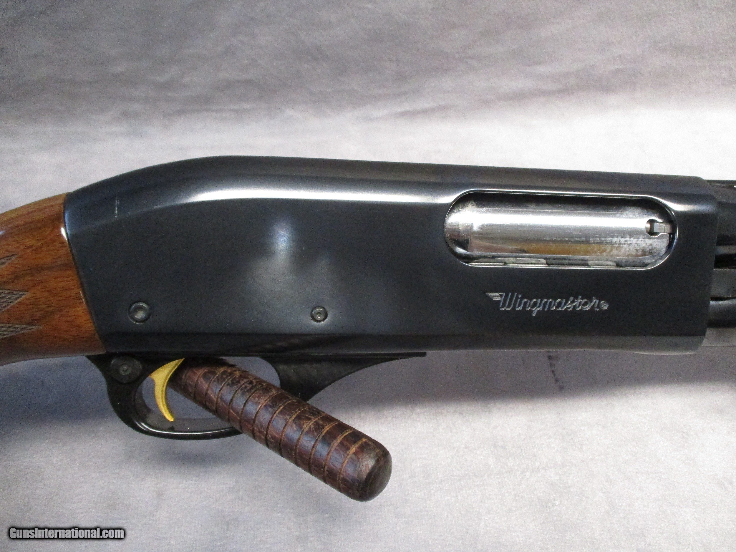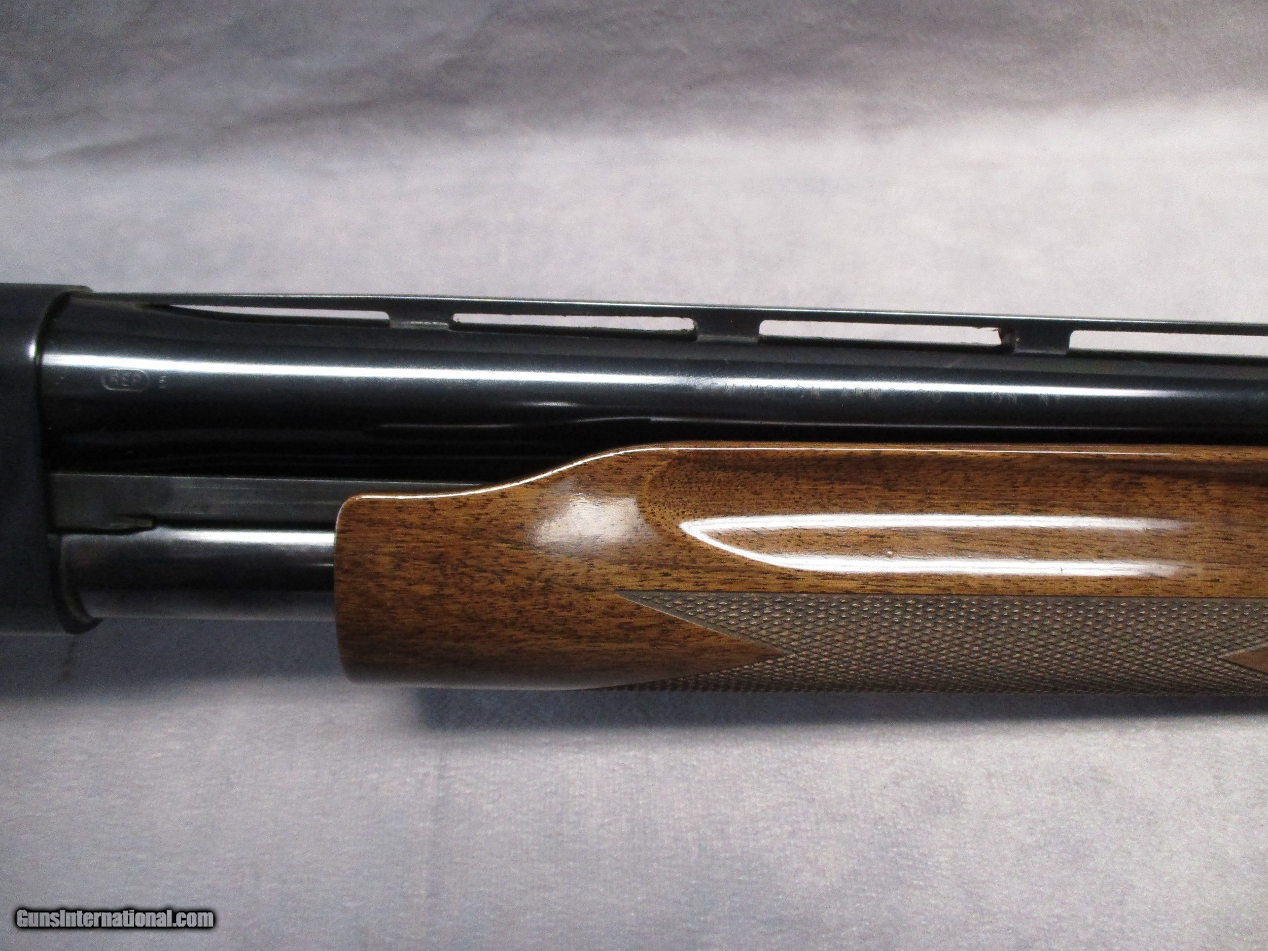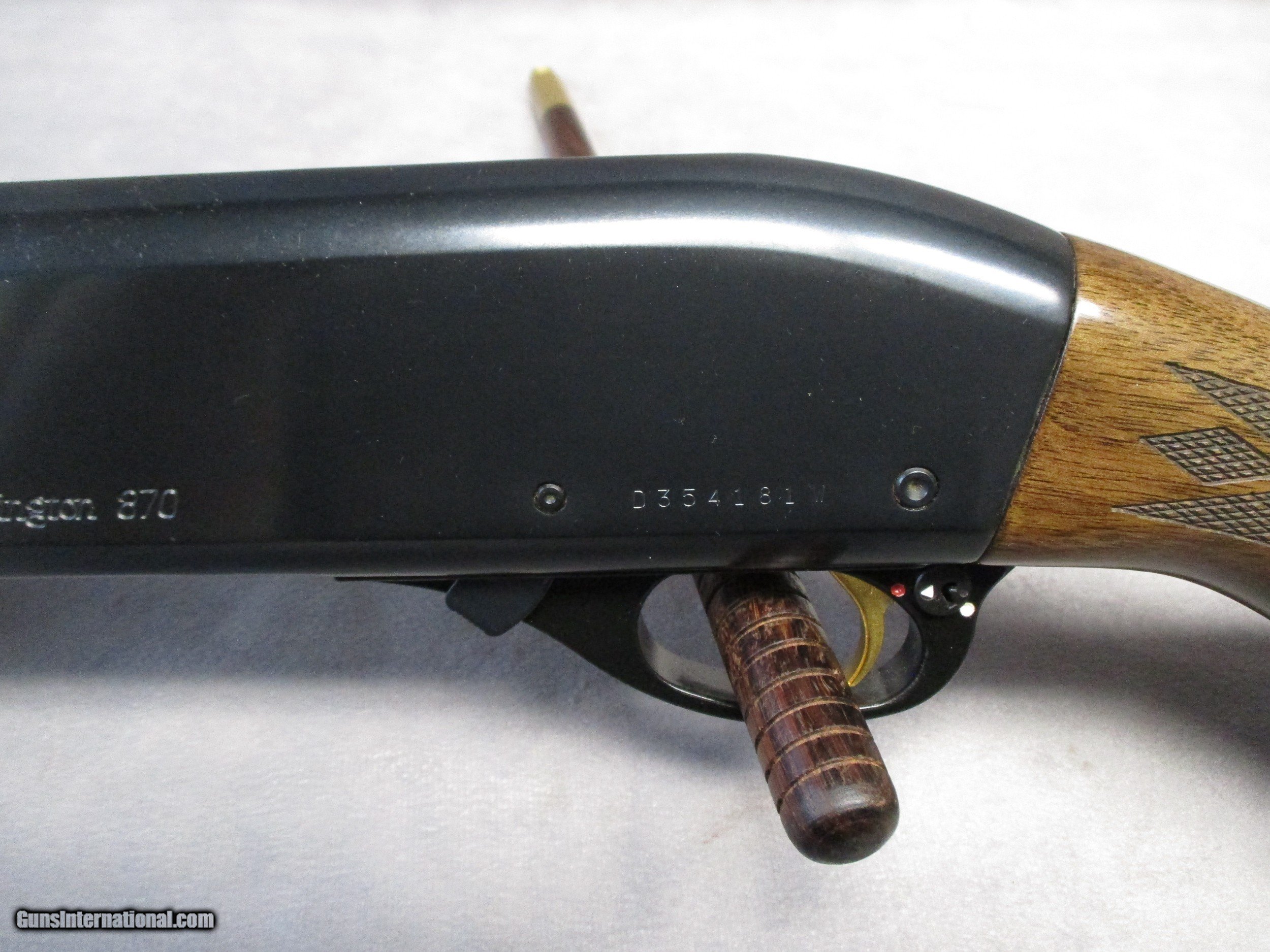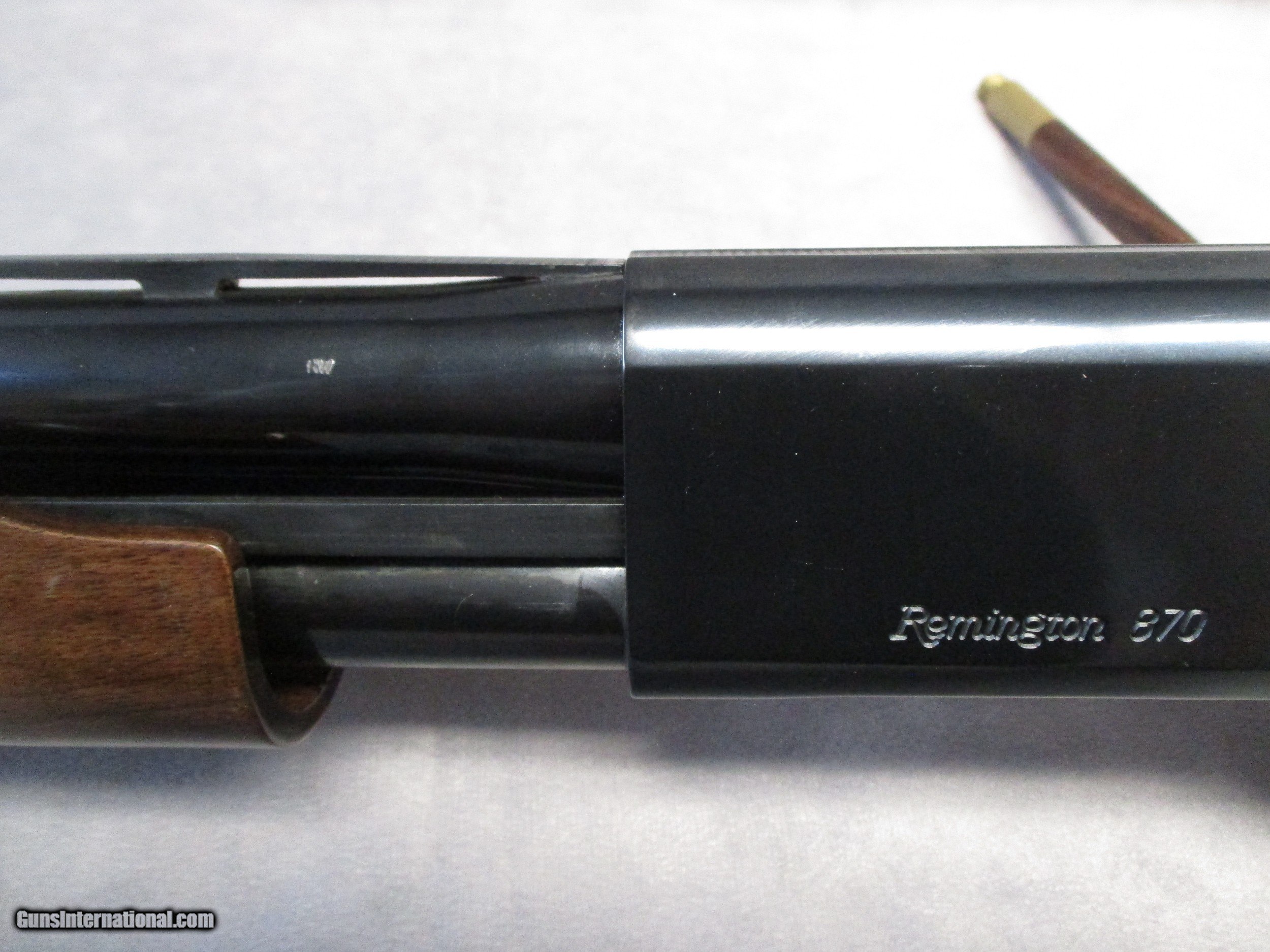 Description: The classic Remington 870 is one of the most popular pump-action shotguns ever manufactured and is also one of the most produced shotguns in history, with over 11 million produced. Even today, it is still in production. It was introduced in 1950 to replace the Models 29 and 31 and was an immediate hit. Remington firearms can generally be dated by their barrel code, which consists of the two letters stamped on the barrel closest to the receiver. The first letter indicates the month and the second indicates the year of manufacture. The nearby number is the assembly number. The first letter is appears to be the letter “R”. The second is the letter “W”. Thusly, this 870 was produced in November of 2002. Had it been made in 1972 (the previous year to use the letter “W”), the shotgun would have had a matte finish instead. The barrel uses Rem chokes – improved cylinder in this case. Improved cylinder choke is perfect for use against targets in the range of 30-40 yards away. At the 40 yard distance, 55% of the shot should fit inside a 30-inch circle for the shot pattern to be considered effective, whether it be against clay target or a game bird. There is currently a plug in the magazine tube which reduces the magazine capacity to two in the tube and one in the chamber. There are few if any signs of wear. There is one small scratch on the upper right side of the receiver and a small bit of wear on the same side near the loading port. Otherwise, the finish is at roughly 98 percent. The bore is bright with no rust or pitting present. Internally, the action and bolt are in excellent shape. Both shell latches exhibit light micro pitting. This should not affect the gun in any way. Overall, this 870 is in fantastic shape and should serve its new owner very well for many years. SOLD Shotgun Gauge: 16 Gauge Manufacturer: Remington Arms Co. Model: 870 Field Wingmaster Serial Number: D354181W Bore: Smoothbore Chambers: 2.75 inches (70 mm) Ejectors: Yes Condition: Excellent Barrel Type: Ribbed Action: Pump Action Triggers: Single, gold Stock: Checkered Wood, high-gloss finish Stock Comb: 1.5 inches (38 mm) Stock Heel: 2.5 inches (64 mm) Fore End: Checkered wood Butt Pad: Remington-label Brown solid butt pad, Black spacers LOP: 14.0 inches (356 mm) Rib: Vent, 0.295 inches (7.5 mm) wide Finish: Blued, Sights: Front white bead Manufacture Date: 2002 Chokes: Rem chokes - Improved Cylinder |