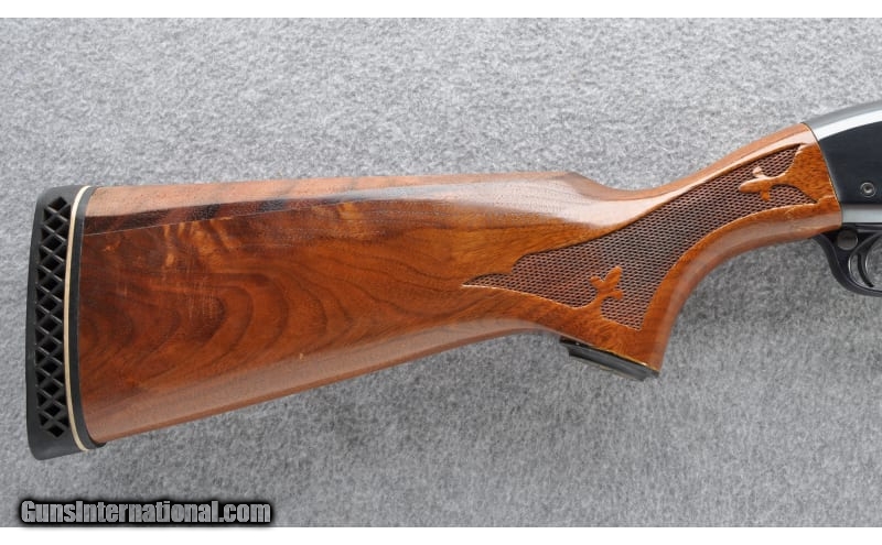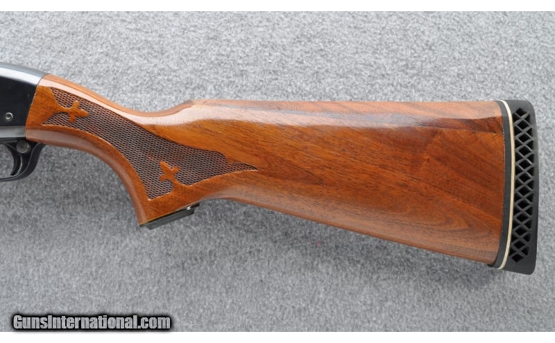 Description: The Remington 870 TB is a Trap shotgun with "B" grade wood and pressed checkering. This shotgun was made in 1966 and appears in good condition. This one probably had a Monte Carlo buttstock and a former owner modified the stock to better fit their shooting style. 12 Gauge SOLD Chambers: 12 Gauge 2 3/4" Chamber Metal Condition: Good condition with a few operational marks on the action bars and some light scratches on the receiver Wood Condition: Good with no cracks. The comb has been shaved and contoured with replacement wood Bore Condition: Bright Barrels: 30" Vented Rib Stock Dimensions: 14 1/4" LOP Fore End: Press checkered walnut with grasping grooves Butt Pad: Pachmayr White Line Weight: 7 Lbs. 12 Oz. Sights: "White front bead, metallic mid-bead Chokes: Fixed Full Item Location: Grand Junction, CO |
