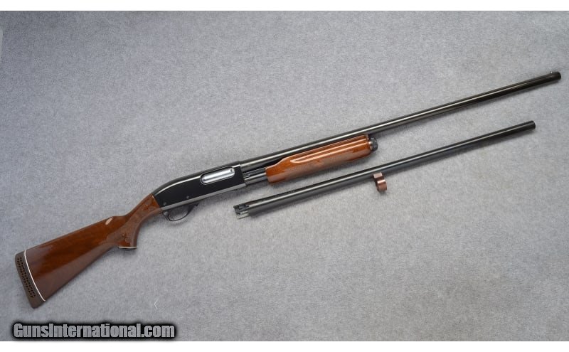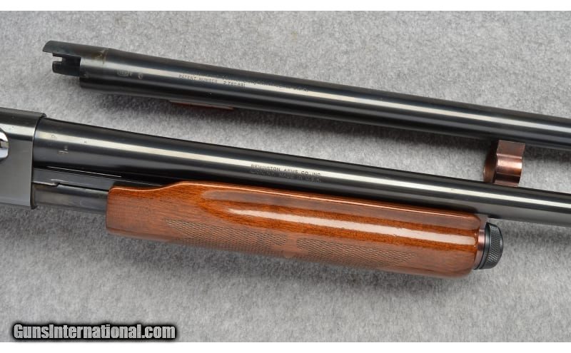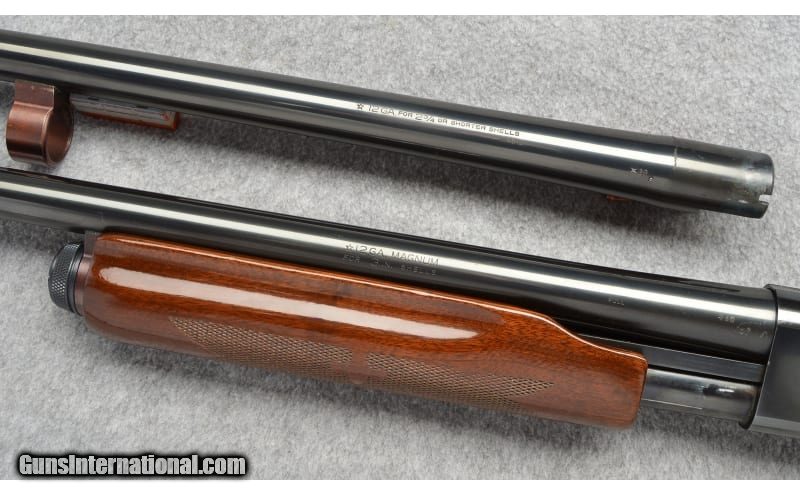 Description: Remington Model 870 Wingmaster Magnum equipped with a 30" Full choke, plain barrel and includes an extra 26-inch barrel in Imp.Cyl. Very clean, shows only few light scratches and tiny freckles 12 Gauge SOLD Chambers: "3 Inch on the 30"" Barrel, 2 3/4 on the 26 inch. Wood Condition: Blued Bore Condition: Bright Barrels: "30 Inch , 26 Inch Stock Dimensions: 14" LOP Fore End: Checkered Walnut Butt Pad: Remington Vented Recoil Pad Weight: 7 Lbs. 6 Oz. Sights: Metal Bead Chokes: "Full on the 30"" bbl., Imp Cyl on the 26"" bbl. Item Location: Buda, TX |