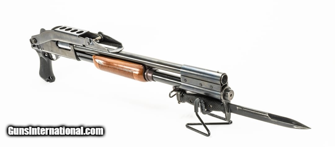 Description: Guns Listing ID: 1313576 Manufacturer: Remington Model: 870 Wingmaster Condition: Very Good Caliber: 12ga 2.75 inch Action: Pump Barrel Length: 20 inch Overall Length: 30 inches (folded), 41 inches (unfolded) Capacity: 7+1 Features: Ohio National Guard \"ONG\" Rollmark, Remington law enforcement top folding stock, bayonet lug, extended mag tube Inventory: Firearm, US M7 Bayonet w/ scabbard • Please be aware that we have not test fired this gun. Unless otherwise stated, expect this firearm to fire and function safely. SOLD Manufacturer: REMINGTON Model: Surplus Ohio National Guard ONG 870 Wingmaster w/ Bayonet Lug Condition: Used - Non-Certified Barrels: 20 BARREL Gauge Info: 12 GA Finish: WOOD AND BLACK |