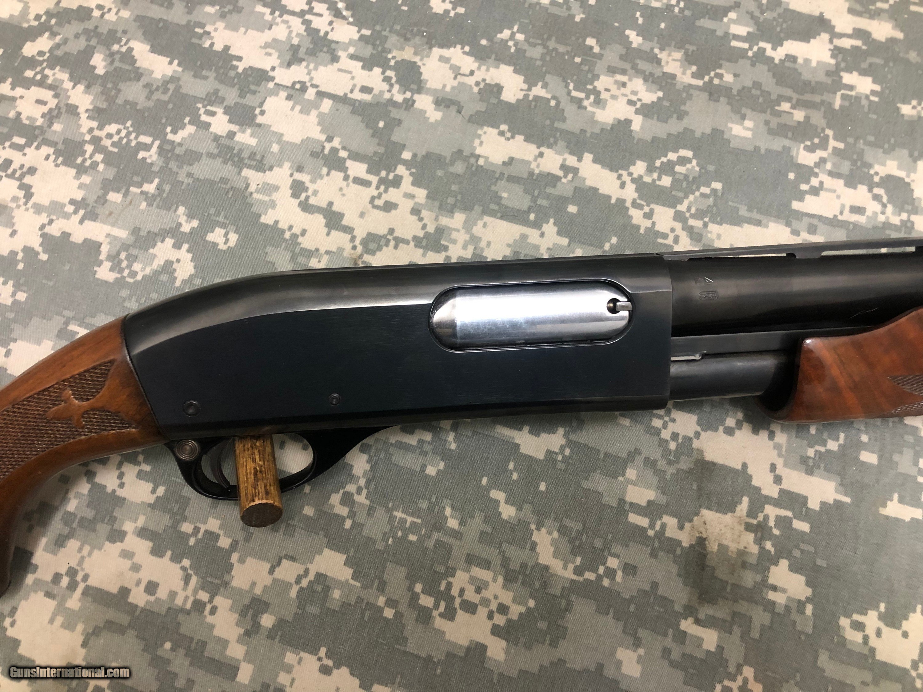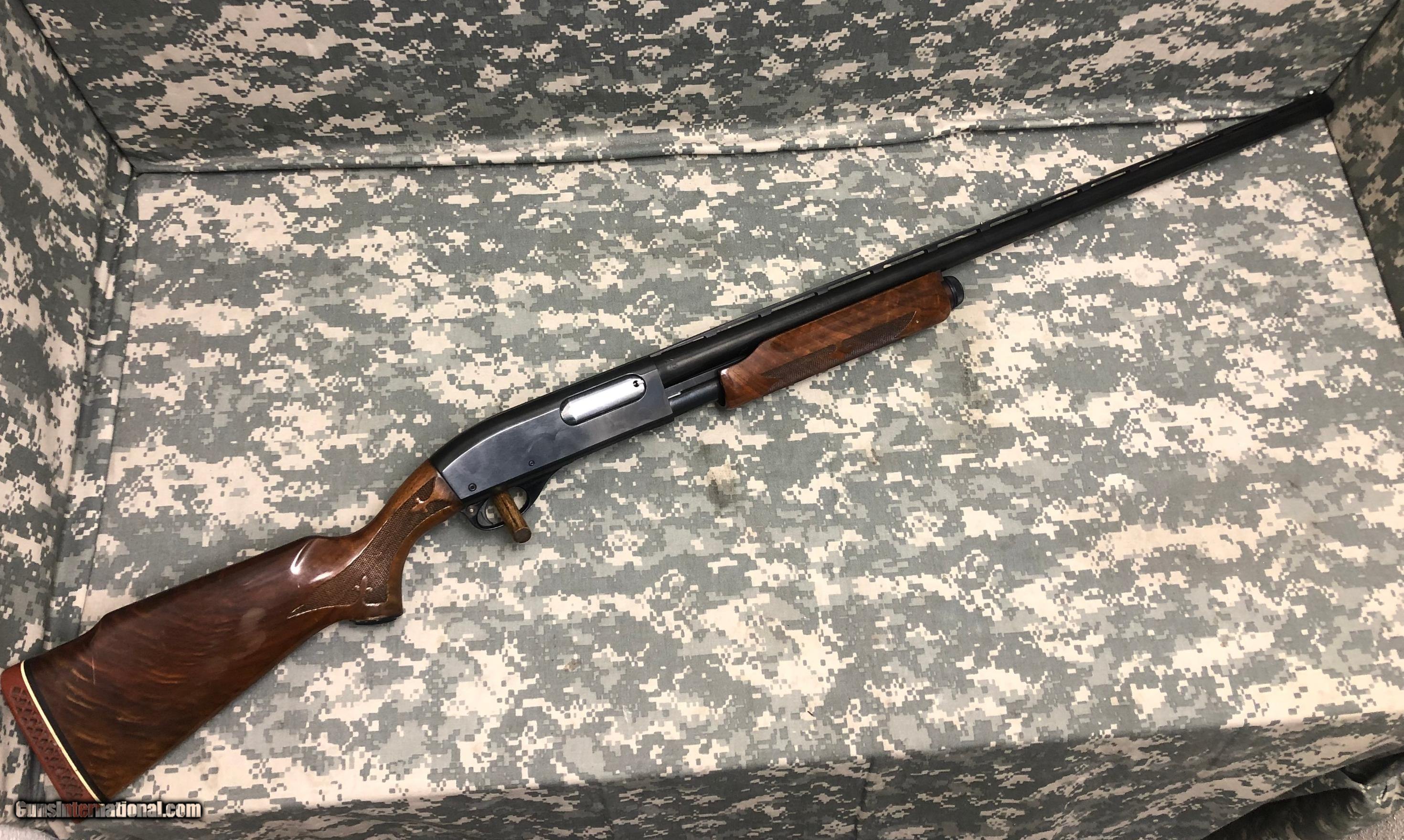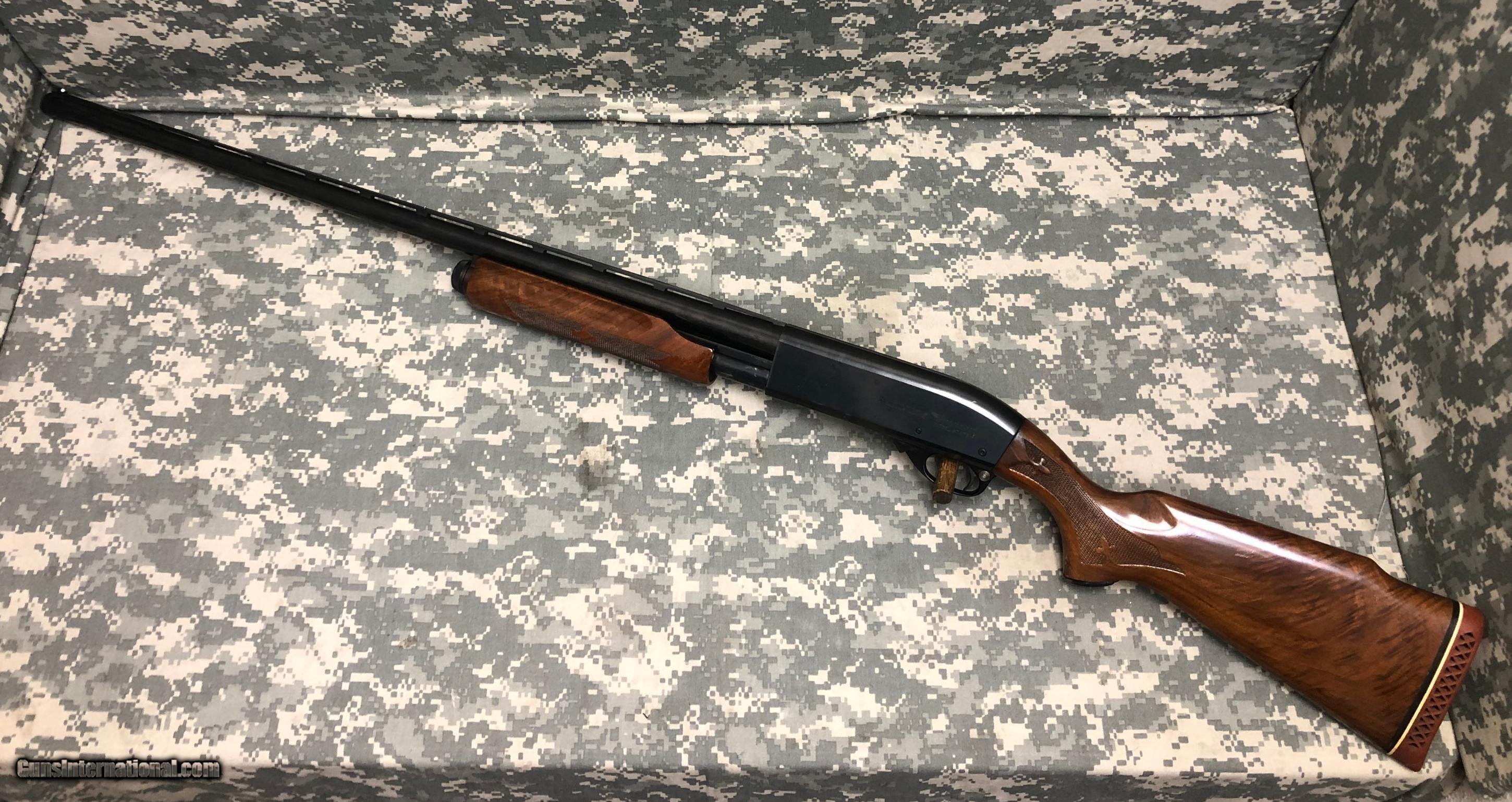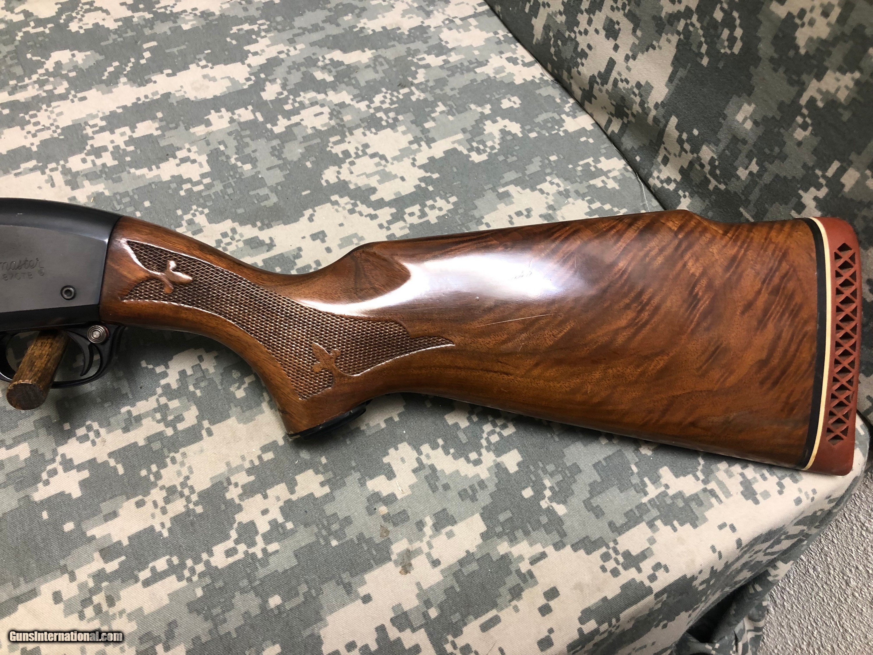 Description: Remington Wingmaster model 870TB pump action 12 gauge. The TB suffix on the model number indicates Trap model with “B” grade wood (offered in grades A, B and C, with being the best. Accepts 2-3/4” shells only. Overall condition is 85%. The wood is beautifully figured and its condition is 85% with a few dings and scratches on the forearm and butt stock, a moderately deep ding on the grip, one small nick on the right side of the forearm and the finish is pealing a bit at the grip cap. The metal condition is also 85% with action wear on the magazine tube, and a few dings on the side of the vent rib. Full choke, 30” barrel. Ventilated rib with dual beads a 0.080 silver bead at the midpoint and a 0.140 white bead at the front. Please ZOOM in on the photos for close in detail. Price reflects a cash-discount. For credit card purchases add 3% for loss of that discount. Our Standard shipping is $50; add $20 for a second-hand plastic case; add $20 for Insurance. SOLD Manufacturer: Remington Model: 870TB Serial Number: T281521V Barrel Length: 30 Chambers: 2-3/4 Condition: 85% Metal Condition: 85% Wood Condition: 85% Bore Condition: Bright and Shiny Action: Pump |