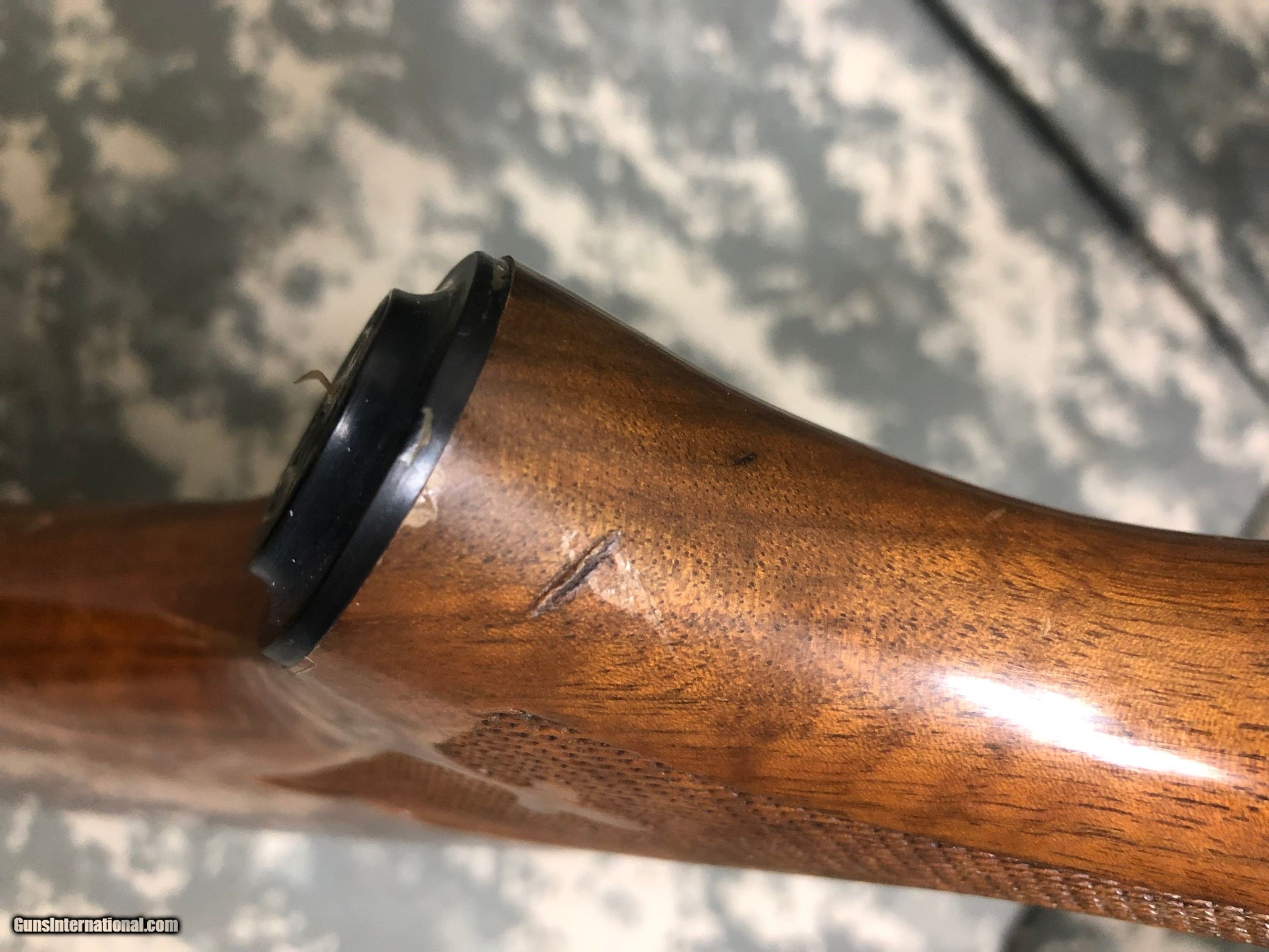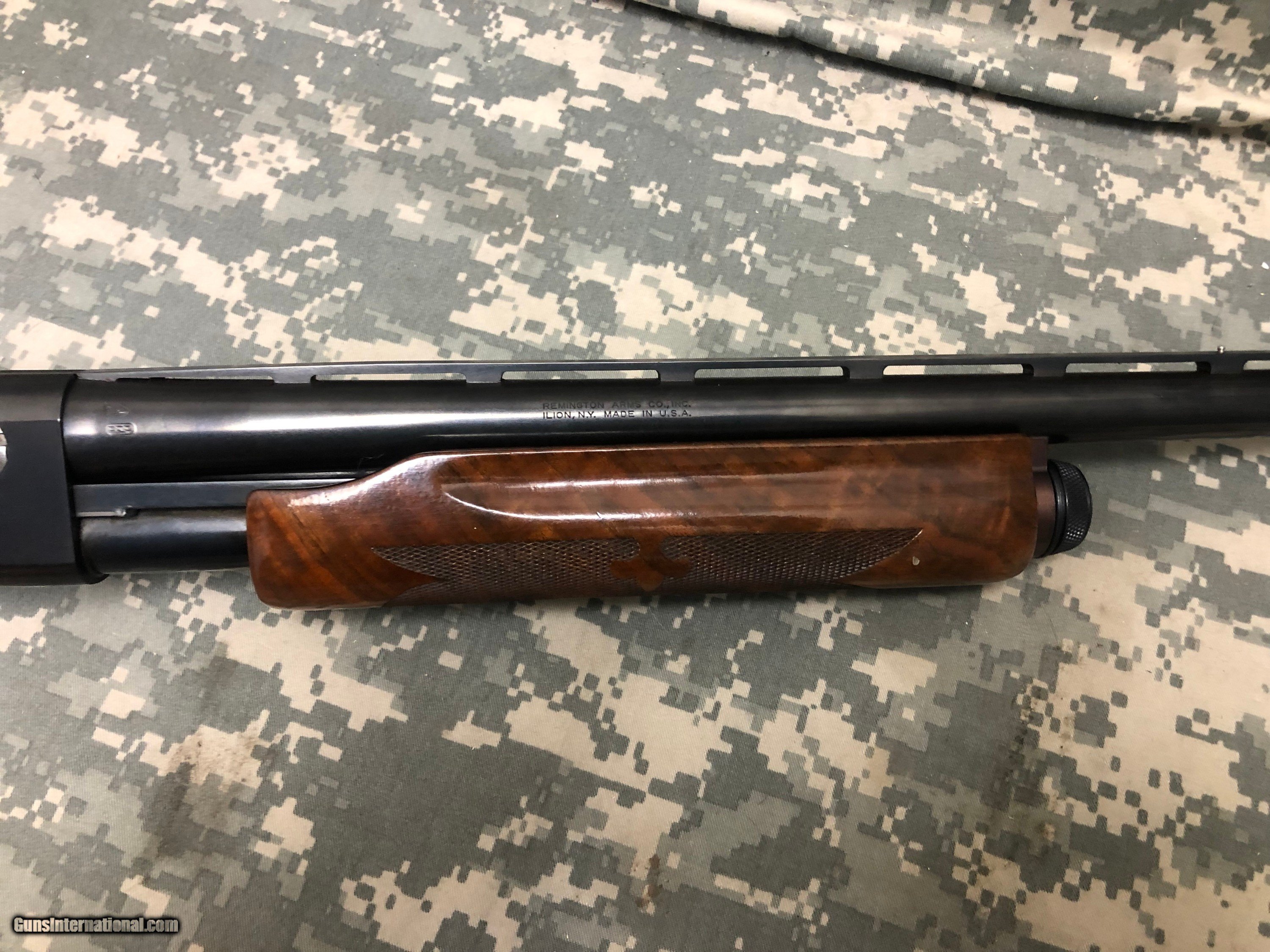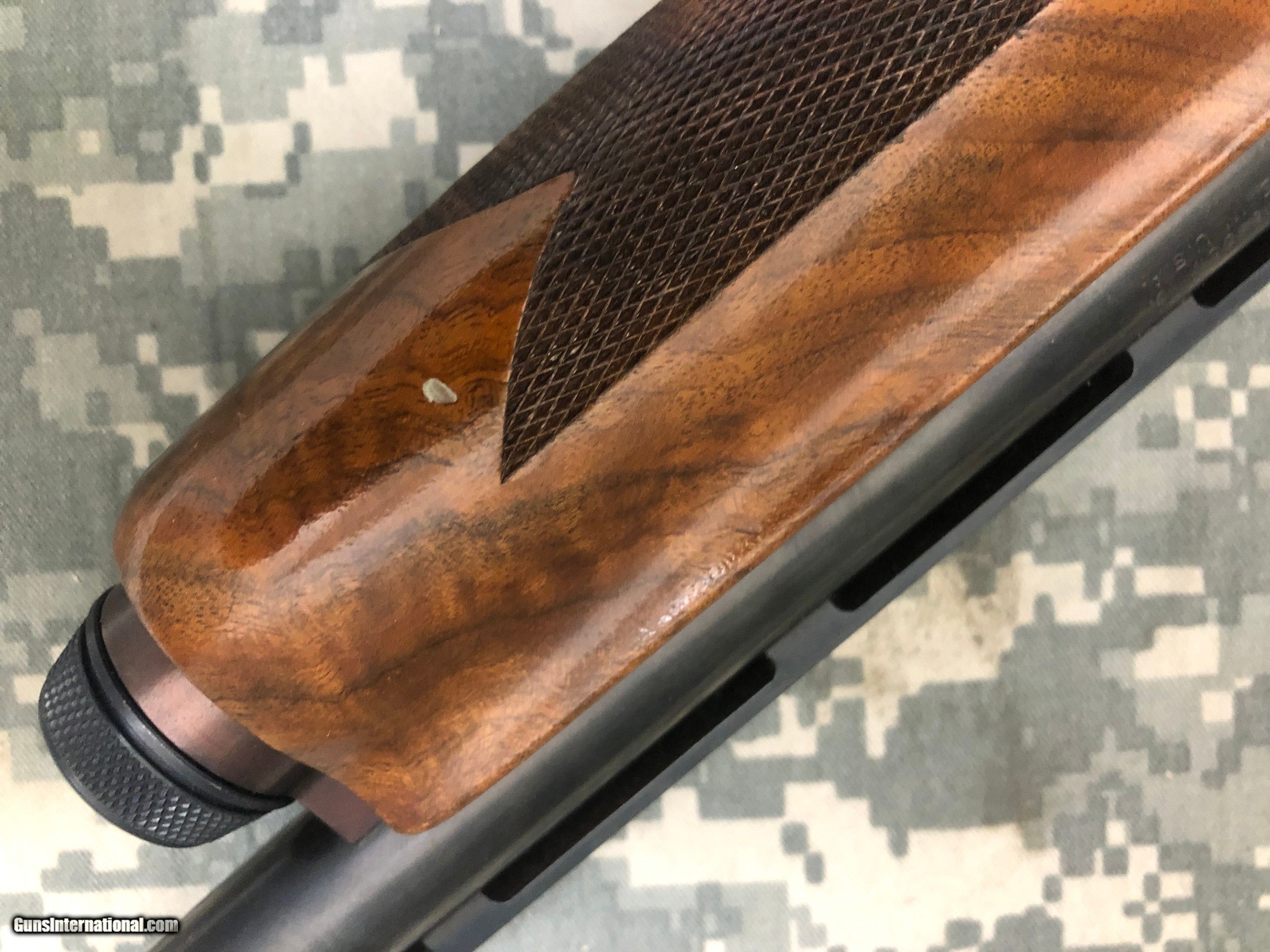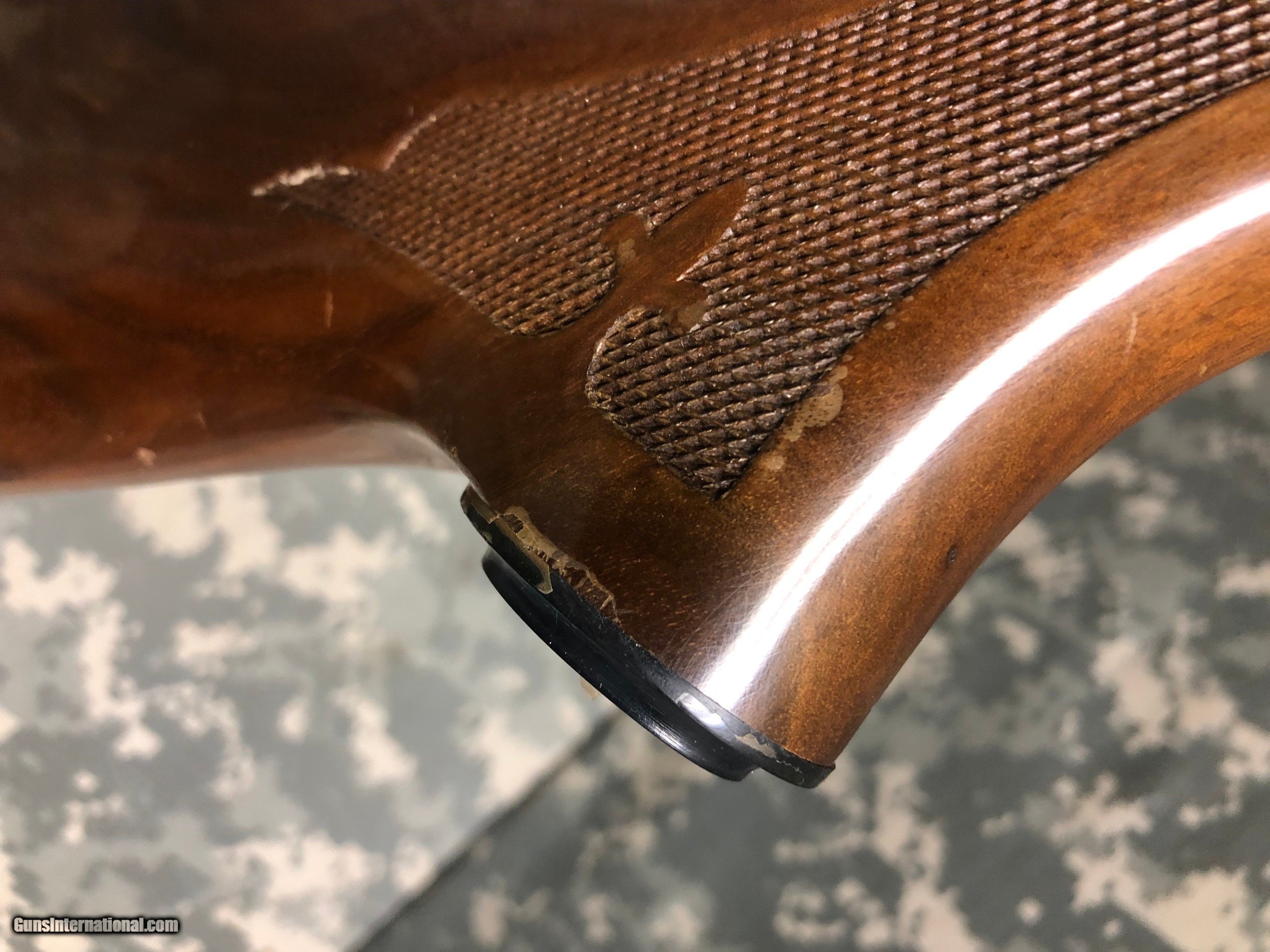 Description: Remington Wingmaster model 870TB pump action 12 gauge. The TB suffix on the model number indicates Trap model with “B” grade wood (offered in grades A, B and C, with being the best. Accepts 2-3/4” shells only. Overall condition is 85%. The wood is beautifully figured and its condition is 85% with a few dings and scratches on the forearm and butt stock, a moderately deep ding on the grip, one small nick on the right side of the forearm and the finish is pealing a bit at the grip cap. The metal condition is also 85% with action wear on the magazine tube, and a few dings on the side of the vent rib. Full choke, 30” barrel. Ventilated rib with dual beads a 0.080 silver bead at the midpoint and a 0.140 white bead at the front. Please ZOOM in on the photos for close in detail. Price reflects a cash-discount. For credit card purchases add 3% for loss of that discount. Our Standard shipping is $50; add $20 for a second-hand plastic case; add $20 for Insurance. SOLD Manufacturer: Remington Model: 870TB Serial Number: T281521V Barrel Length: 30 Chambers: 2-3/4 Condition: 85% Metal Condition: 85% Wood Condition: 85% Bore Condition: Bright and Shiny Action: Pump |