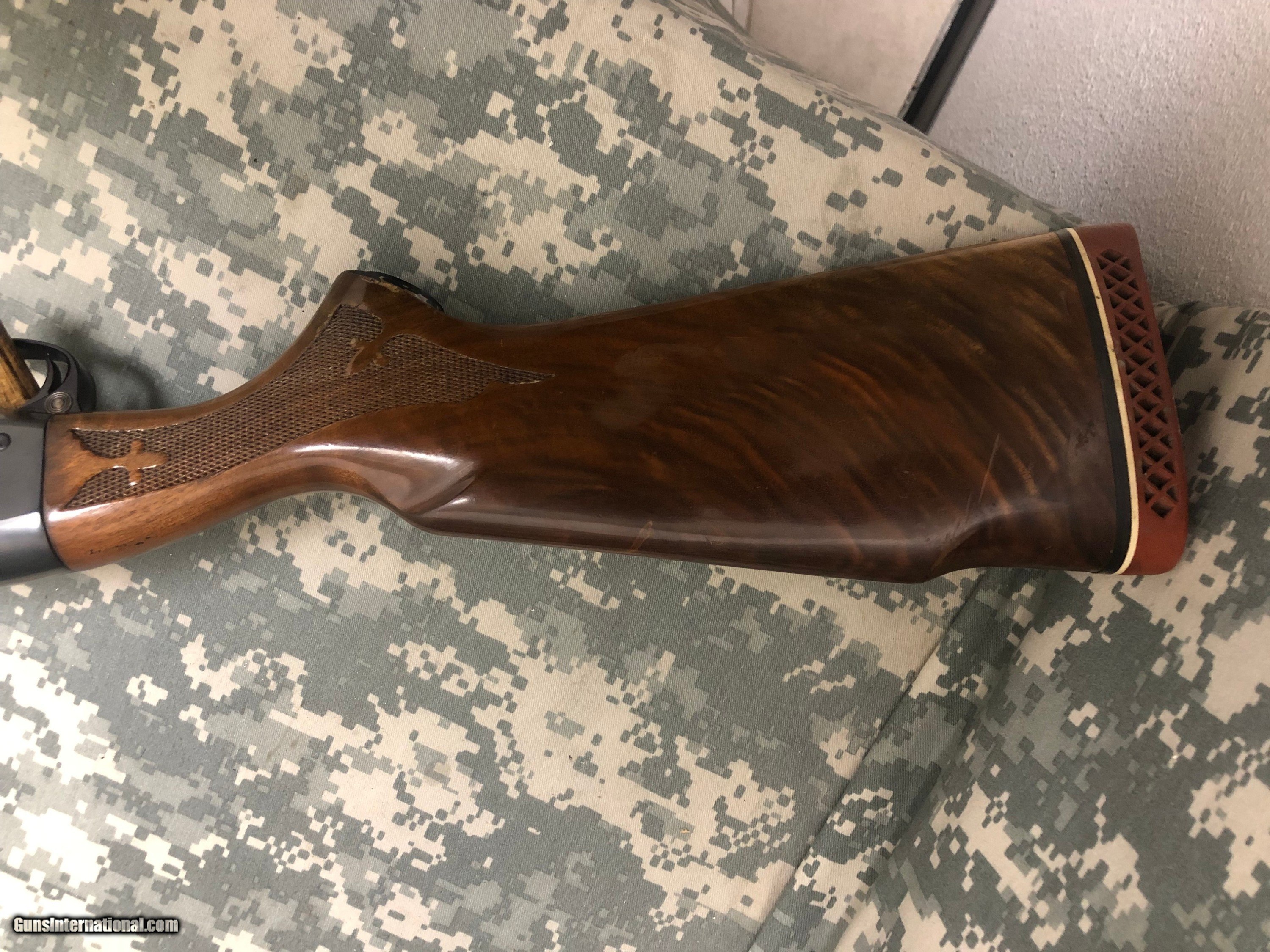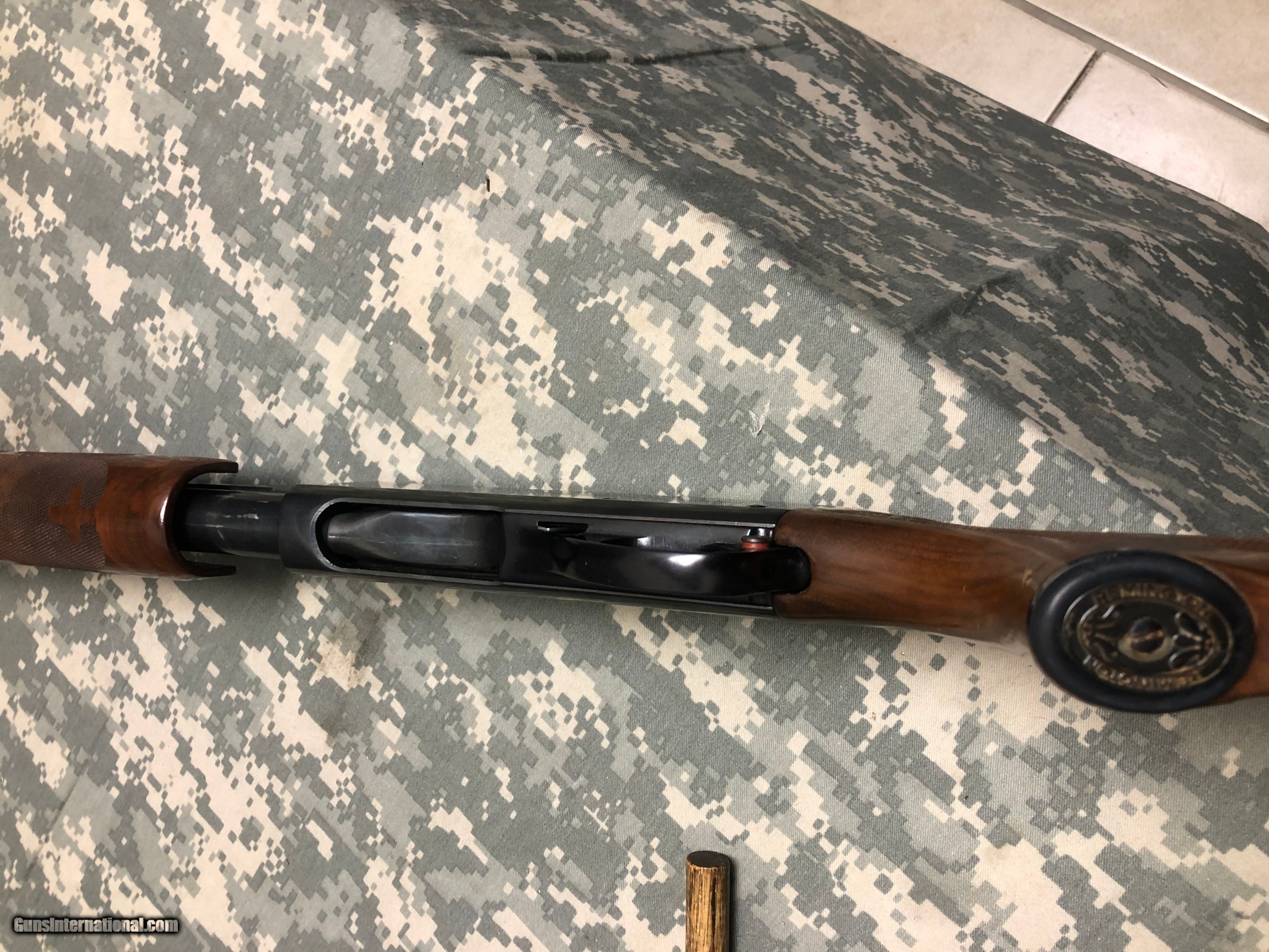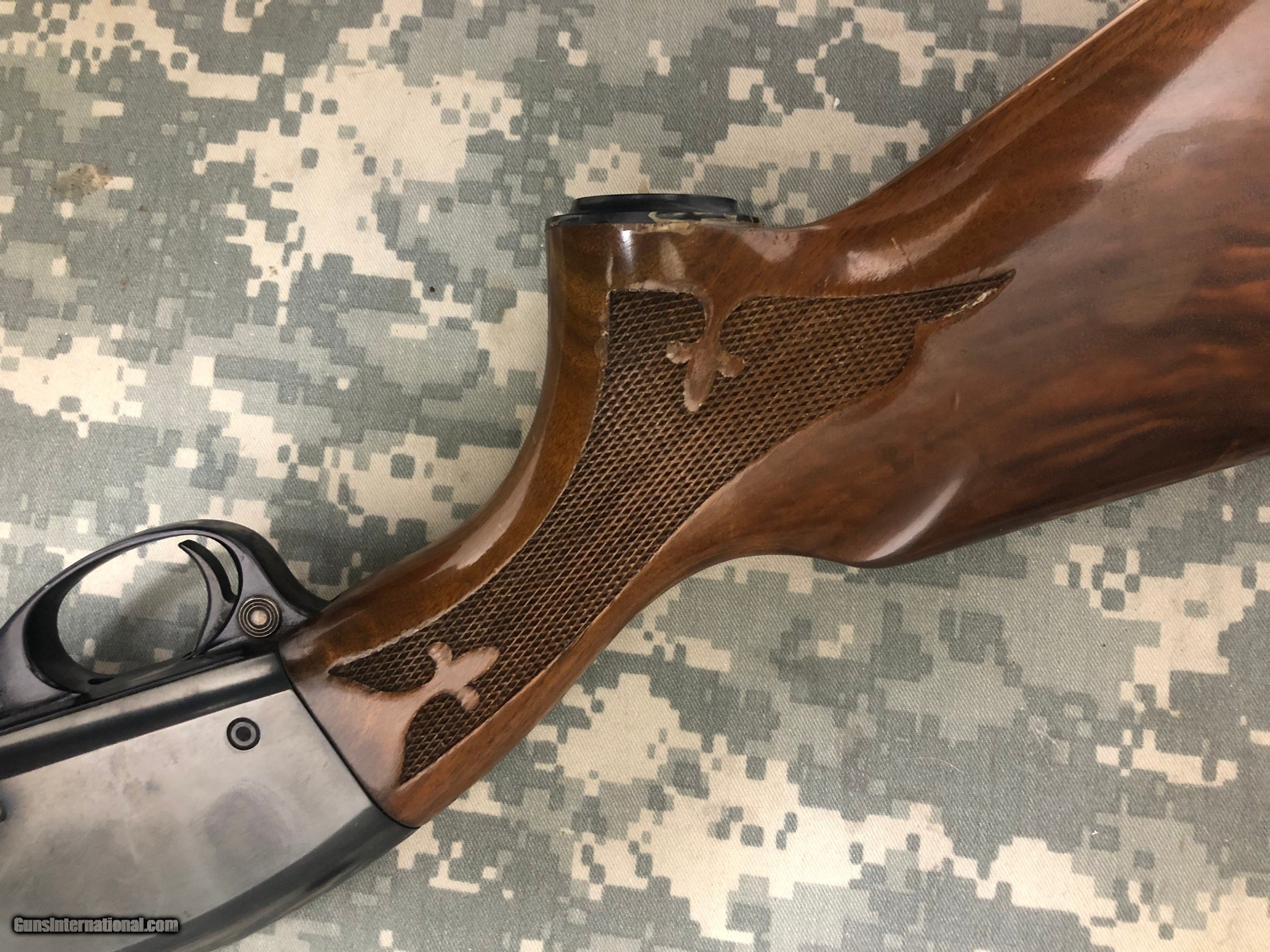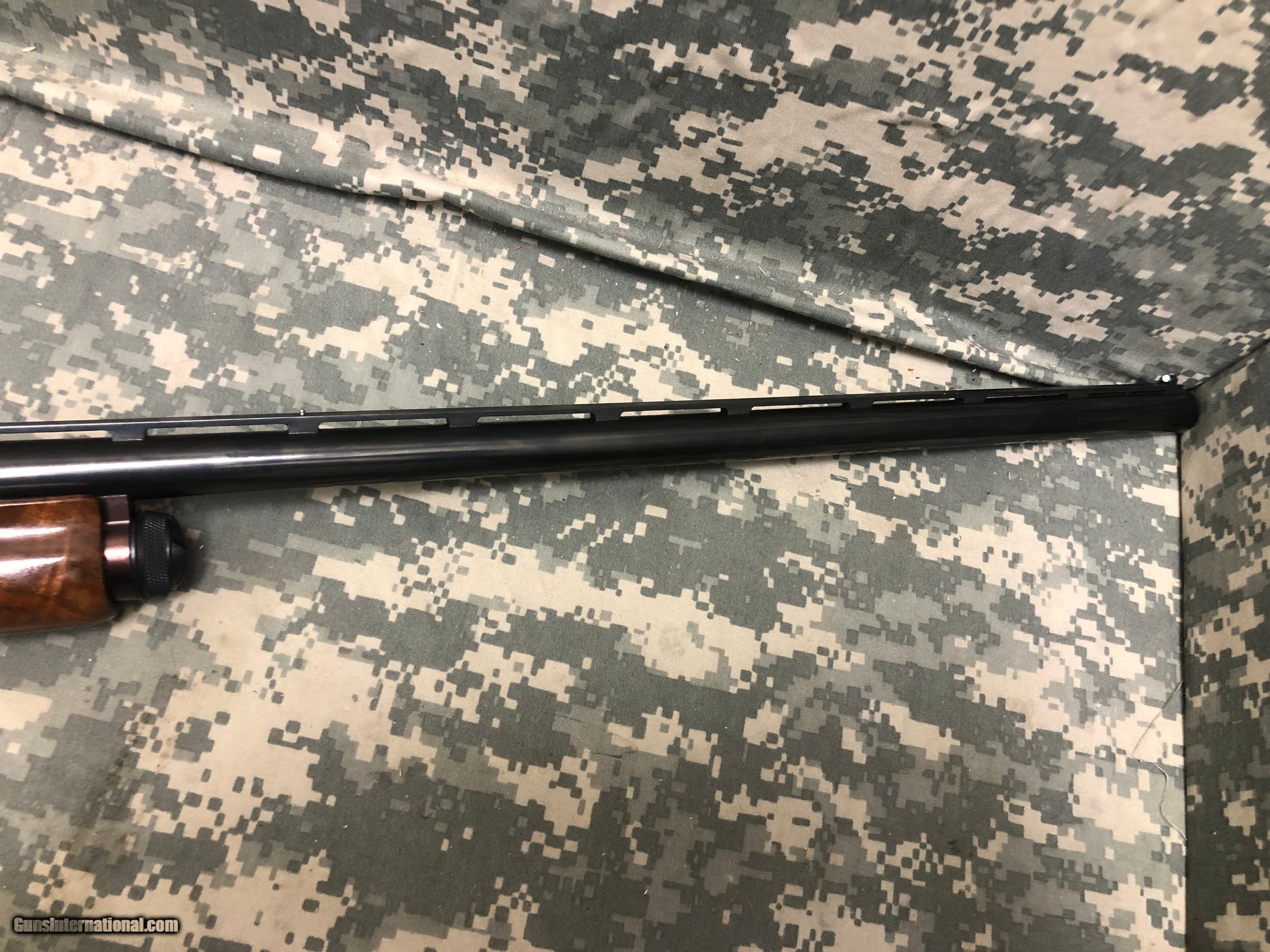 Description: Remington Wingmaster model 870TB pump action 12 gauge. The TB suffix on the model number indicates Trap model with “B” grade wood (offered in grades A, B and C, with being the best. Accepts 2-3/4” shells only. Overall condition is 85%. The wood is beautifully figured and its condition is 85% with a few dings and scratches on the forearm and butt stock, a moderately deep ding on the grip, one small nick on the right side of the forearm and the finish is pealing a bit at the grip cap. The metal condition is also 85% with action wear on the magazine tube, and a few dings on the side of the vent rib. Full choke, 30” barrel. Ventilated rib with dual beads a 0.080 silver bead at the midpoint and a 0.140 white bead at the front. Please ZOOM in on the photos for close in detail. Price reflects a cash-discount. For credit card purchases add 3% for loss of that discount. Our Standard shipping is $50; add $20 for a second-hand plastic case; add $20 for Insurance. SOLD Manufacturer: Remington Model: 870TB Serial Number: T281521V Barrel Length: 30 Chambers: 2-3/4 Condition: 85% Metal Condition: 85% Wood Condition: 85% Bore Condition: Bright and Shiny Action: Pump |