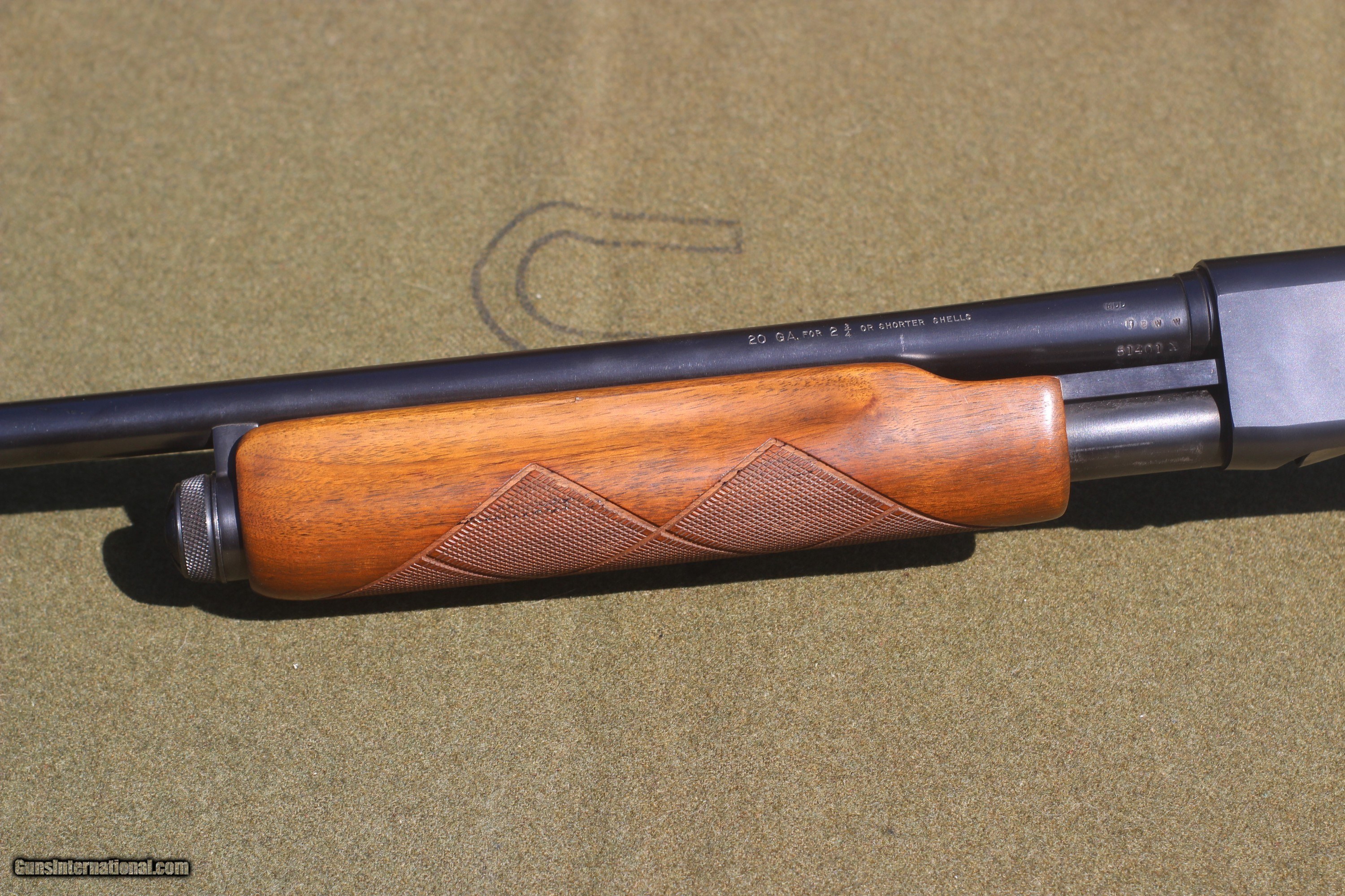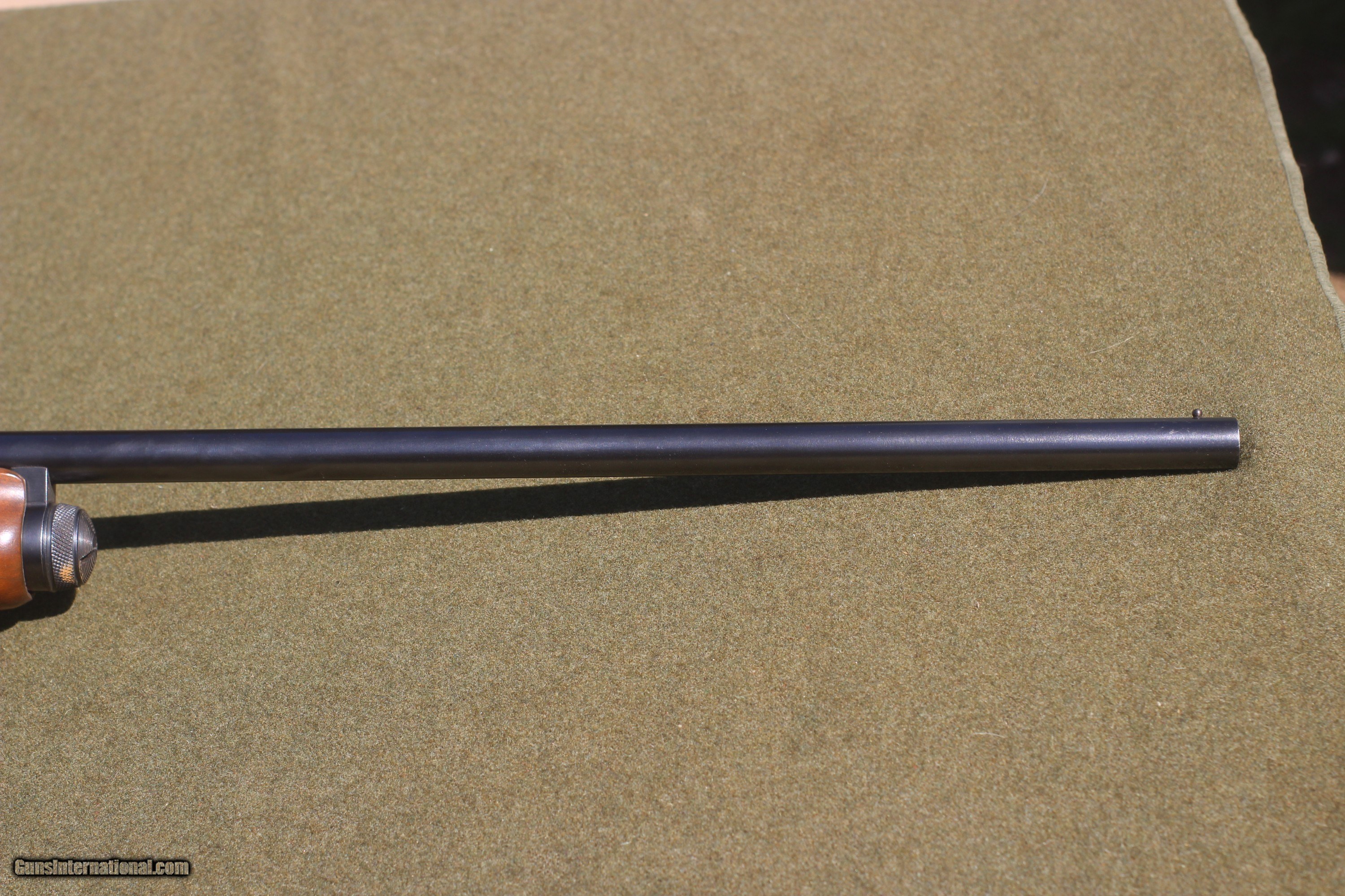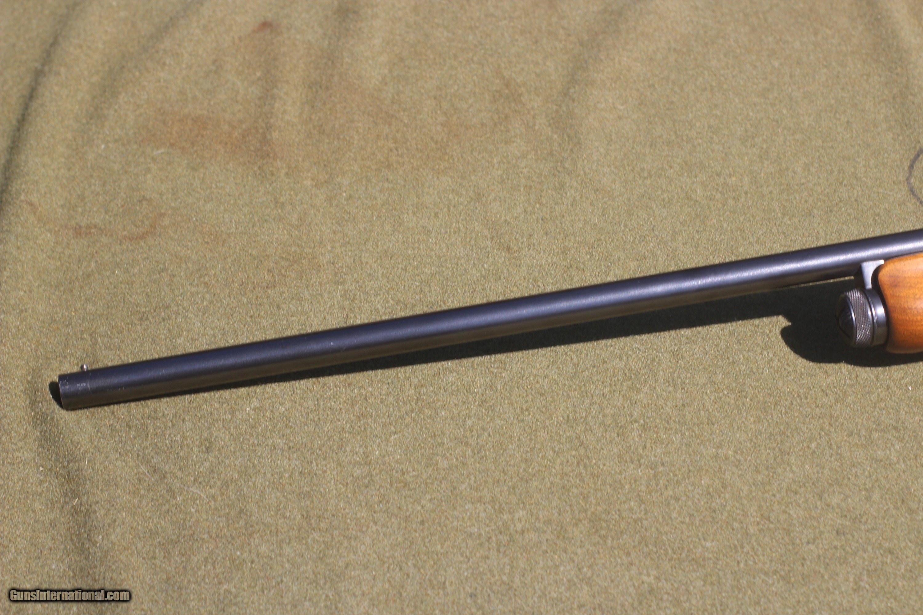Description: Circa 1960's Plain round 28" barrel with fixed , modified choke Original ,early style original bluing at 98% + Slight crazing or checking in stock finish Shortened LOP for 13 1/4" pull Factory butt plate Mechanically excellent condition $ 619 + Shipping SOLD |
