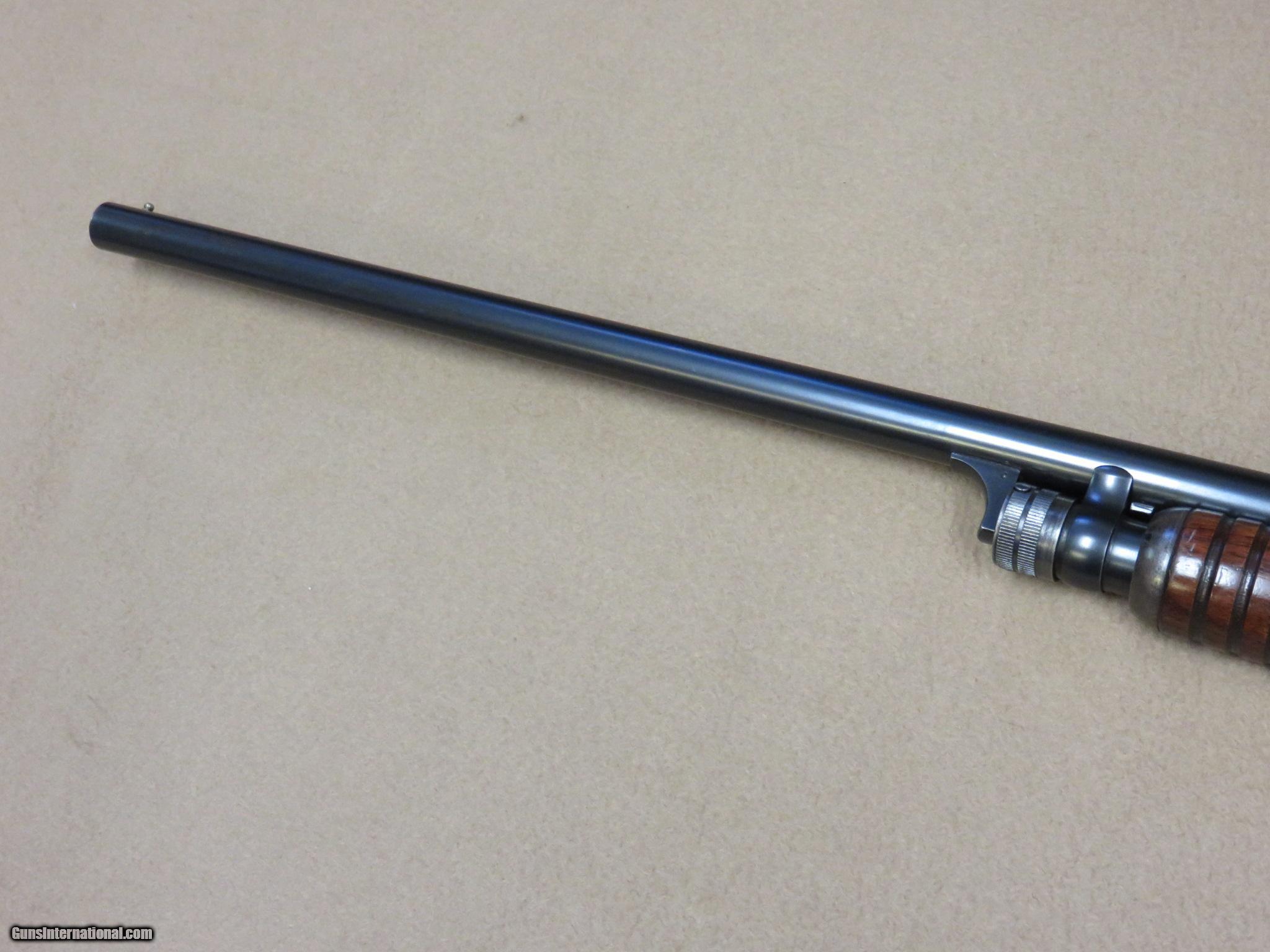 Description: We dont often see Model 17's in this nice condition. They were made from 1917 to 1933. This example was made in 1922. This Remington has a plain 26 inch barrel that is choked modified. The condition is very good with over 90% of the original blue finish remaining and a bright, perfect bore. The Walnut stock set is in excellent condition with a 13 1/2 inch length of pull over a 1/2 inch recoil pad. Everything works 100% like it is supossed to. They just do not make shotguns today like these pre-war Remingtons! SOLD Manufacturer: Remington Model: 17A Serial Number: BO14791 Gauge Info: 20 Gauge |
