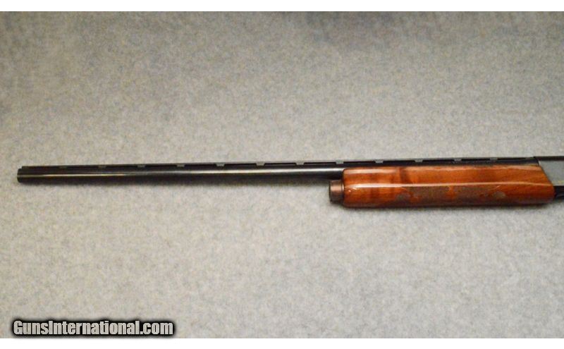 Description: This is a very nice Remington 1100 in 12 Gauge. Overall condition is very good to excellent. This nice shotgun features a 30” vent rib barrel, polished blue with a bright bore with fixed full choke. The metal is very nice with only minor handling marks. The walnut stock is excellent and has very minor scratches and dings, some of the varnish is starting to bubble on the right side of the stock. This is a Ducks Unlimited shotgun but unfortunately the DU medallion has fallen off and the previous owner has lost it. The only way you can tell it is a Ducks Unlimited shotgun is by the serial number. On the receiver there is some scroll work with gold inlay, on the left side there is just a little of the gold that has come off. SOLD Caliber Info: 12 Gauge. Chambers: 2 3/4" semi-auto. Metal Condition: Very minor surface scratches and some of the gold inlay is missing. Wood Condition: Very minor surface scratches and dings. Bore Condition: Bright and shiny. Barrels: 30" blued with a vent rib. Triggers: Factory blued. Stock: Walnut with a checkered pistol grip. Stock Dimensions: 14 1/2" LOP. Fore End: Matching checkered walnut with finger grooves. Butt Pad: Pachmayr black rubber. Weight: 8 Lbs. 5 Ozs. Sights: Vent rib with a brass front bead. Chokes: Fixed with a full choke. Item Location: Huntsville, AL |