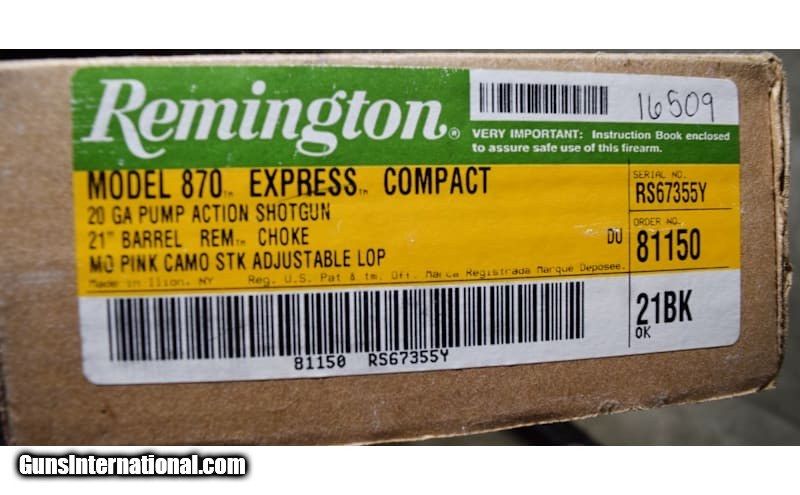 Description: Remington model 870 Express Compact is a pump action shotgun chambered in 20 gauge that can hold 3 rounds in excellent condition. The Remington has a 21" barrel and overall length of 40.5" and comes with the Original manufacture box. ORDER ONLINE option now available by visiting BASSPRO and search for "USED GUNS" to utilize the ORDER ONLINE feature, or you can call our store at (586) 273-5100. 20 Gauge Metal Condition: Excellent Bore Condition: Excellent Barrels: 21 Stock Dimensions: 12.5 Weight: 6 lbs Chokes: Rem Choke Item Location: Chesterfield, MI Price: $499.99 Contact Seller |