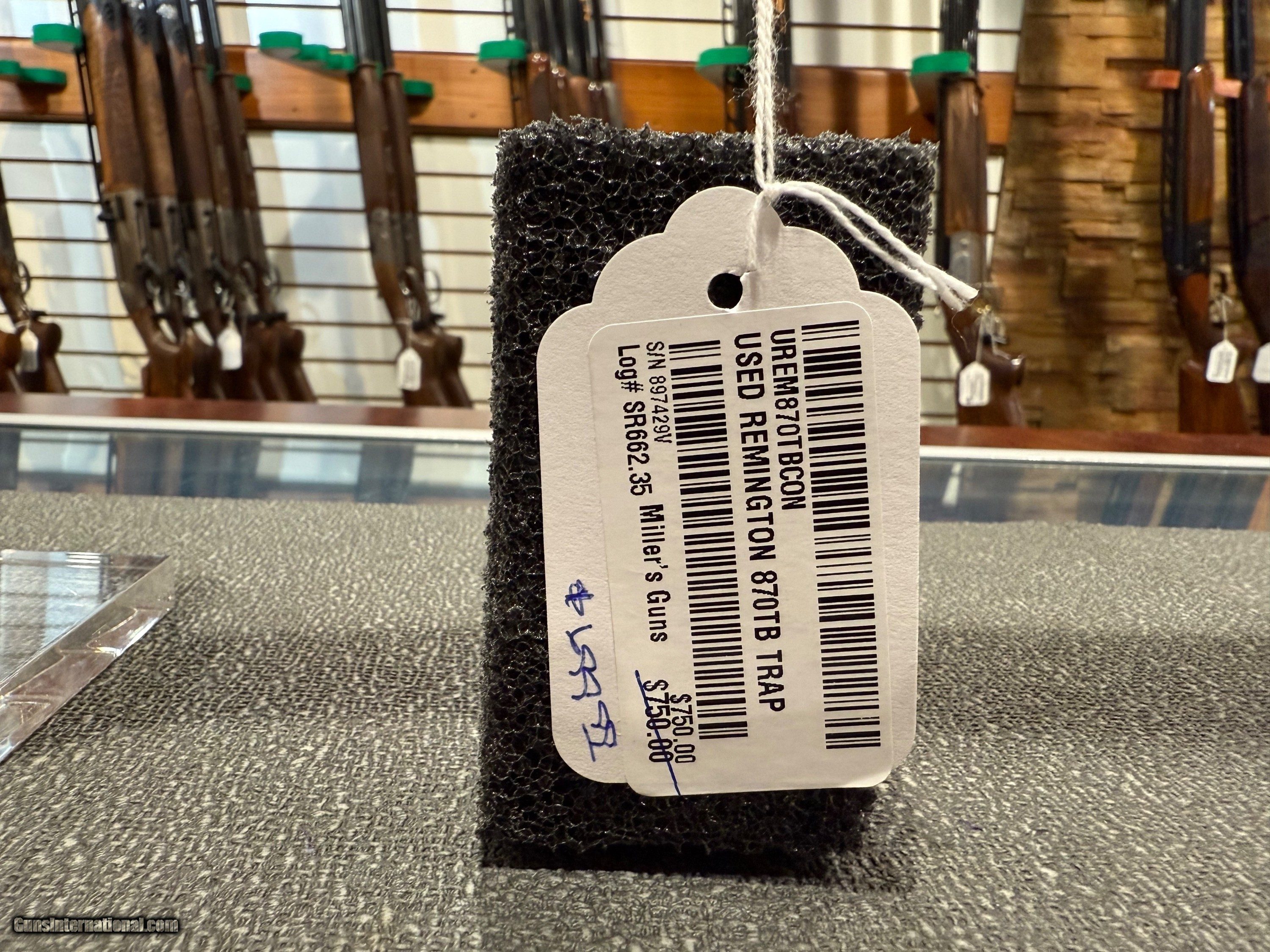 Description: USED Remington 870 TB Trap 12ga Pump action 30" barrel MOD choked Shotgun Gauge: 12 Gauge Manufacturer: Remington Model: 870 TB Trap Serial Number: 897429V Barrel Length: 30 Condition: GOOD Price: $699.99 Contact Seller |