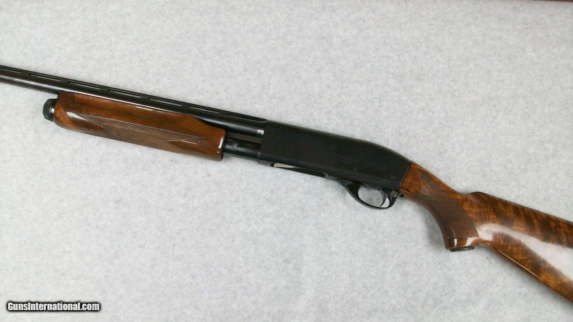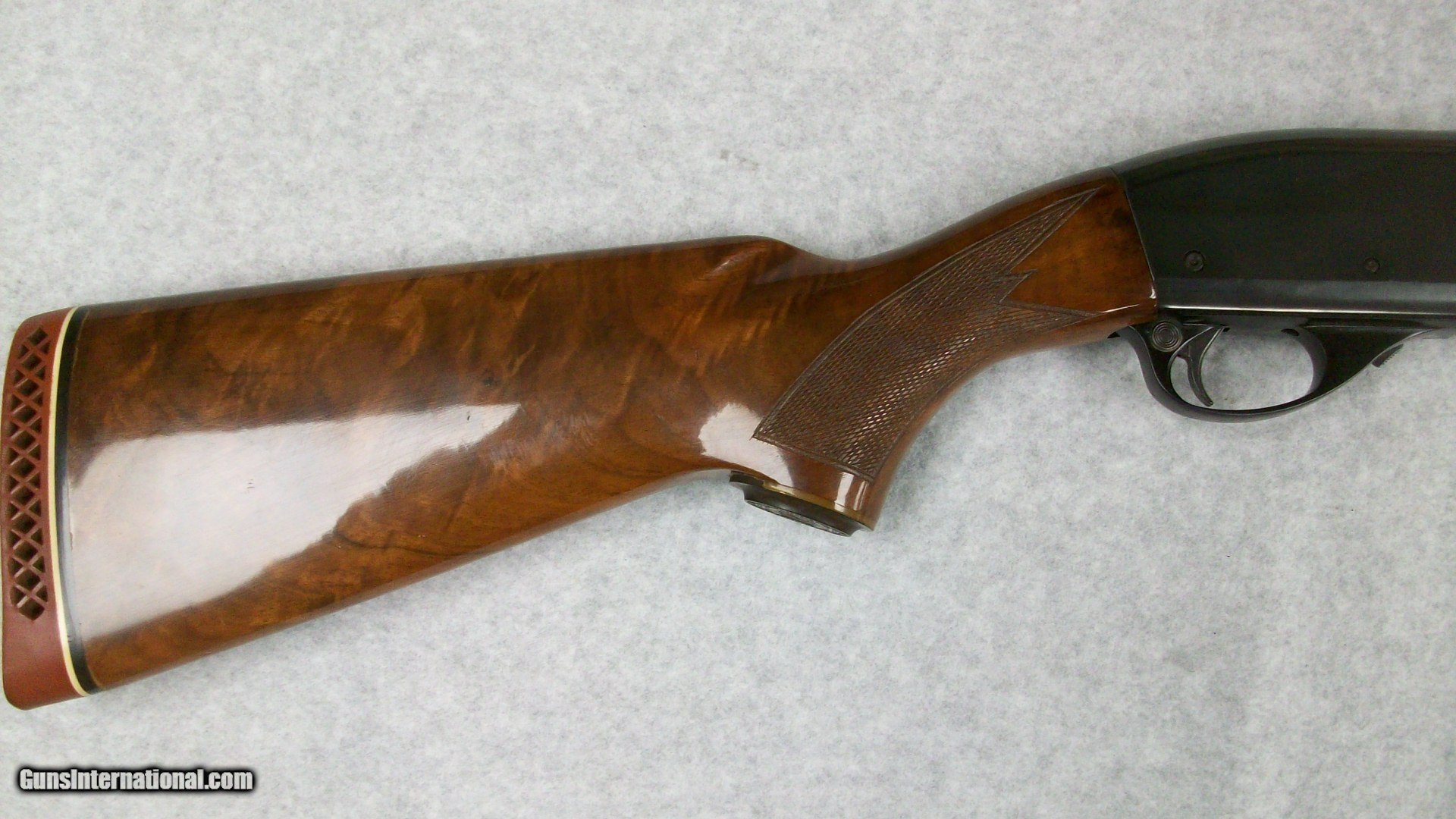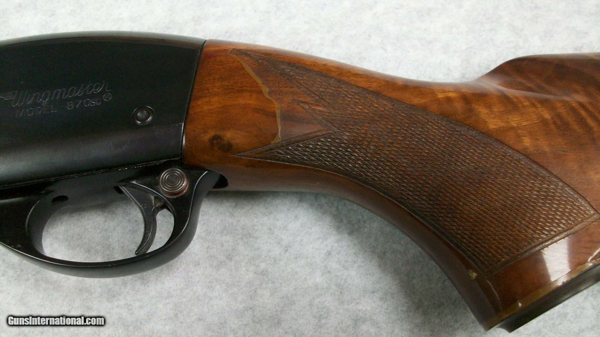 Description: Excellent Remington 870 Skeet C Grade 20 Ga. fixed Skeet choke 25" barrel. C grade highly figured walnut, hand checkered stock and forend featuring the original Remington pad. All original with no extra holes anywhere, does have a HiViz sight installed. No cracks but does have scattered handling/usage marks, all are minor considering it is over 50 yrs. old, please examine pictures. $45 Shipping SOLD Shotgun Gauge: 20 Gauge |