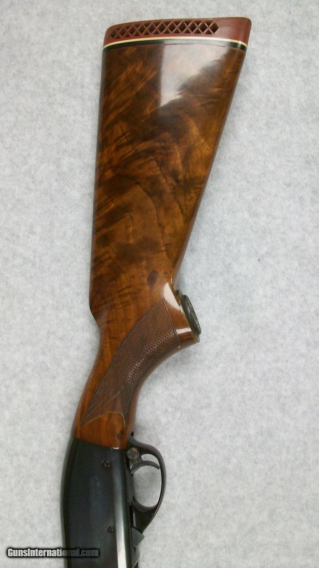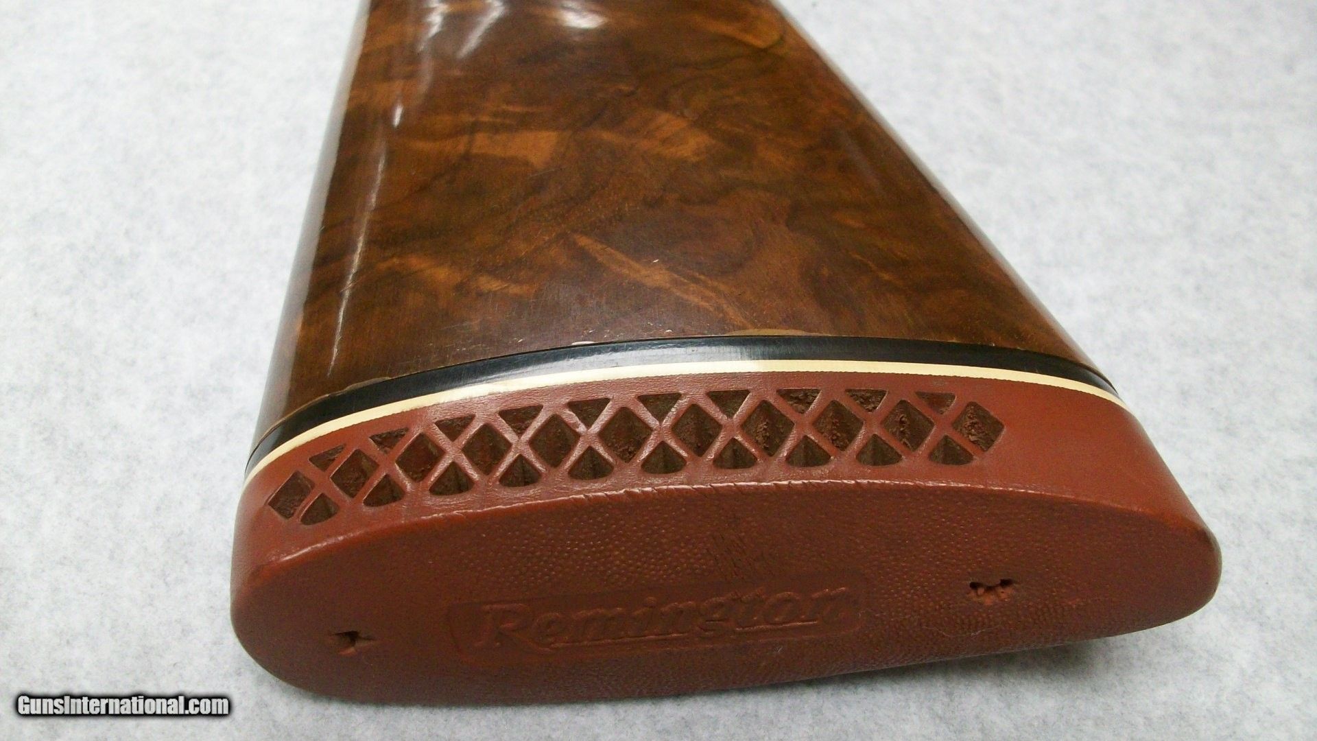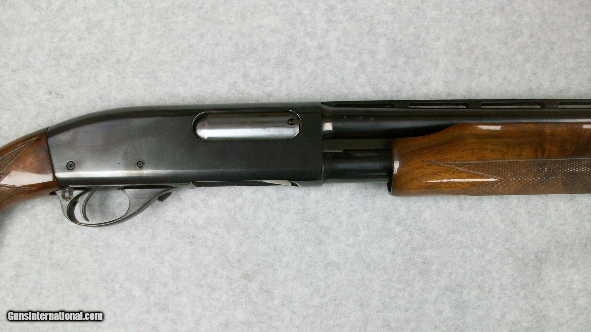 Description: Excellent Remington 870 Skeet C Grade 20 Ga. fixed Skeet choke 25" barrel. C grade highly figured walnut, hand checkered stock and forend featuring the original Remington pad. All original with no extra holes anywhere, does have a HiViz sight installed. No cracks but does have scattered handling/usage marks, all are minor considering it is over 50 yrs. old, please examine pictures. $45 Shipping SOLD Shotgun Gauge: 20 Gauge |