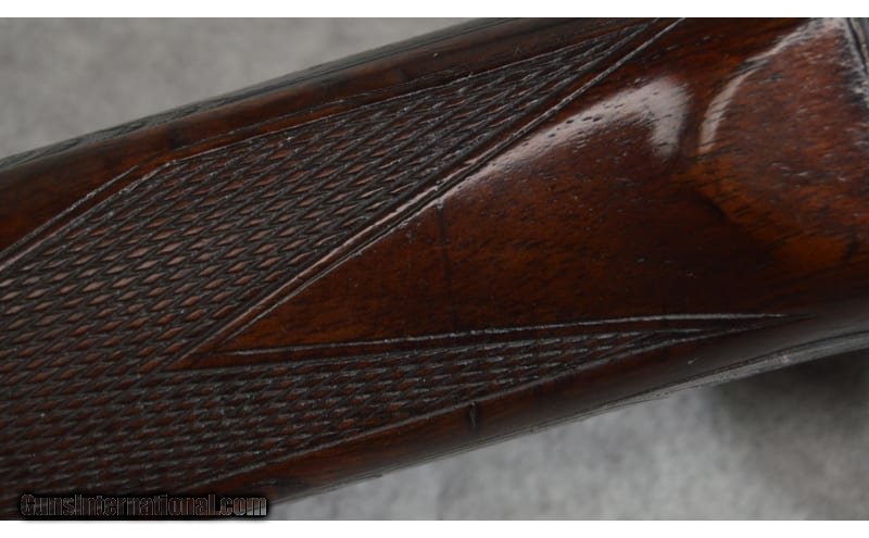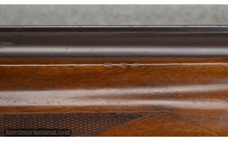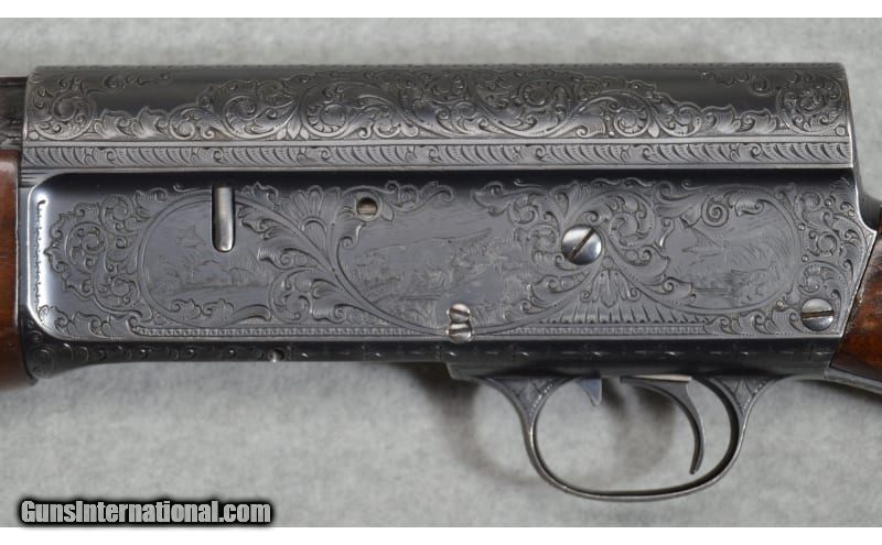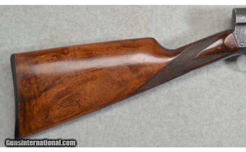 Description: Factory Engraved, Remington Model 11 F-Grade, 12 gauge shotgun. It features a Cutts compensator and elegant engraving on the frame. The Cutts compensator attachment is designed to reduce the recoil and muzzle rise of a firearm. The Left side of the frame has a scroll engraving of two dogs and multiple game birds in a grass scene. The right side of frame has the same scroll engraving and multiple game birds in a grass scene. The bottom has different scroll work and a dogs head on the trigger guard. It retains 90% of its bluing and shows slight handling marks on the barrel, fore end, and stock. SN: 68976 12 Gauge SOLD Metal Condition: Very good condition with handling marks Wood Condition: Very good condition with handling marks Bore Condition: Clean and shiny Barrels: 28 Stock Dimensions: LOP 14 1/2 Fore End: Wooden with a checkered pattern Butt Pad: Remington butt plate Weight: 8lbs 11oz Sights: Single bead Chokes: Improved cylinder Cutts compensator Item Location: Fort Worth, TX |