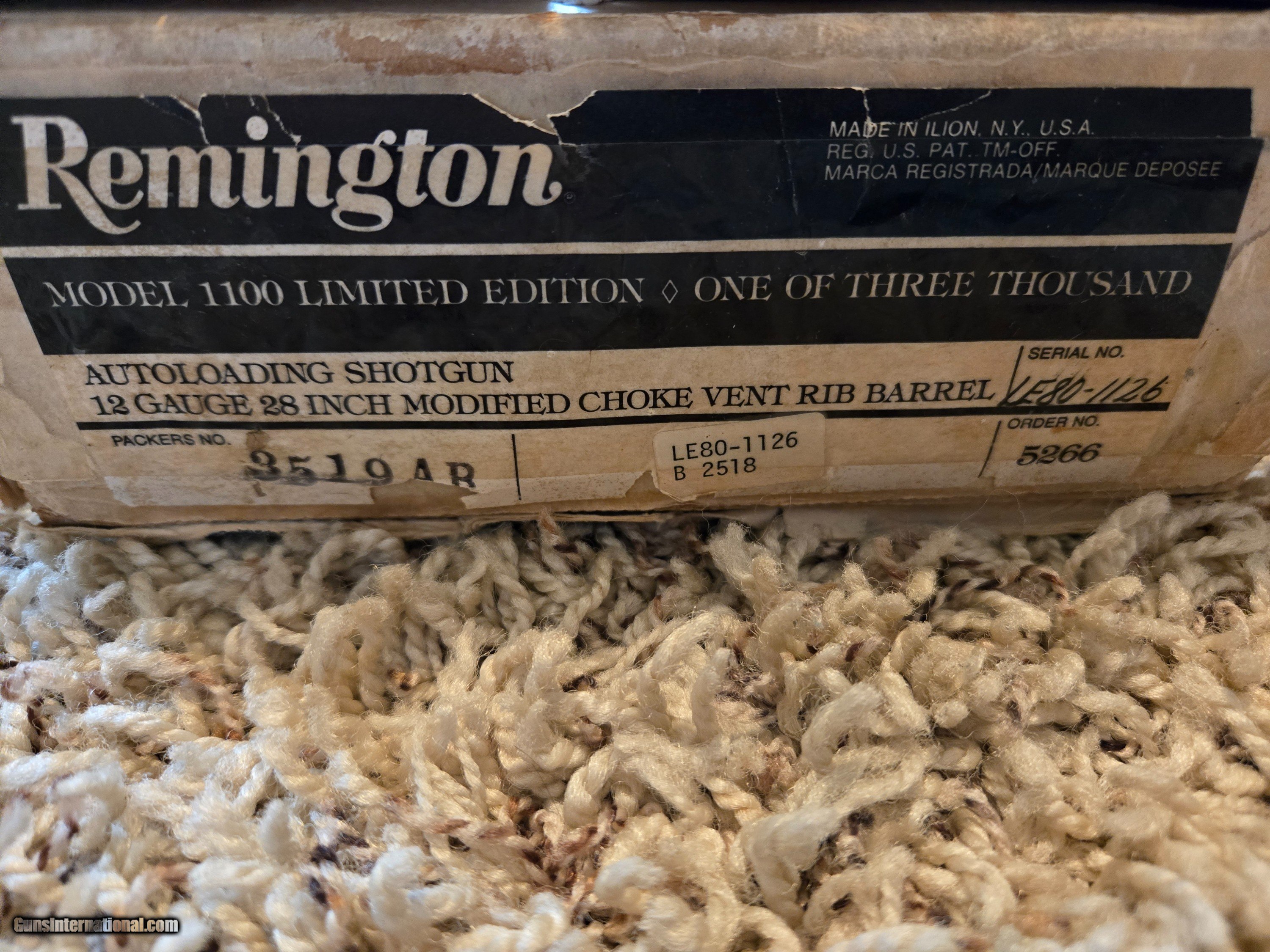 Description: New in box Remington model 1100 Diamond edition one of 3000 Beautiful engraved receiver with gold inlays, Made in 1980 Getting harder to find in this condition. Wood is exceptional. Box sleeve is a little tethered. This would make a great addition to any collection. Free shipping Personal check or USPS MONEY ORDER must ship to FFL Reasonable offers will be considered. SOLD Shotgun Gauge: 12 Gauge Manufacturer: REMINGTON Model: 1100 Condition: Excellent Wood Condition: Excellent Bore Condition: Excellent Rib: Yes Manufacture Date: 1980 Engraving: Yes Item Location: Texas |