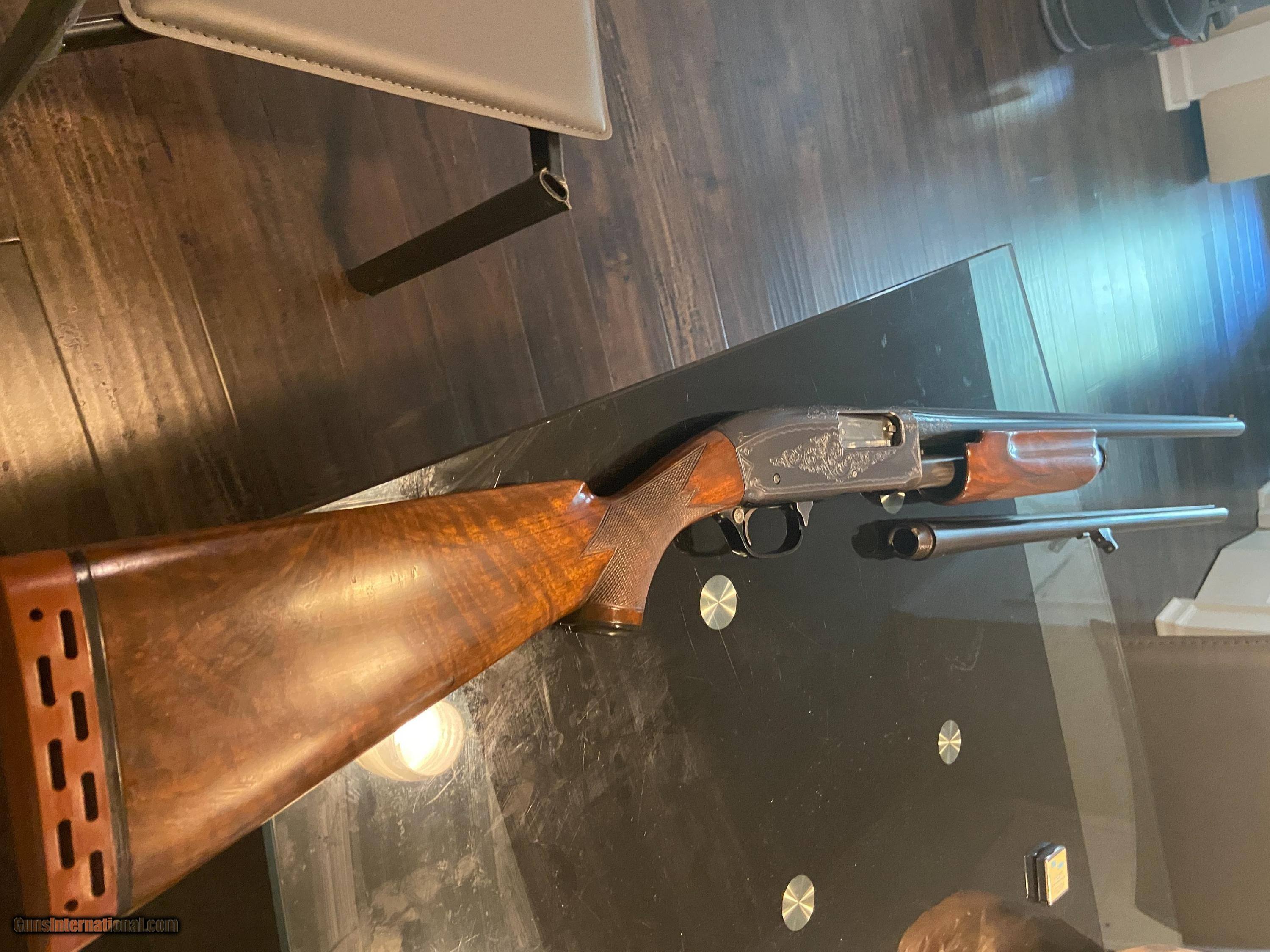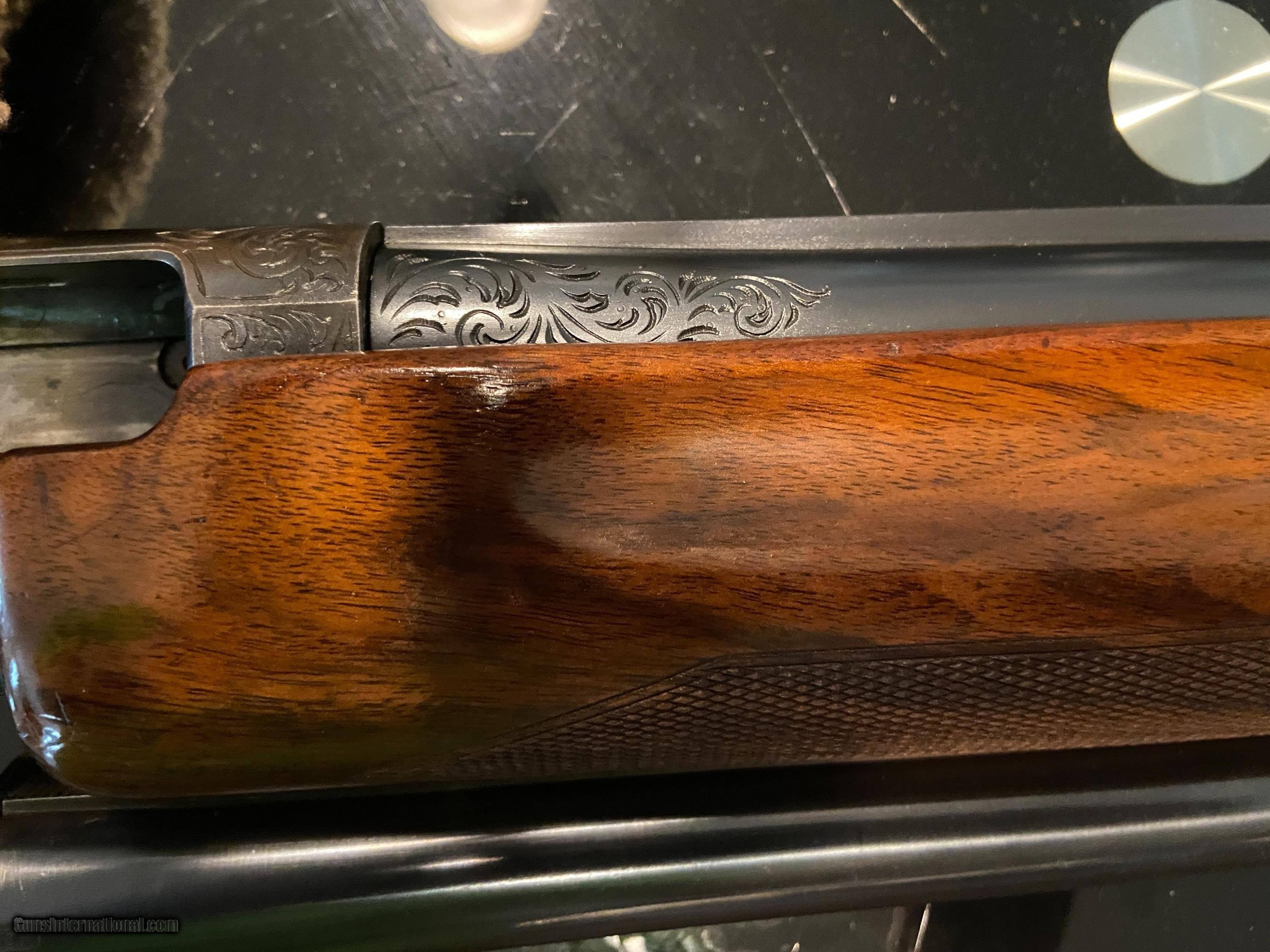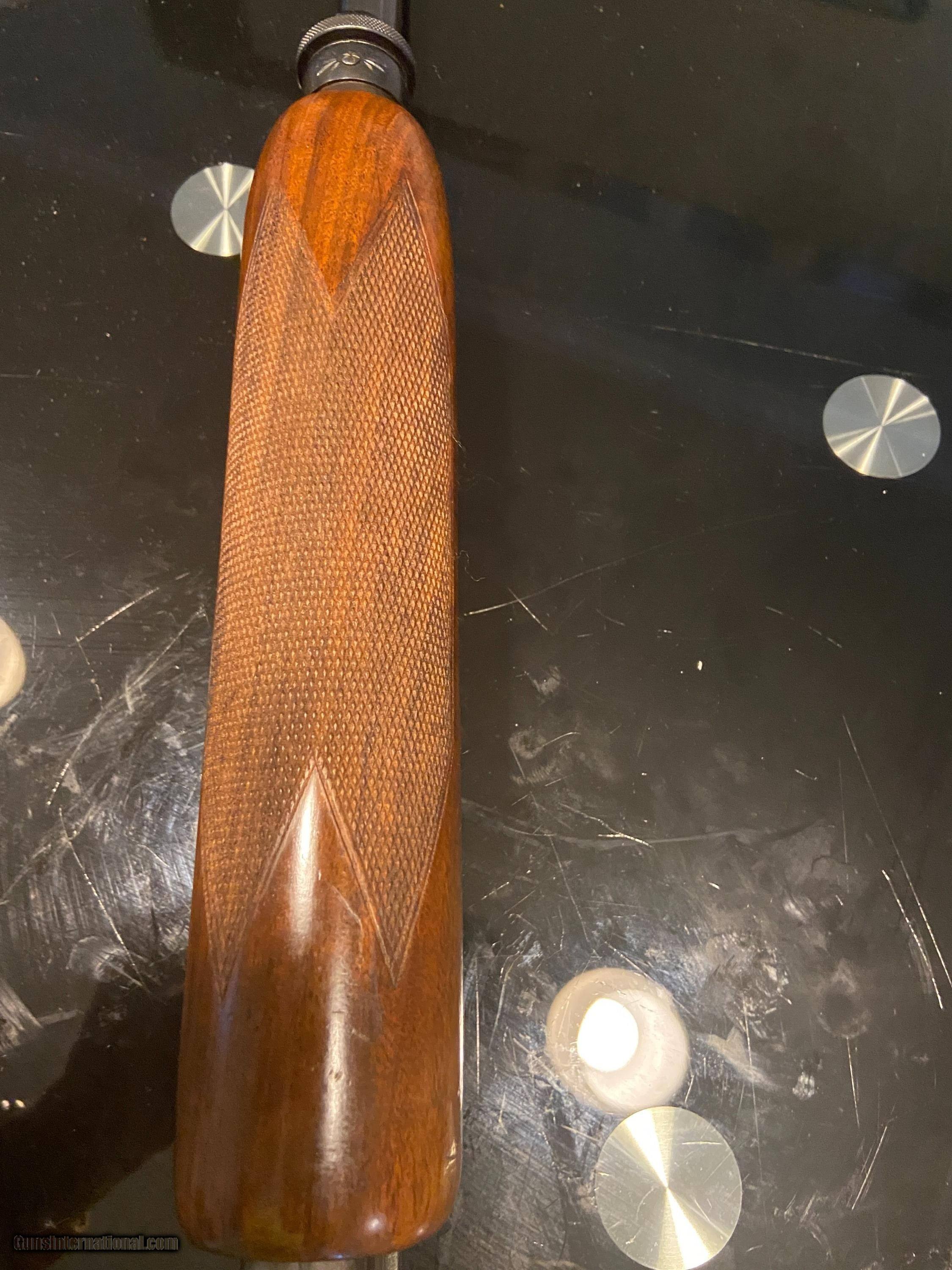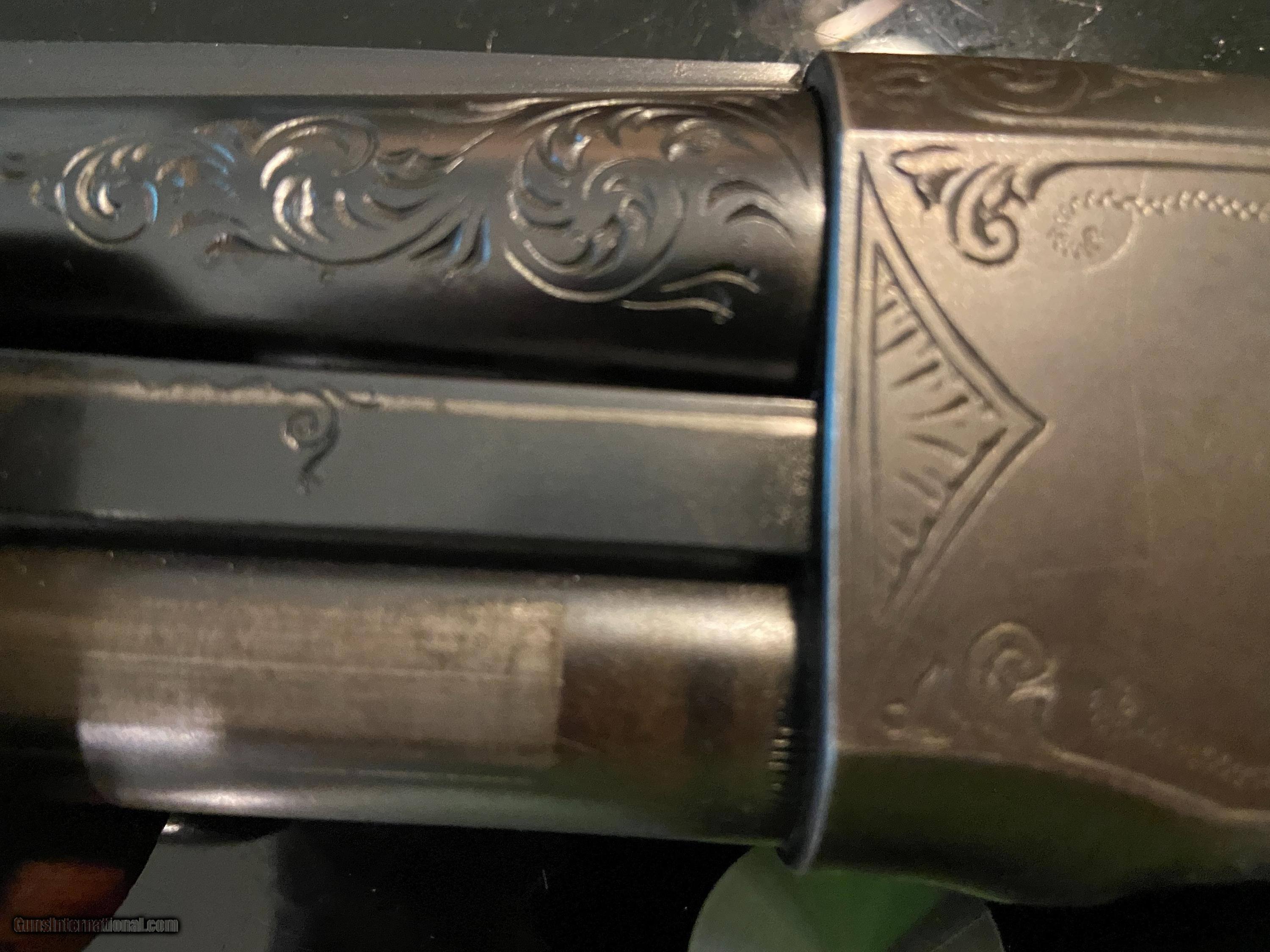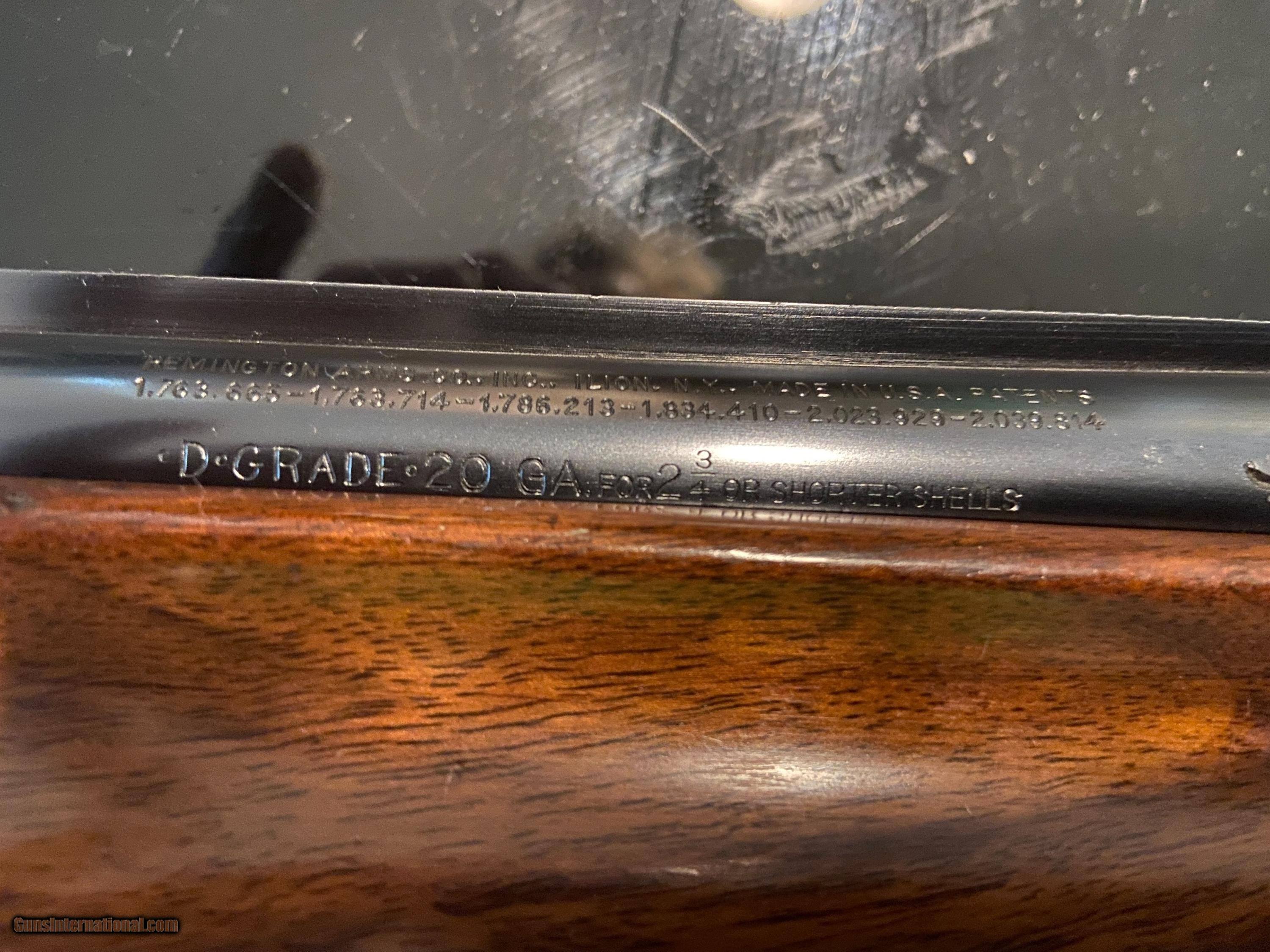 Description: Remington collectors,you are looking at a Authentic Remington D Grade,20 gauge Model 31 built in the 40s.I have only seen 1,this gun!I have seen upgrades and fakes.This is the real deal.The action is famous for being buttery smooth.The engraving from the Custom Shop at Remington oozes with quality and detail,just look at the screws ,action bar and forend.The original 28inch Full choke barrel has a solid rib.It has the wedge engraving and has matching serial # to the receiver and is roll stamped ,D Grade.The second barrel is also 28 inch solid rib,modified choke which is non engraved.The gorgeous Black walnut stock is 14 LOP with perfect checkering and a period recoil pad.It has the beavertail forend for great feel and control.I have shot this gun and it functions flawlessly.What a classic!This gun is 100% original blueing and stock finish.I cannot imagine it being the factory pad since it is 75+ years old.It is Jostam and is period correct and looks amazing.Any questions.704-975-1048.Call with reasonable offers.Thanks.John SOLD Curio/Relic: Yes |
