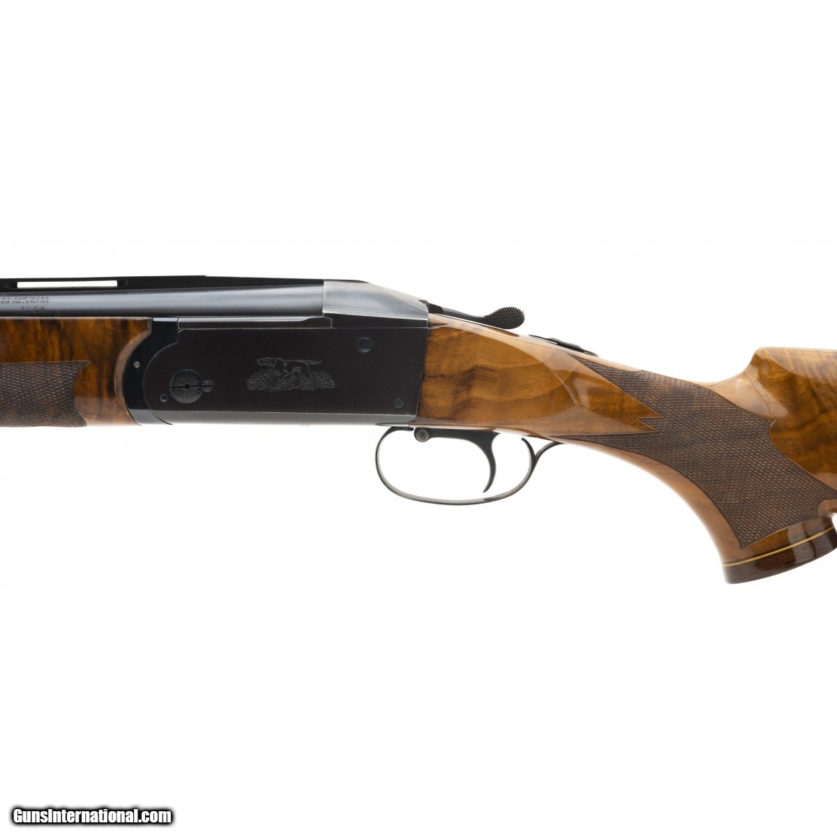 Description: " Pre-war over/under skeet gun made in 1939. Barrels are 26"". Stocks are nicely figured walnut. Length of pull with pad is 14 1/4"". Stock has some minor crazing by pistol grip, otherwise very good overall condition. SOLD |