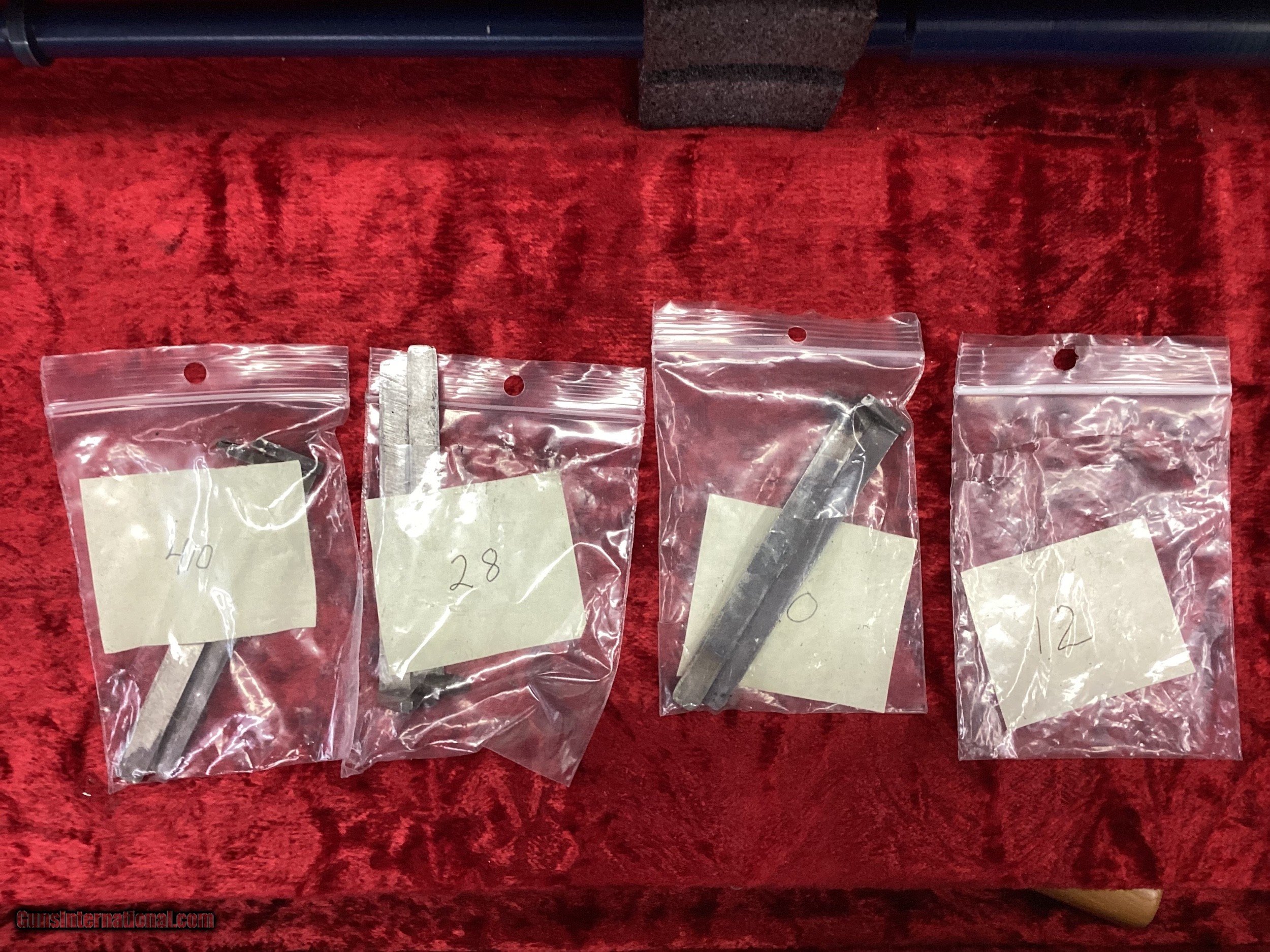 Description: ******************SOLD**********************FOR YOUR VIEWING IS A EXCEPTIONALLY HIGH CONDITION MODEL 3200 REMINGTON COMPETITION SKEET SHOTGUN. IT IS EQUIPED WITH THE RARE 28' BARREL, AND FITTED WITH A FULL SET OF SUB GUAGE TUBES BY SKEETMASTER IN 20,28,410 GUAGE. ALSO INCLUCED ARE ALL THE EJECTORS FOR THE GUAGES, TOOLS TO INSTALL AND REMOVE TUBES. THIS SHOTGUN HAS A EXCEPTIONALY NICE FIGURED WALNUT STOCK AND FOREARM. BLUEING IS EXCELLENT, WITH LIGHT GOLD FILLED ENGRAVING ON SIDES OF THE RECEIVER. THE SAFETY FUNCTIONS AS SAFETY, AND BARREL SELECTOOR. DIMENSIONS ARE 14" LOP OVER THE REMINGTON PAD, 11/2" DAC, 2 1/4" DAH. THE CHECKERING AND FINISH IS EXCELLENT. THE TRAVEL CASE IS A BULLET PROOF CASE MADE BY THE ANVEL CASE CO. OF ROSEMEAD CA. IT IS VELVET LINED AND HOLD THE SHOTGUN AND ALL ACCESSORIES AND SUB-GUAGE TUBES. SHOTGUN IS READY TO HEAD TO THE SKEET FIELD. FACTORY UPDATE WAS PREFORMED ON THIS SHOTGUN NOTE: SHIPPING AND INSURANCE IS EXTRA CALL OR EMAIL FOR MORE INFO ETC. THANKS FOR LOOKING SOLD |