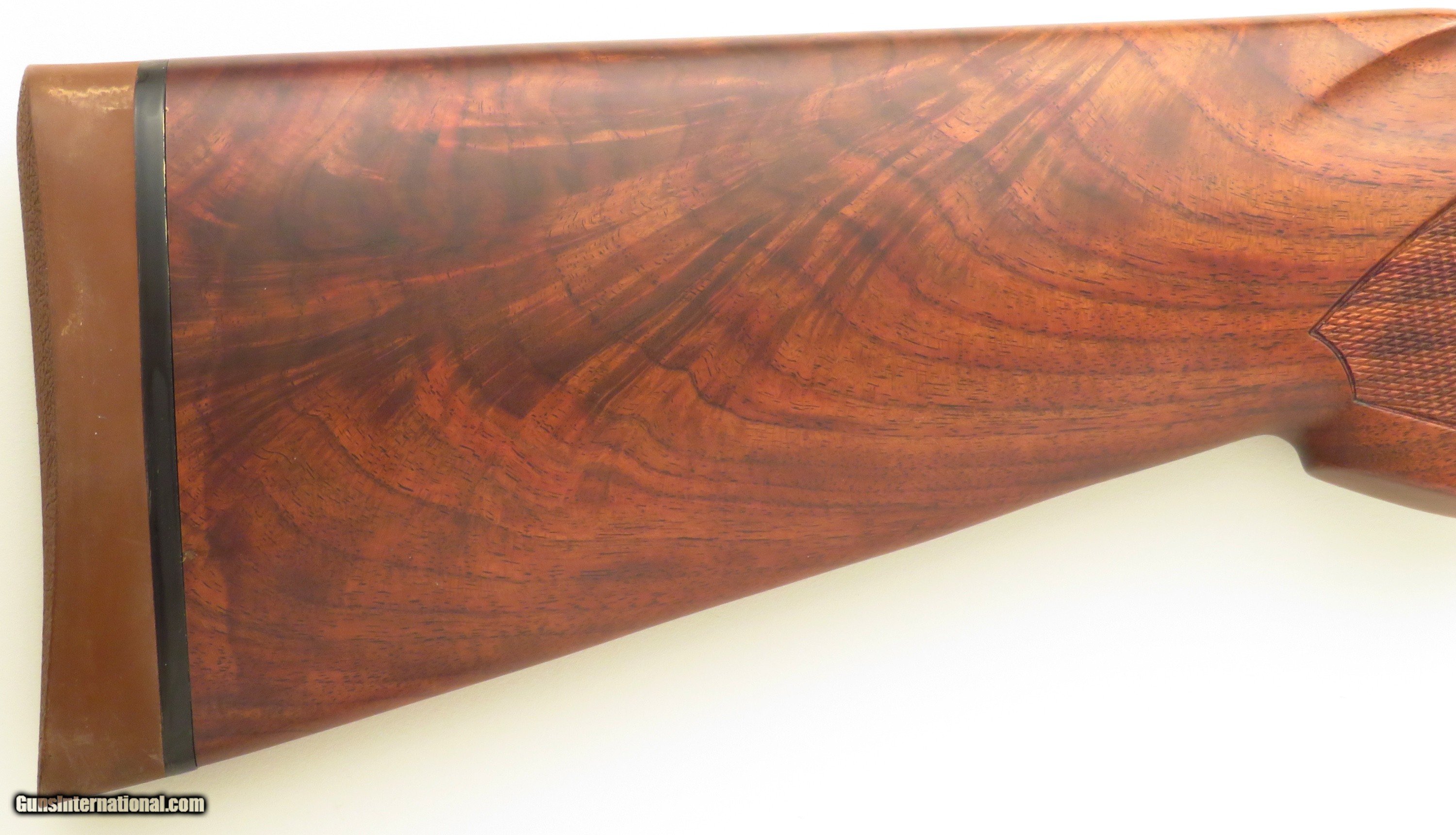 Description: Remington Model 3200 12 gauge. Serial OU-11984 (matching) has 28-inch barrels (fixed M/F, serrated rib, single bead, 2.75-inch chambers, ejectors). Features include Competition Grade walnut (wrap checkering with ribbons, satin finish, logo recoil pad), single mechanical trigger and a tang safety/selector. DIMENSIONS: Weight is 8.8 pounds. Length-of-pull is 13.85 inches, drops are 1.5 and 2.1 inches, and cast off is approximately .25-inch. CONDITION: Little used. Bores are pristine, barrels full on face and ejectors show enthusiasm. Metal and wood finishes are each approximately 98 percent. No box or papers. The price is firm and layaway is available. $1,500 plus shipping. SOLD Shotgun Gauge: 12 Gauge |
