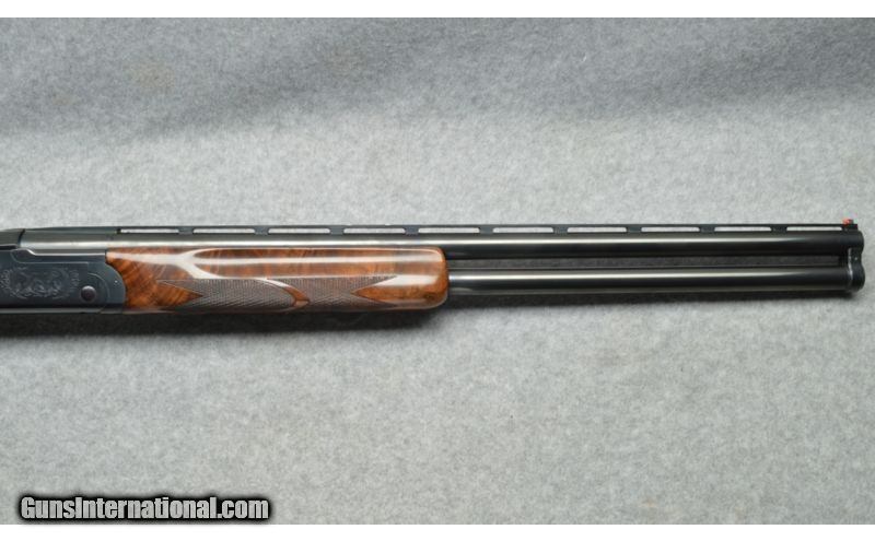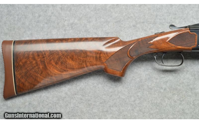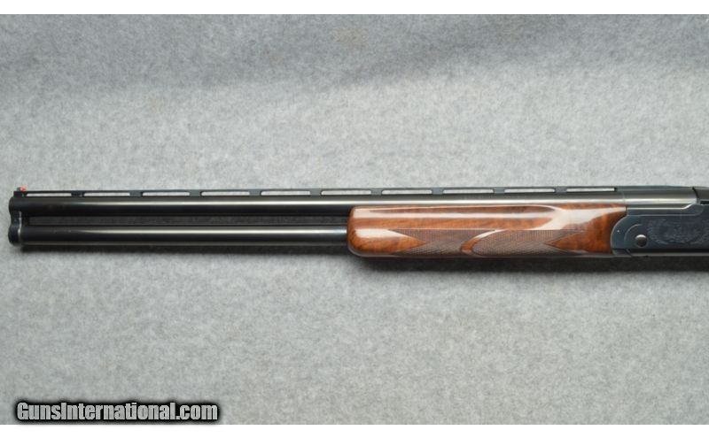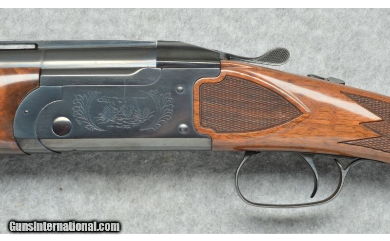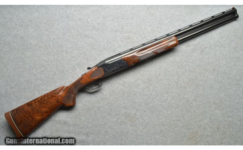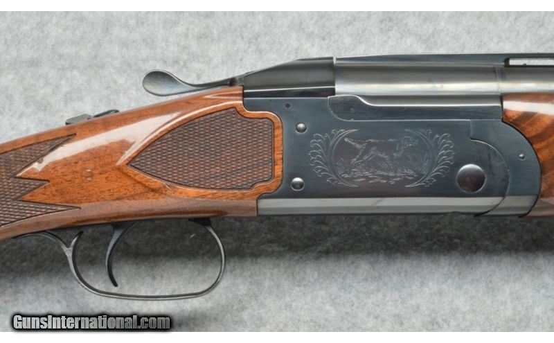 Description: SOLD Manufacturer: Modern manufacture. Caliber Info: 12 Ga. Chambers: Break action two round capacity chambered for 2 3/4 inch shells, with ejectors. Metal Condition: Very good. Wood Condition: Very good. Bore Condition: Good. Barrels: 26 inch Over/Under configuration. Triggers: Single trigger, Tang mounted barrel selector safety. Stock: Checkered walnut pistol grip stock with a gloss finish. Stock Dimensions: 14 inch length of pull. Fore End: Wide, flat bottom, checkered walnut fore-end matches stock. Butt Pad: Brown rubber butt pad. Weight: 8 3/4 pounds. Sights: Red bead at the muzzle, smaller silver bead mounted mid vent rib. Chokes: Fixed chokes, Cylinder over Cylinder. Item Location: Berlin, MA |