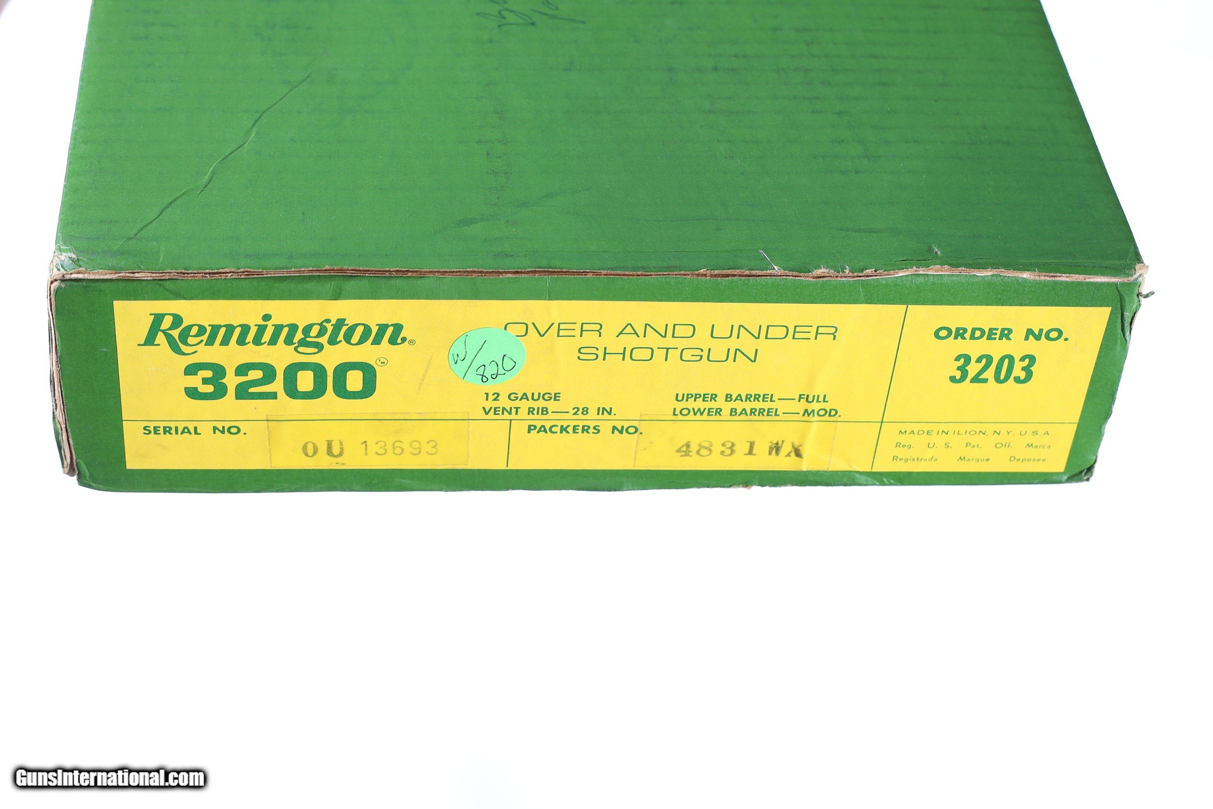 Description: Excellent plus overall condition with factory box numbered to gun. 2 3/4" chambers, modified/full chokes, and 13 3/4" LOP. No factory re-work preformed. Free Shipping, No Credit Card Fees! SOLD Manufacturer: Remington Model: 3200 Serial Number: OU13693 Barrel Length: 27-1/2 Gauge Info: 12ga |