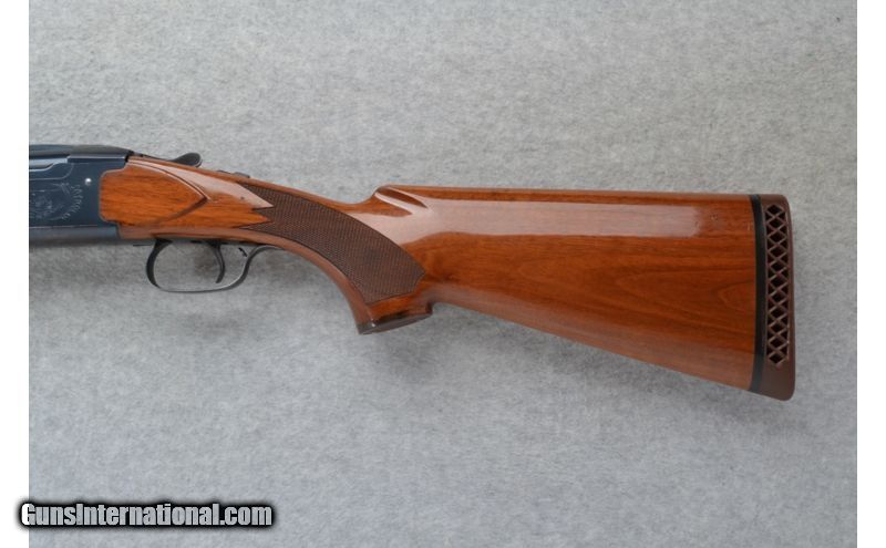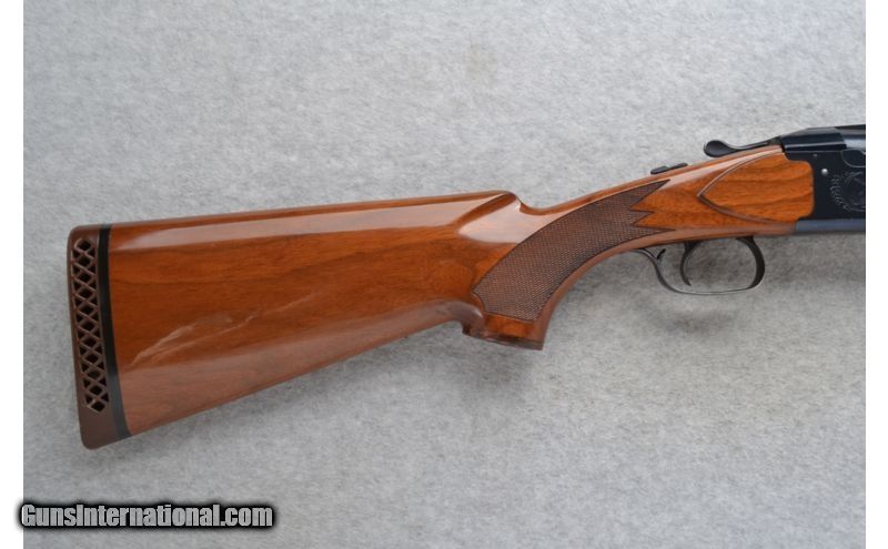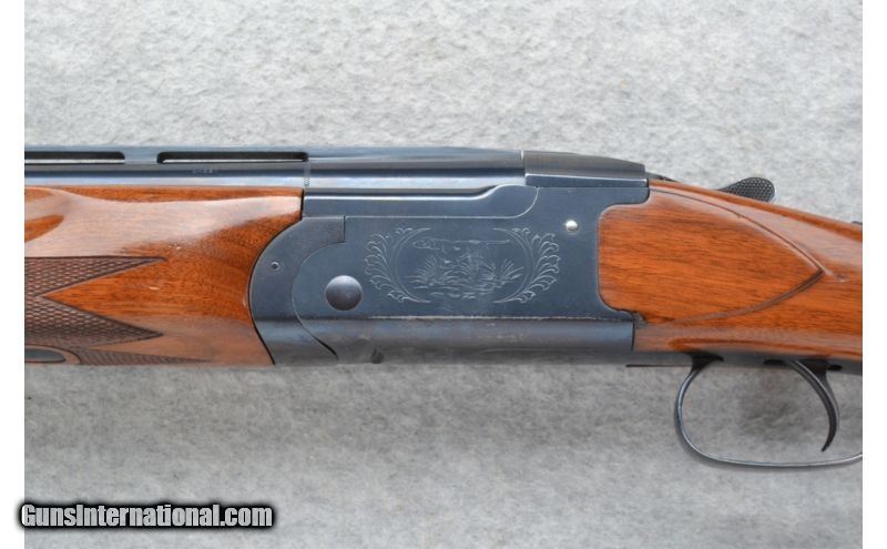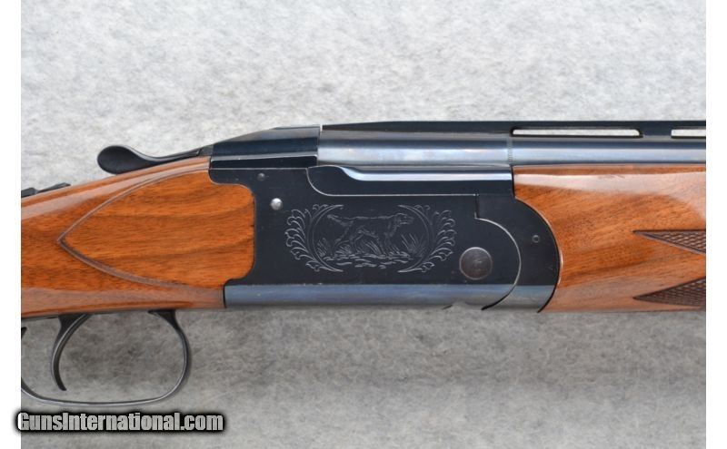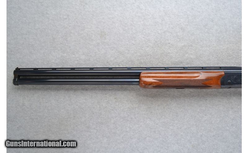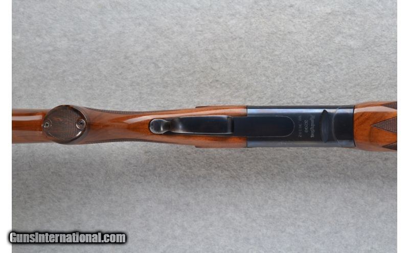 Description: This Remington Model 3200 comes in 12 Ga. Skeet bored seperated barrels with Skeetmaster full length tubes in 20 Ga., 28 Ga. and .410 Ga. which include their seperate ejectors. The gun is in very good condition and its receiver is engraved with hunting dogs on point. SOLD Manufacturer: 1976 Caliber Info: 12 Ga. Chambers: 2 3/4 inch. Metal Condition: Very good. A few minor handling marks on the barrel. Receiver has light blue wear on bottom right and trigger guard. Right side of the receiver has a little very minor freckling. Wood Condition: Very good with light handling marks. A small chip of wood missing bottom left at the receiver. Bore Condition: Clean, bright and shiny. Barrels: 27.5 inch seperated barrels with a knurled top ventilated rib on top barrel. Triggers: Single selective trigger. Stock: Diamond checkered grip walnut pistol grip with a diamond checkered cap. Boxlock and auto ejectors. Stock Dimensions: LOP 14 inches. DAC 1 1/4 inch. DAH 1 3/4 inch. Fore End: Diamond checkered grip walnut with finger grooves. Butt Pad: Remington brown rubber recoil pad. Weight: 8 lbs. 6 oz. Sights: White bead front. Metal middle bead. Chokes: Fixed Skeet bored both barrels. Extras: Fitted hard carry case for gun and Skeetmaster full length tubes with separate ejectors. Item Location: Gainesville, VA |
