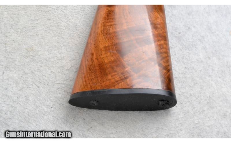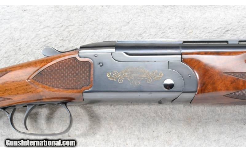 Description: This Remington Model 3200 Competition is an over and under shotgun in 12 Ga. It comes with 3 sets of Briley barrel tubes in 20 Ga., 28 Ga. and .410 Bore. All are 2 3/4 inch chamber except the .410 bore which is 2 1/2 inch. The 27.5 inch barrels are separated and has a top barrel ventilated rib. It has ejectors. It has a white bead front sight and a metal middle bead sight. The trigger and tang have been modified by Remington. The butt stock is a checkered grip walnut pistol grip. The forearm is a checkered grip walnut with finger grooves. Serial Number OU.46732. 12 Gauge SOLD Chambers: 2 3/4 inch. 2 1/2 inch. Metal Condition: Very Good. Wood Condition: Very Good. Some light handling/use marks. Bore Condition: All barrels and sleeve inserts are clean and shiny. Barrels: 27.5 inch separated barrels with ejectors and a top barrel ventilated rib. Triggers: SST Stock Dimensions: 13 1/8 inches without a recoil pad. Fore End: Checkered grip walnut with finger grooves. Butt Pad: Recoil pad needs replacement. Weight: 8 lb. 6 oz. Sights: White bead front. Metal middle bead. Chokes: 12 Ga. comes with 3 choke tubes. Item Location: Richfield, WI |